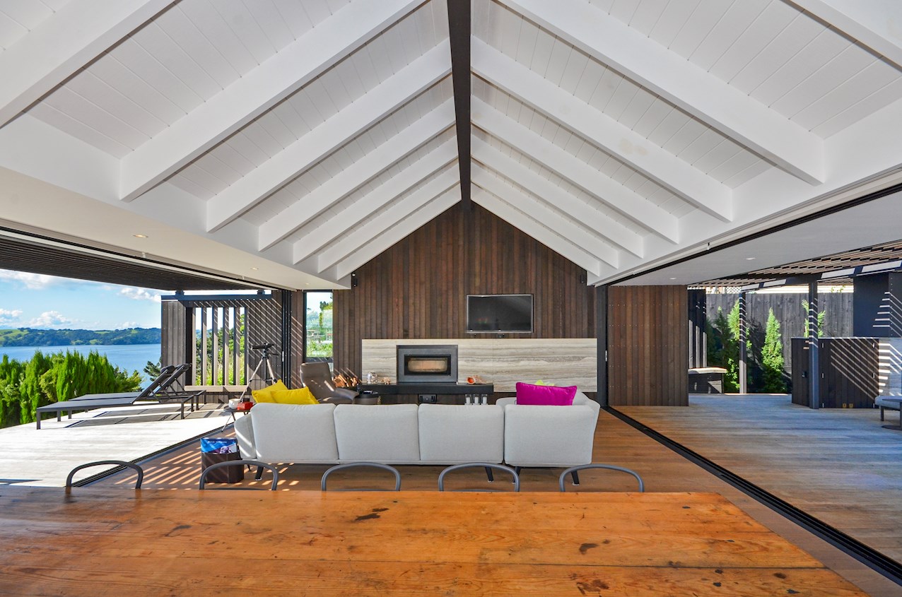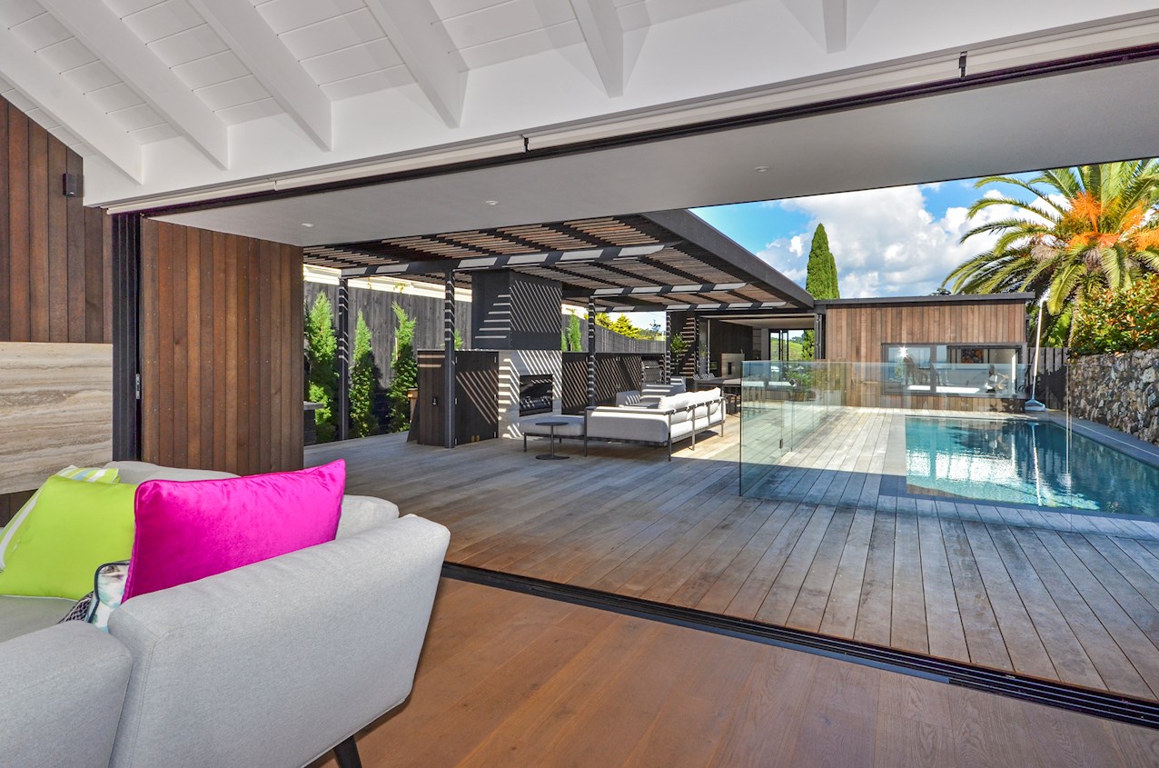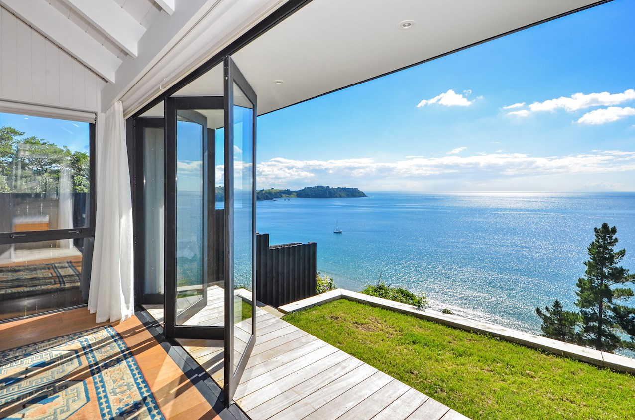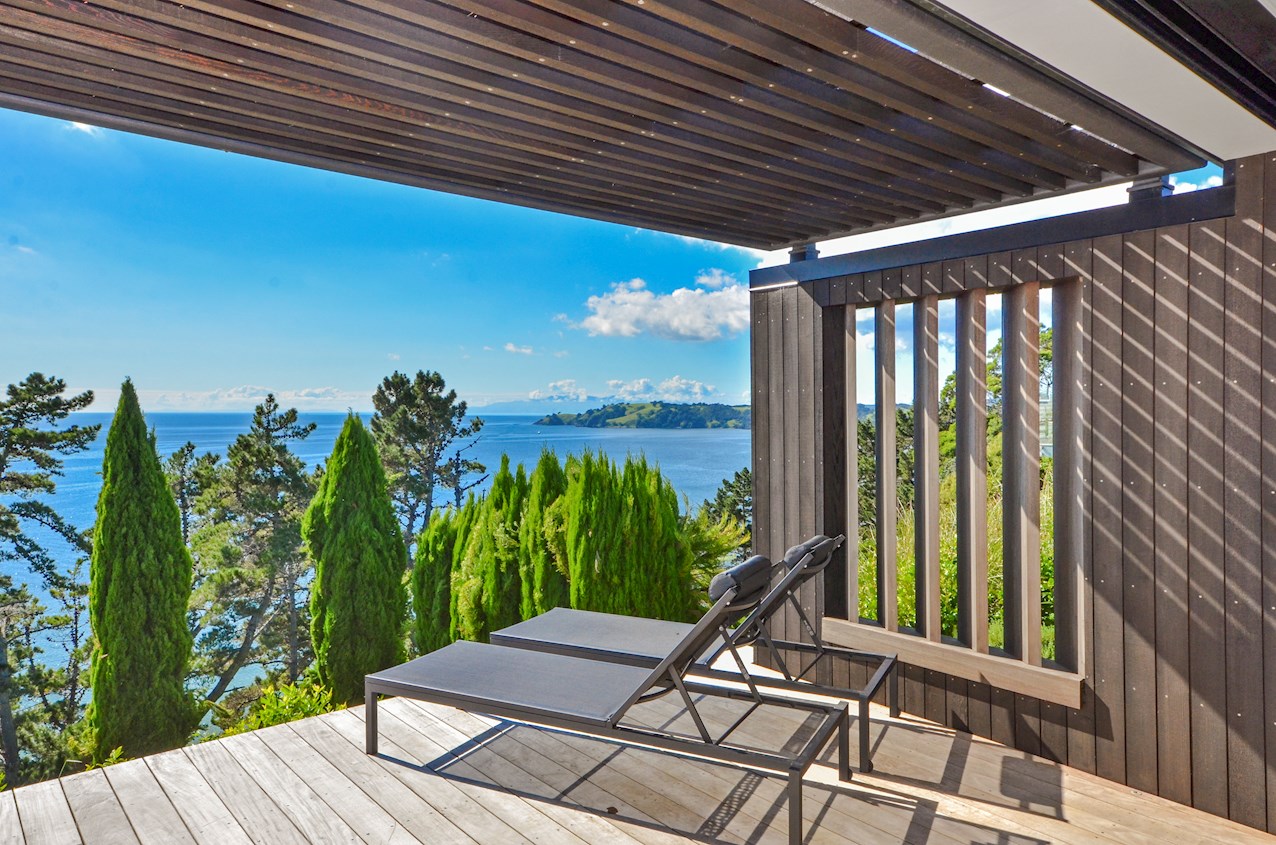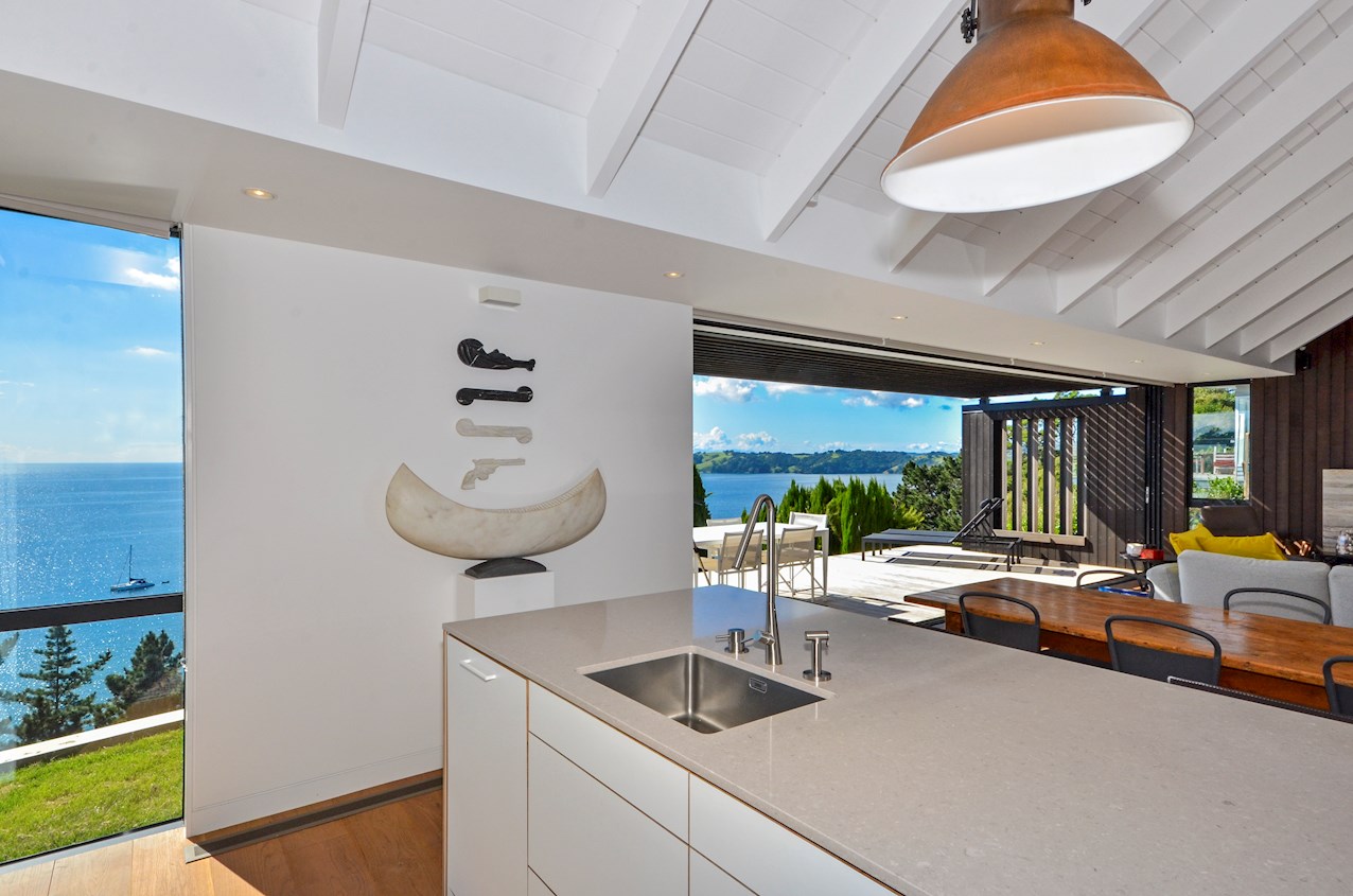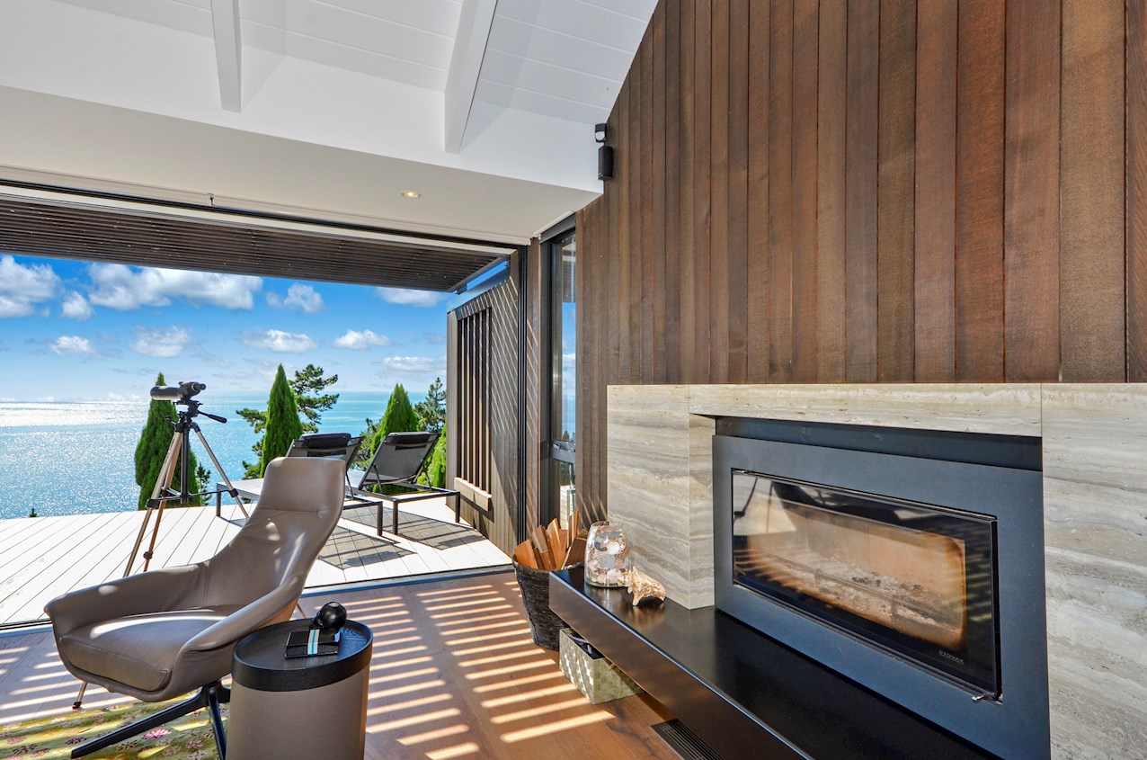 Paradise is best enjoyed with company, but a little privacy shouldn’t be underestimated. This elegant three-bedroom, three-bathroom residence on Waiheke Island serves up two single-storey dwelling spaces linked – but also separated – by a beautifully designed courtyard and pool area with outdoor fire.
