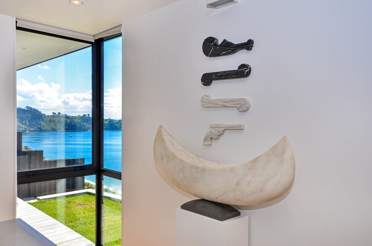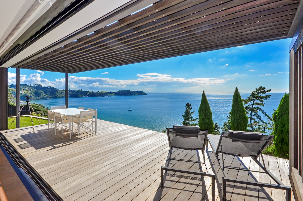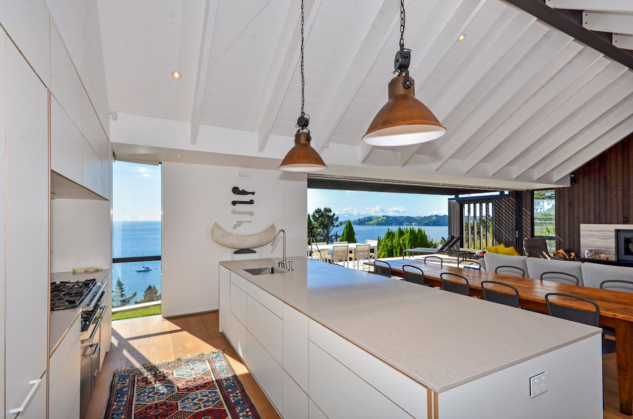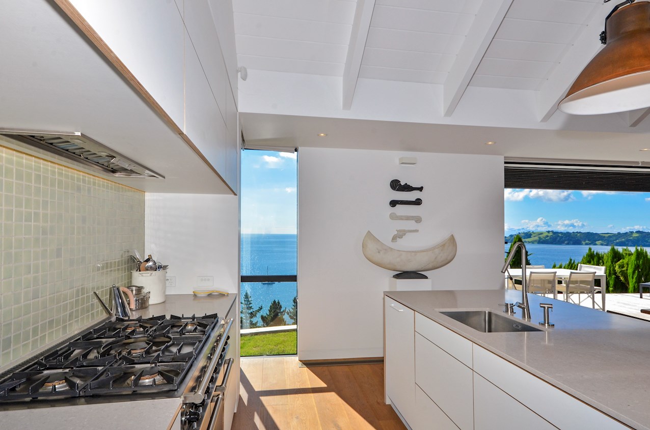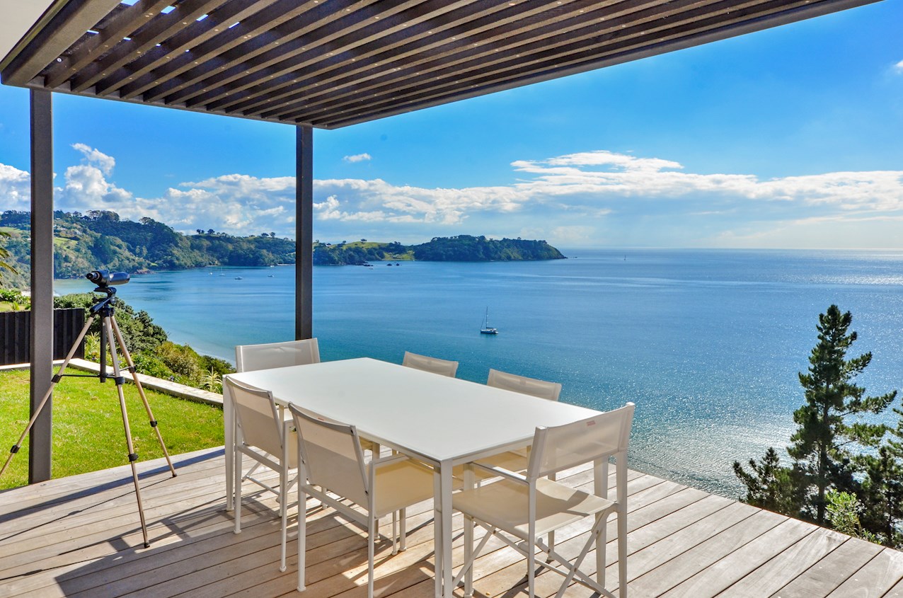 Paradise is best enjoyed with company, but a little privacy shouldn’t be underestimated. This elegant three-bedroom, three-bathroom residence on Waiheke Island serves up two single-storey dwelling spaces linked – but also separated – by a beautifully designed courtyard and pool area with outdoor fire.