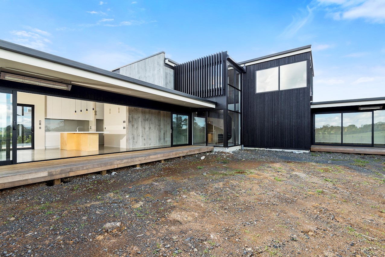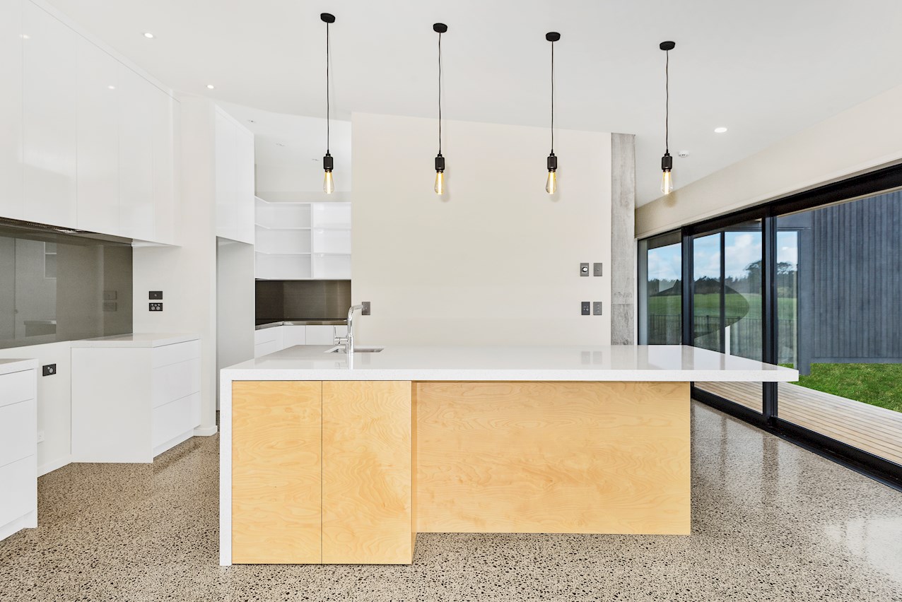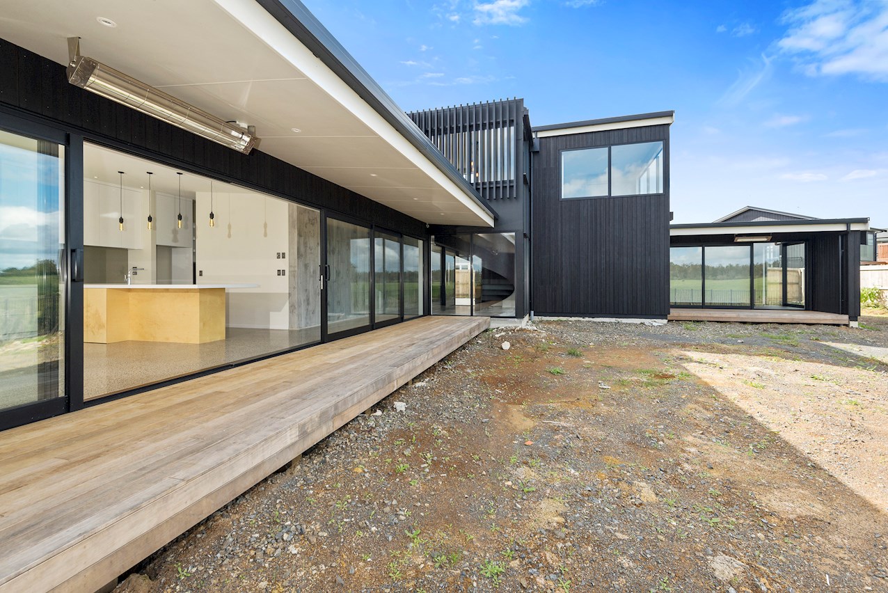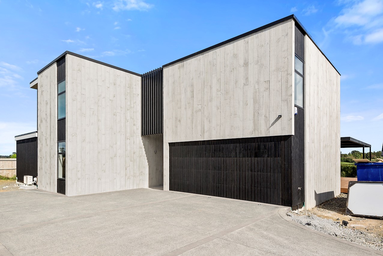 Comprised of a set of strong inter-connecting volumes, this contemporary Karaka Lakes construction exudes quality, class and effortless cool. Natural concrete provides a grounding force inside and out. Timber elements add warmth and natural charm to otherwise minimalist interiors.
