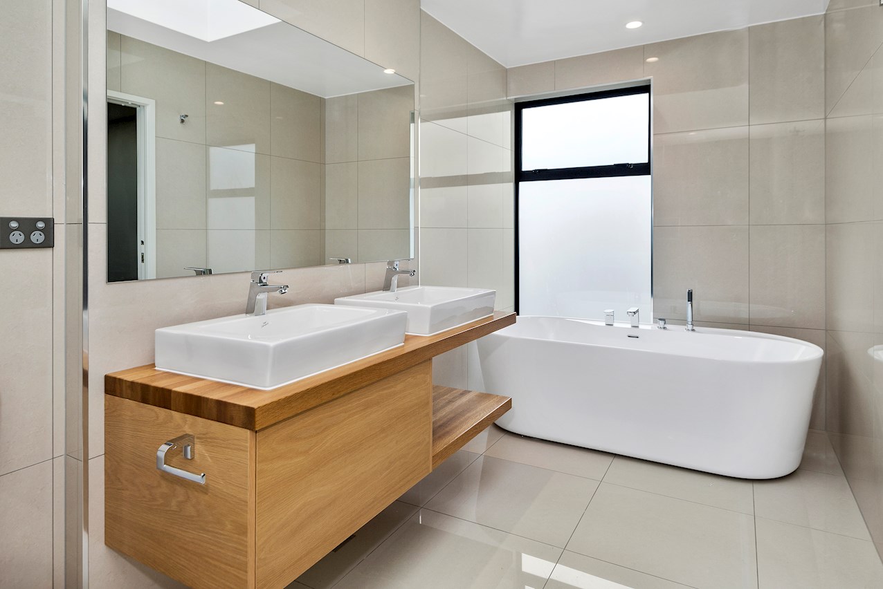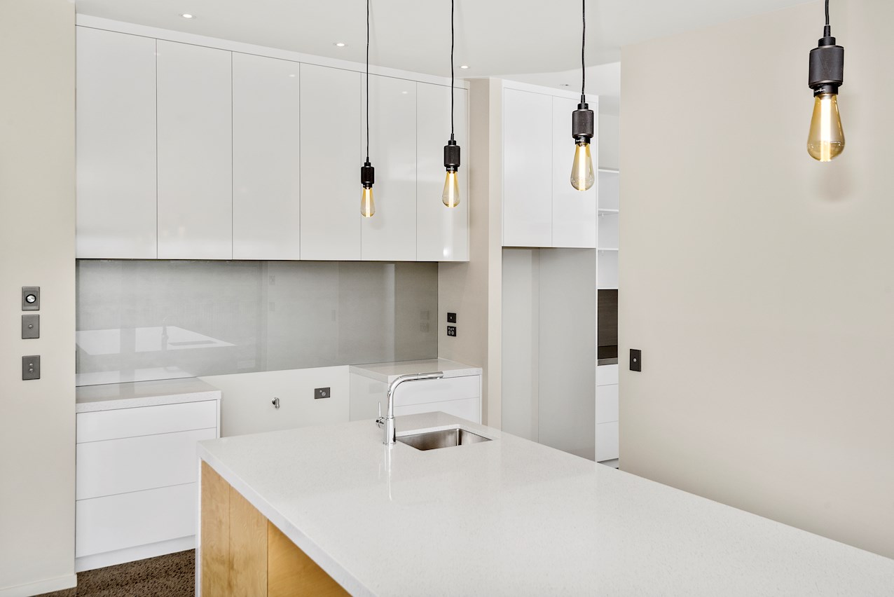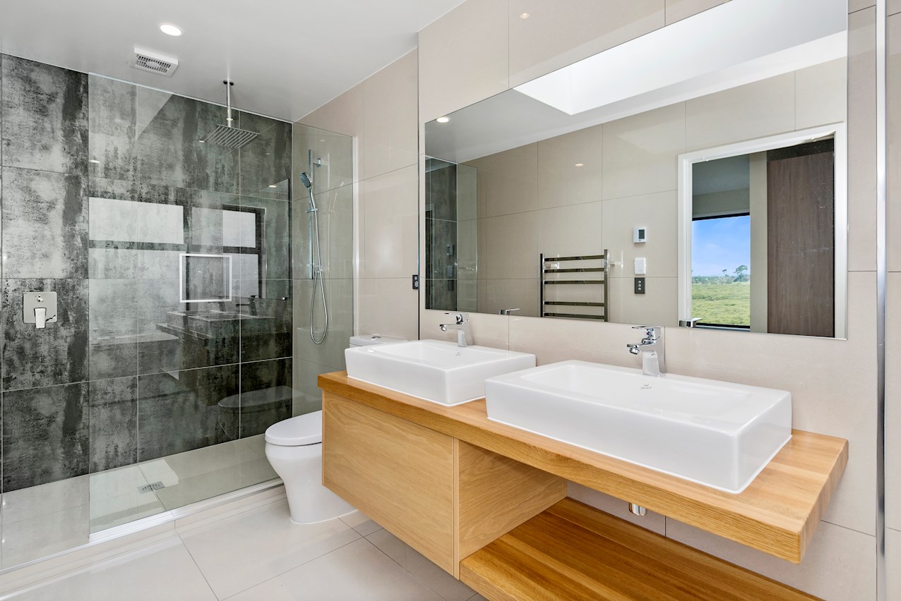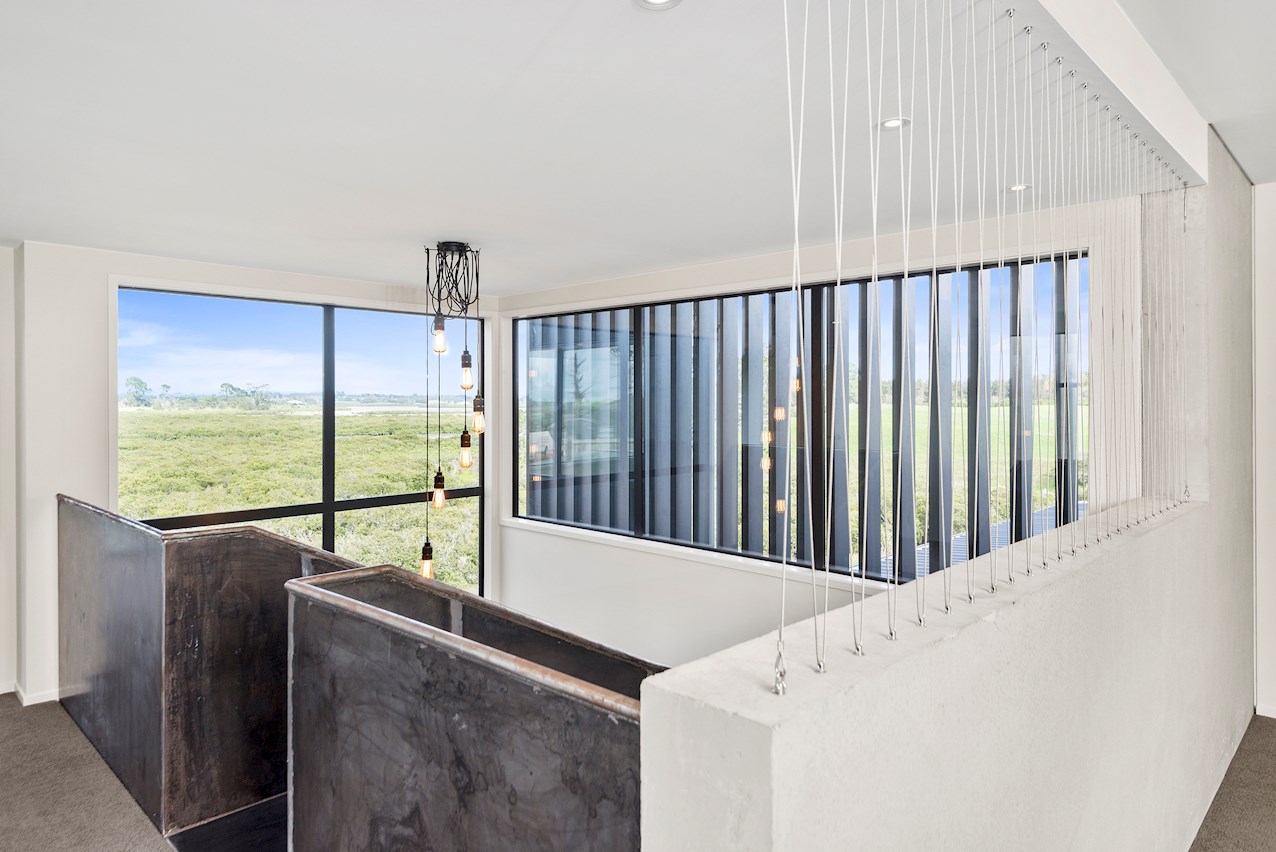 Polished concrete offers thermal mass for passive solar gain on the ground floor. Upstairs enjoys the added comfort of carpet in bedrooms, and sleek, stylish tiles in the bathrooms.