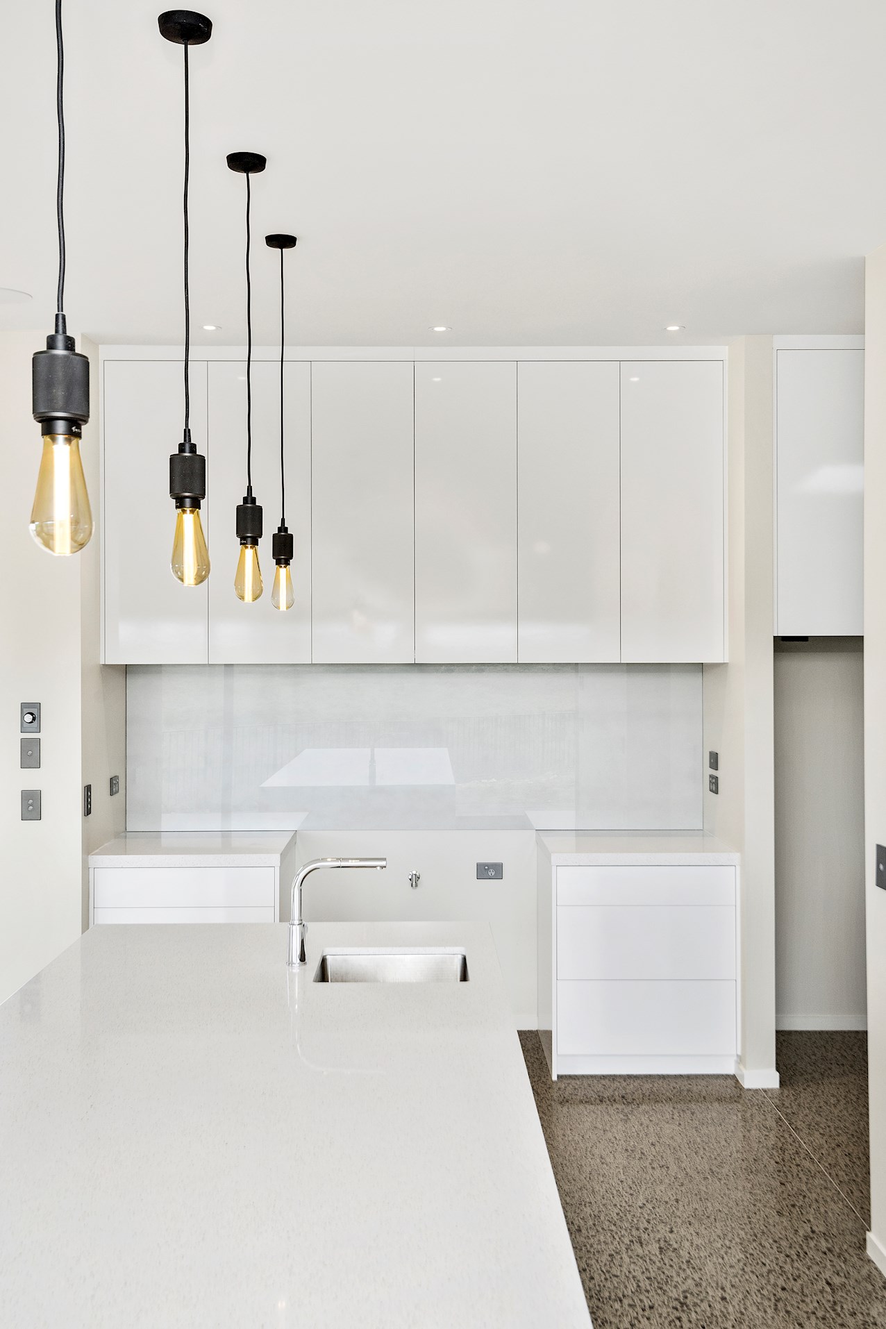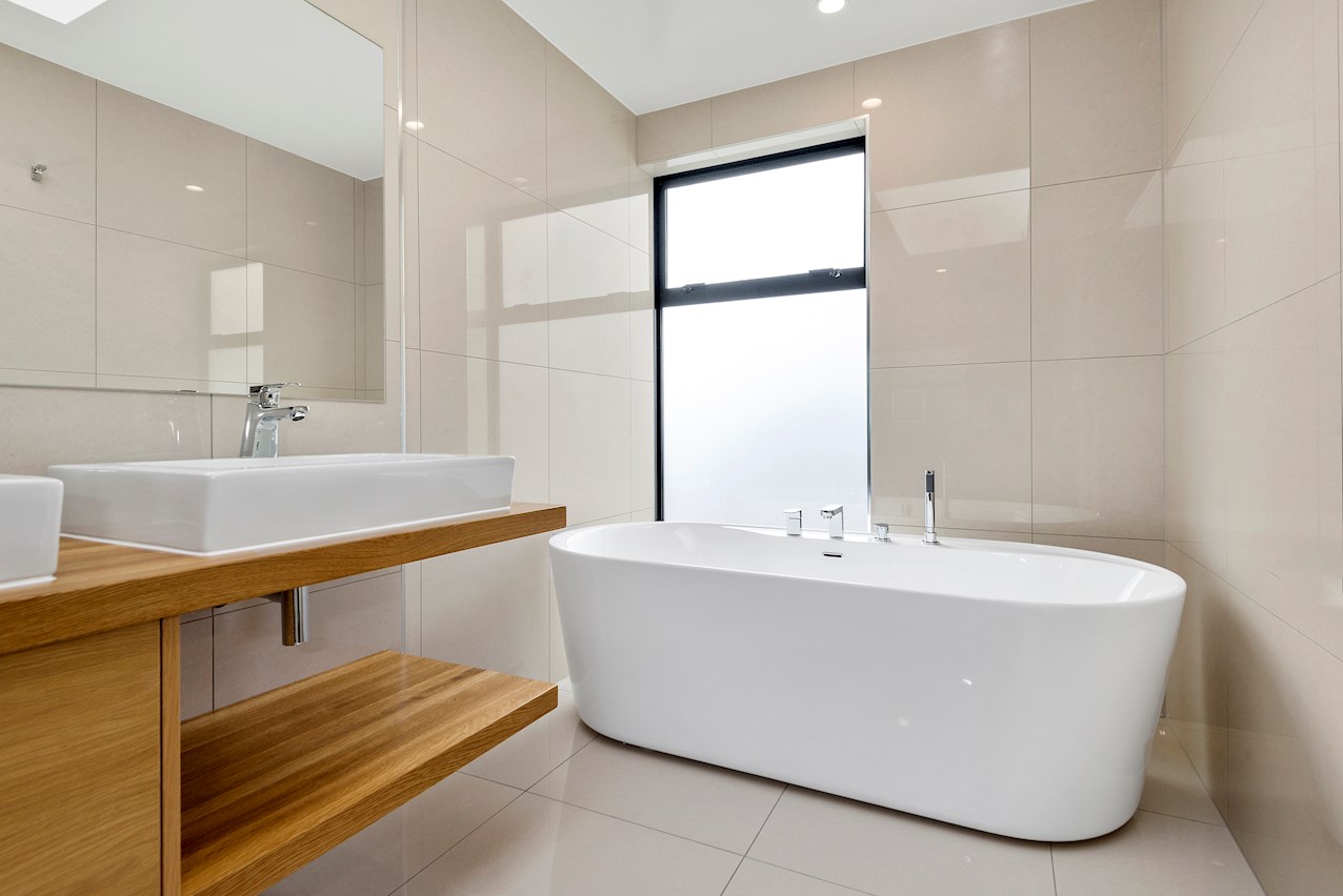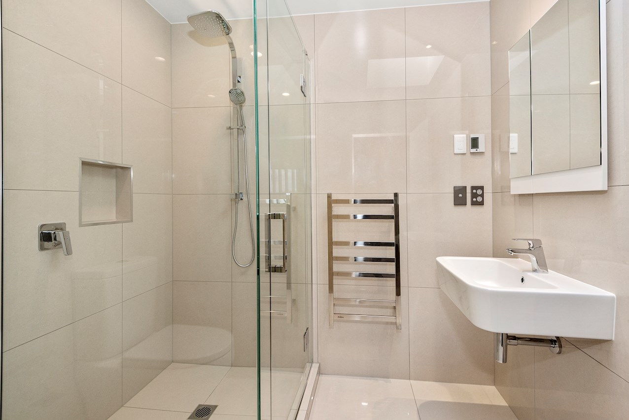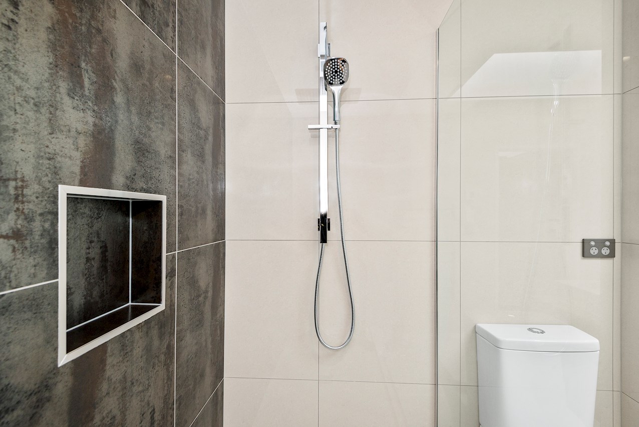 Polished concrete offers thermal mass for passive solar gain on the ground floor. Upstairs enjoys the added comfort of carpet in bedrooms, and sleek, stylish tiles in the bathrooms.