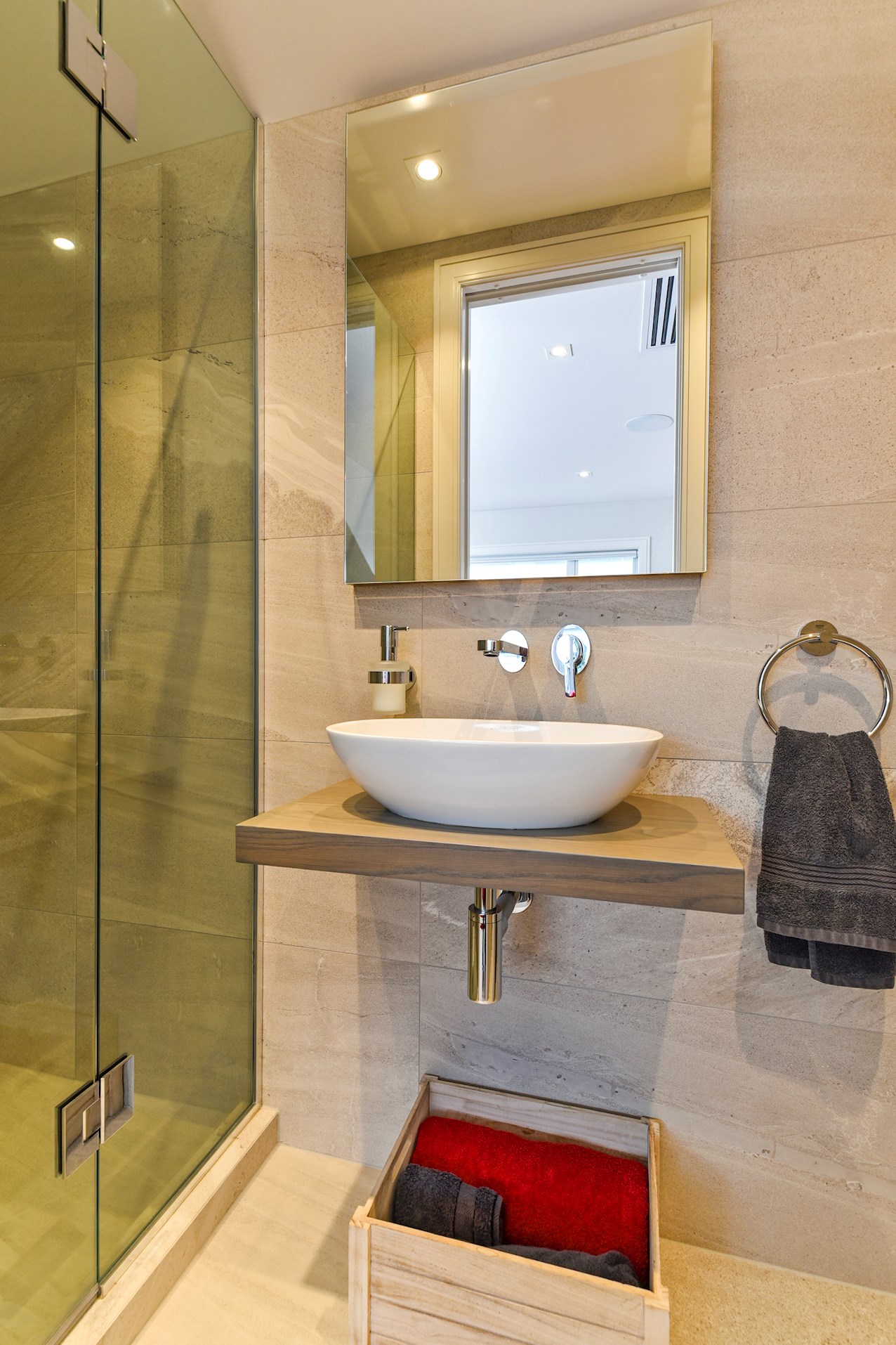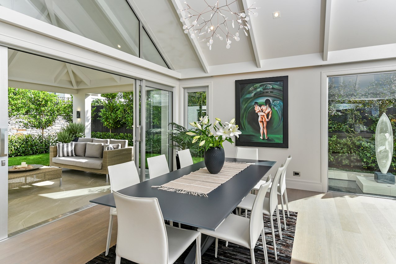 The 320sqm interior is exceptionally warm and inviting. Three bedrooms, four bathrooms, separate living areas, a basement gym, plant room and artist’s loft serve the owners’ lifestyle perfectly.