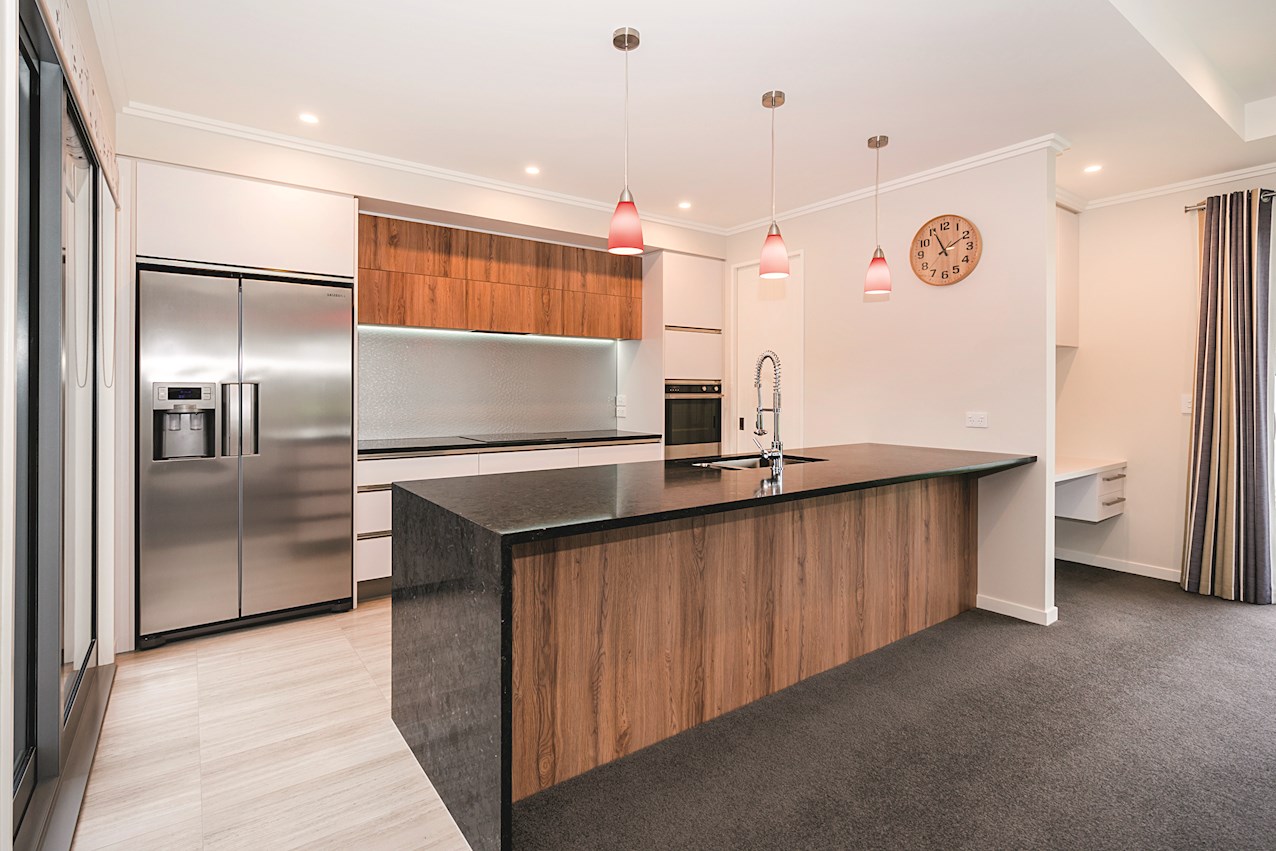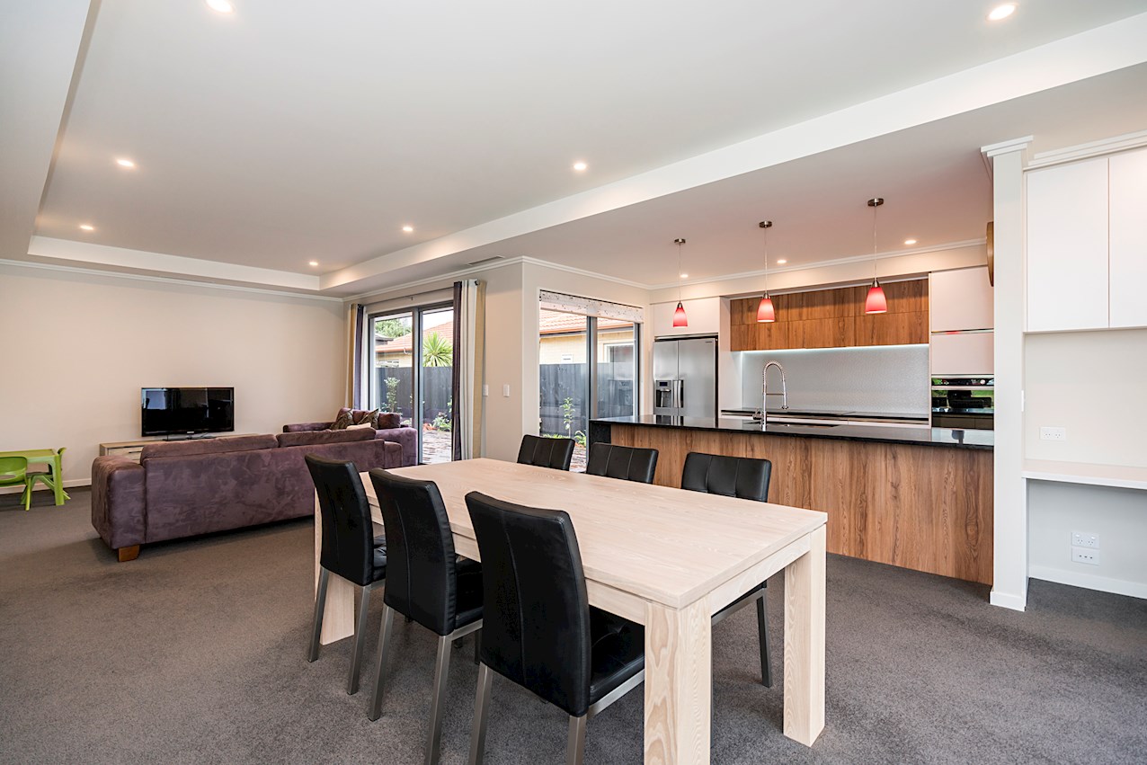 Behold this four-bedroom beauty. The sweeping street frontage with double garage exudes smooth style, smartly accessorised with rock, weatherboard and tasteful planting. The gable feature entrance opens into the heart of this practical Christchurch family home where everyday life is enjoyed and guests are entertained.