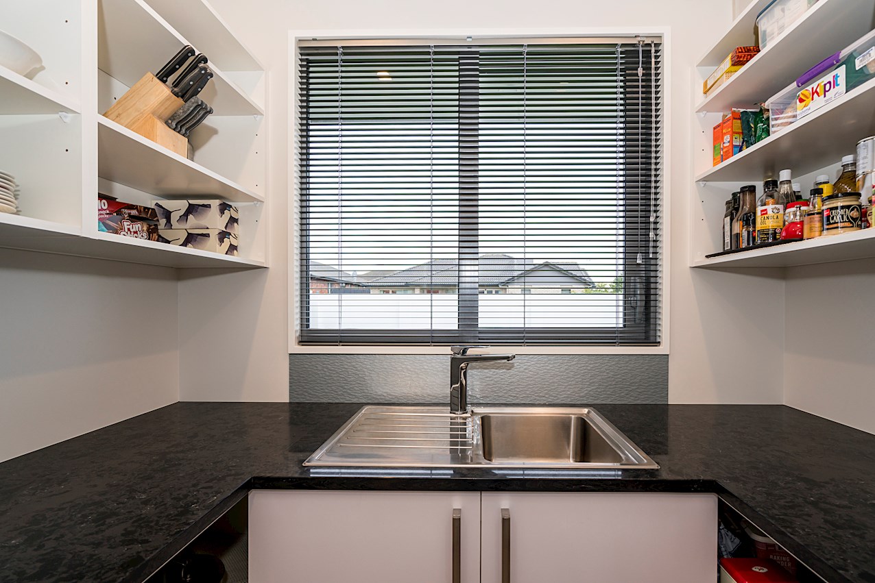 The open-plan living/dining/kitchen zone enjoys a wonderful feeling of space, enhanced by connection to the outdoors. The entertainer’s domain and sitting areas both open to a sweeping deck, which also serves the master bedroom. The dining space opens to the outdoors via a separate slider, allowing airy mealtimes to be enjoyed inside. With great storage and separate sink, the hidden scullery is the cook’s secret weapon.