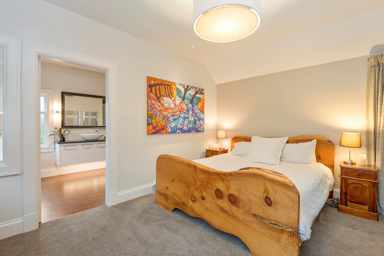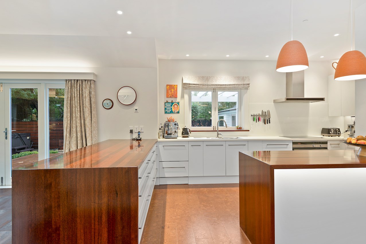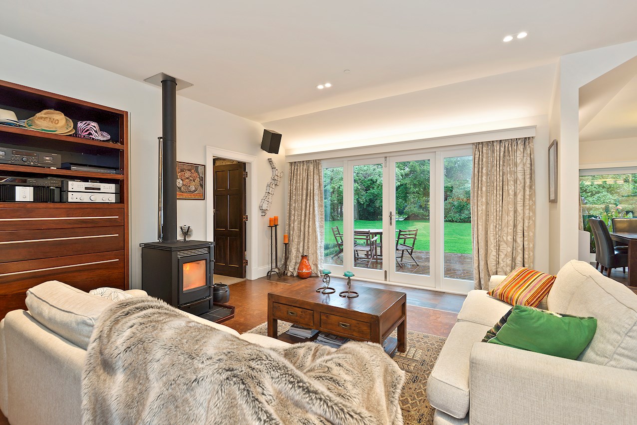 With extensive insulation, radiators in every room and a wetback log burner connected to the hot-water cylinder in the family living area, this five-bedroom home stays super warm through the Canterbury winter. Sustainable cork flooring graces the bathrooms and kitchen/dining area.