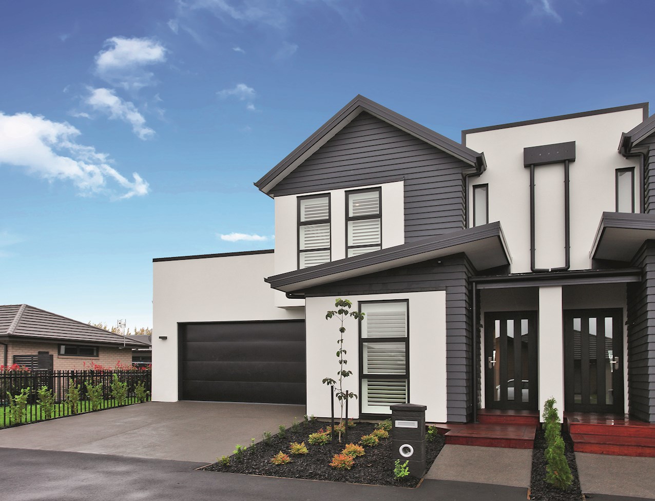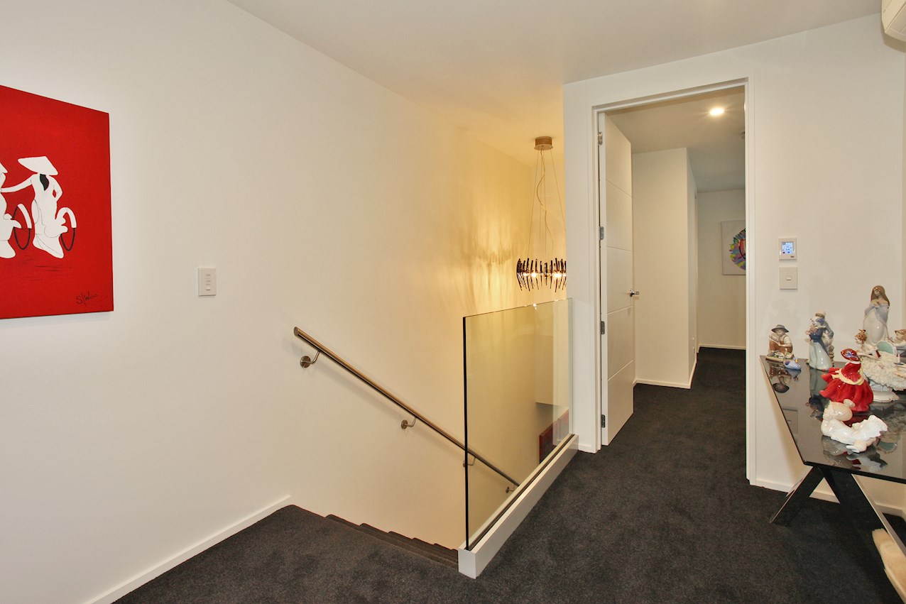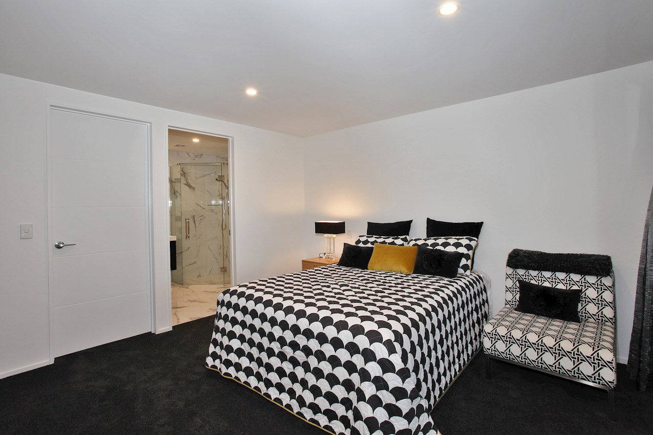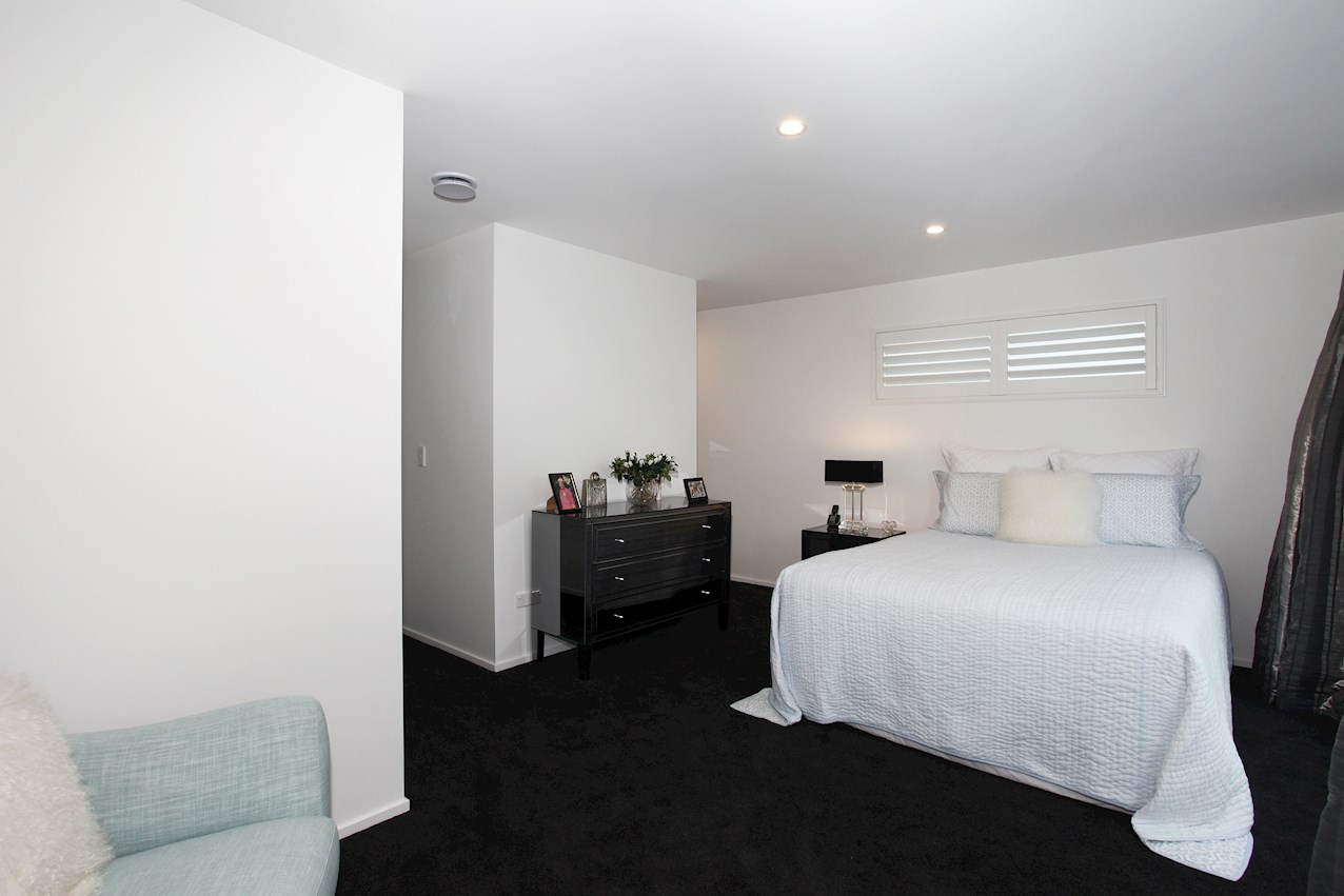 Lightweight concrete plastered panels and dark painted weatherboards make for a high-impact, low-maintenance exterior. The crisp and sharply contrasting white and black theme carries inside with carpets, tiles and joinery. A very spacious marble bathroom services the two upstairs bedrooms. A bedroom with ensuite awaits downstairs.