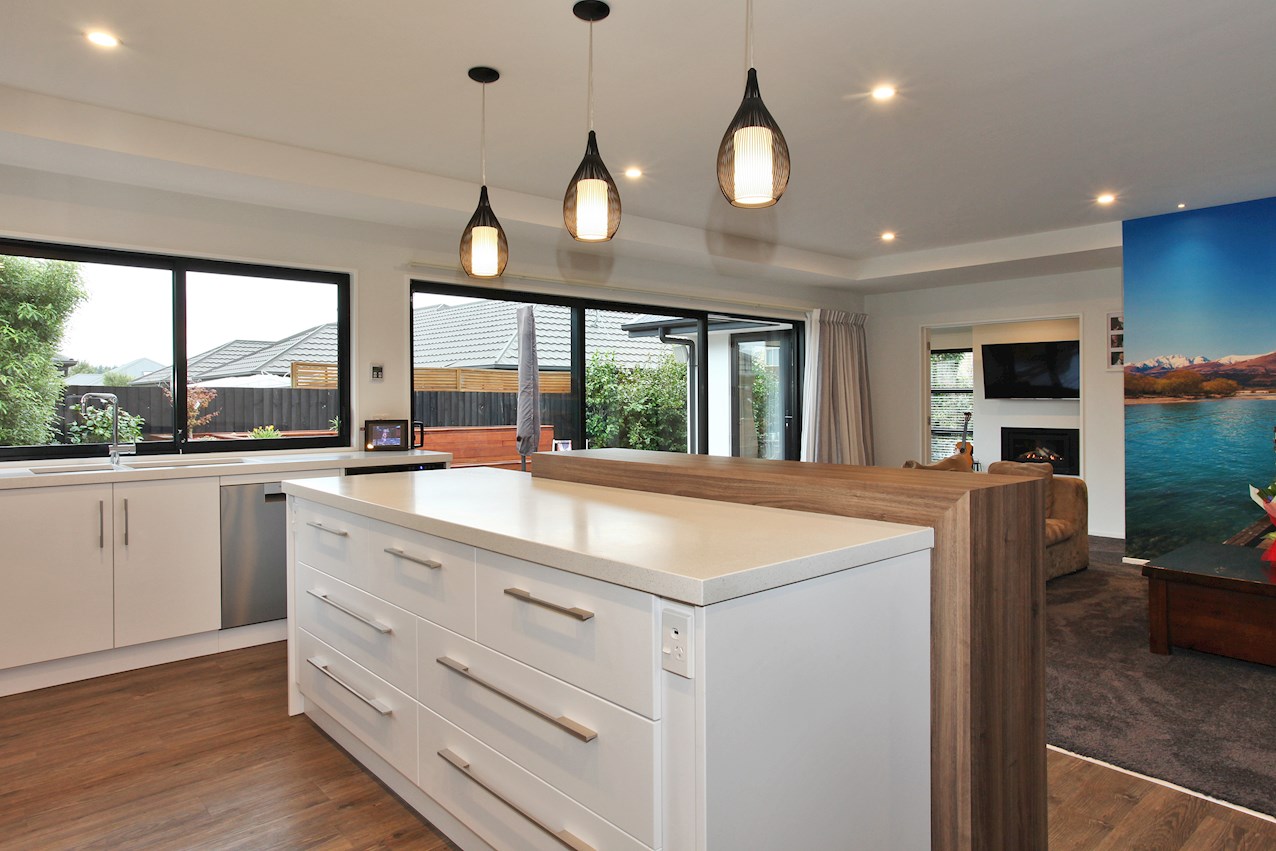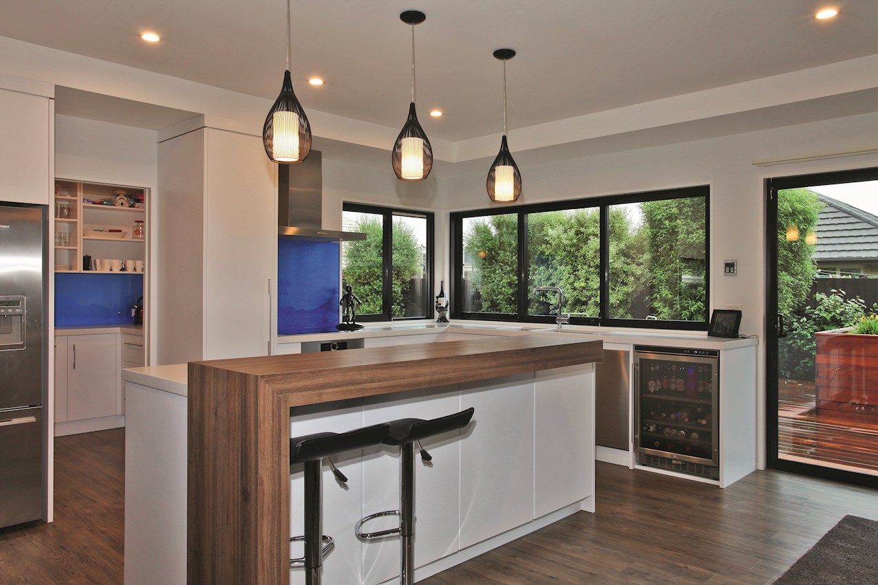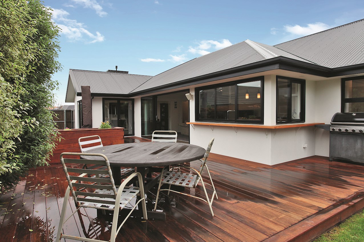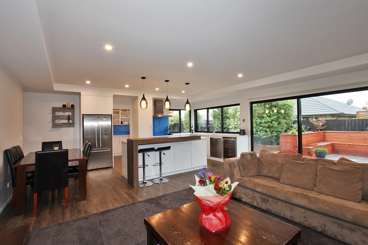 Step inside this 228sqm Christchurch abode and experience comfortable, contemporary family living. The decor is simple yet sophisticated. Graphic splashbacks add a relaxed beachy vibe in the kitchen and butler’s pantry. A large feature wall with mountain scene creates an eye-catching focal point in the open-plan living zone. A separate lounge with fireplace awaits through double doors.