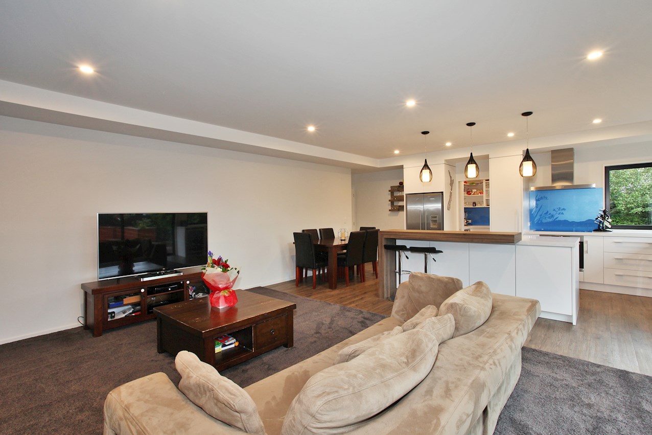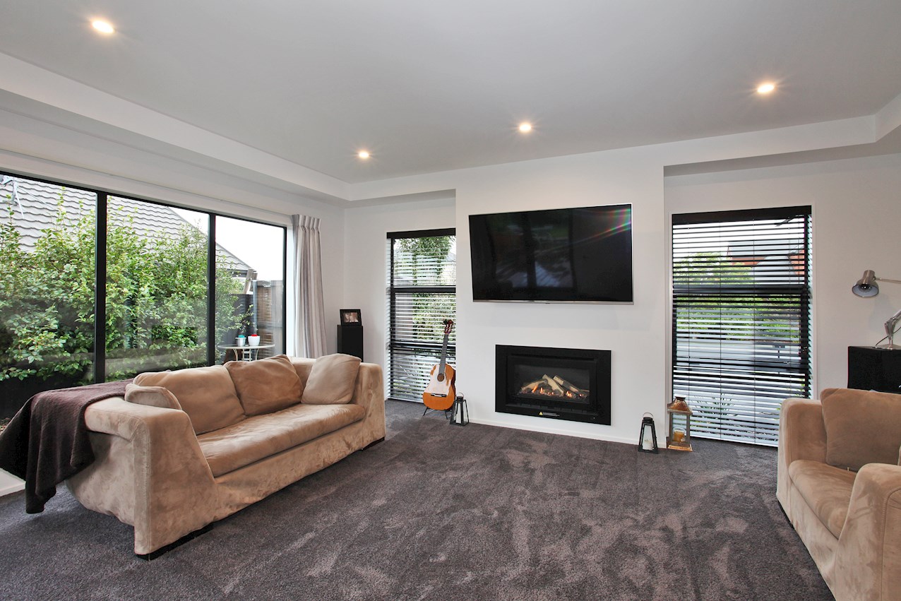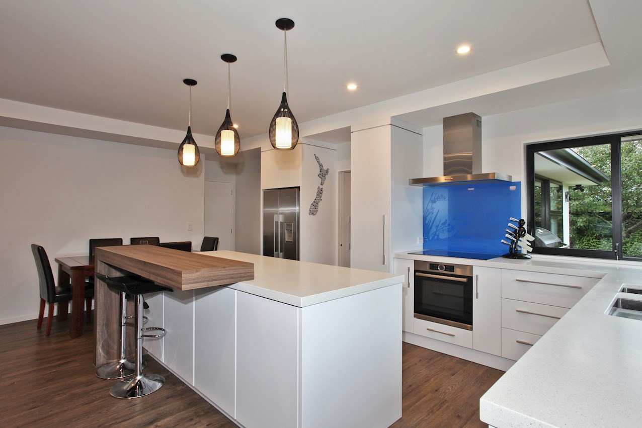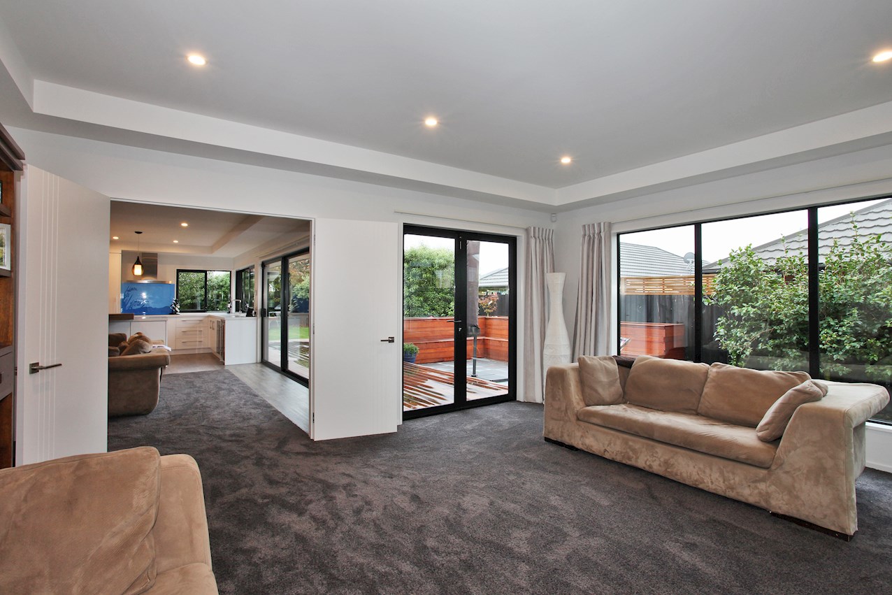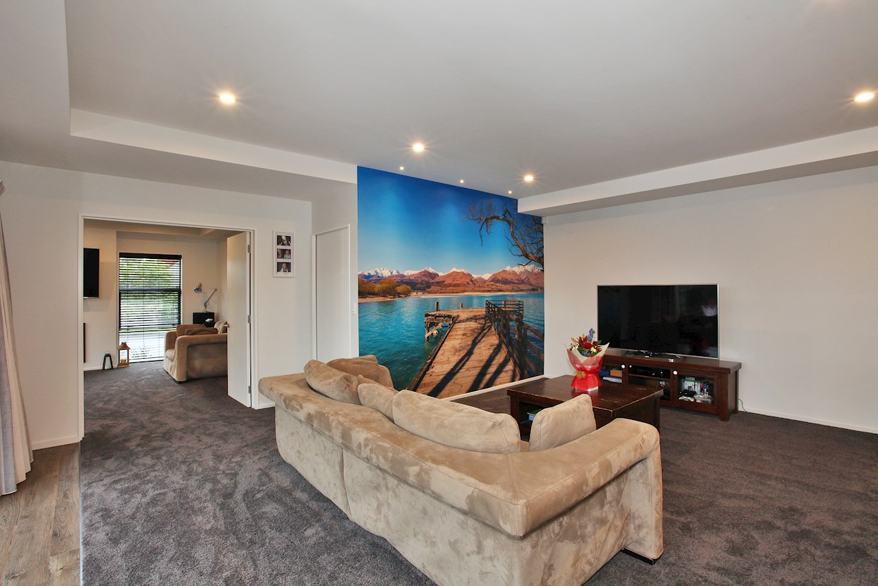 Step inside this 228sqm Christchurch abode and experience comfortable, contemporary family living. The decor is simple yet sophisticated. Graphic splashbacks add a relaxed beachy vibe in the kitchen and butler’s pantry. A large feature wall with mountain scene creates an eye-catching focal point in the open-plan living zone. A separate lounge with fireplace awaits through double doors.