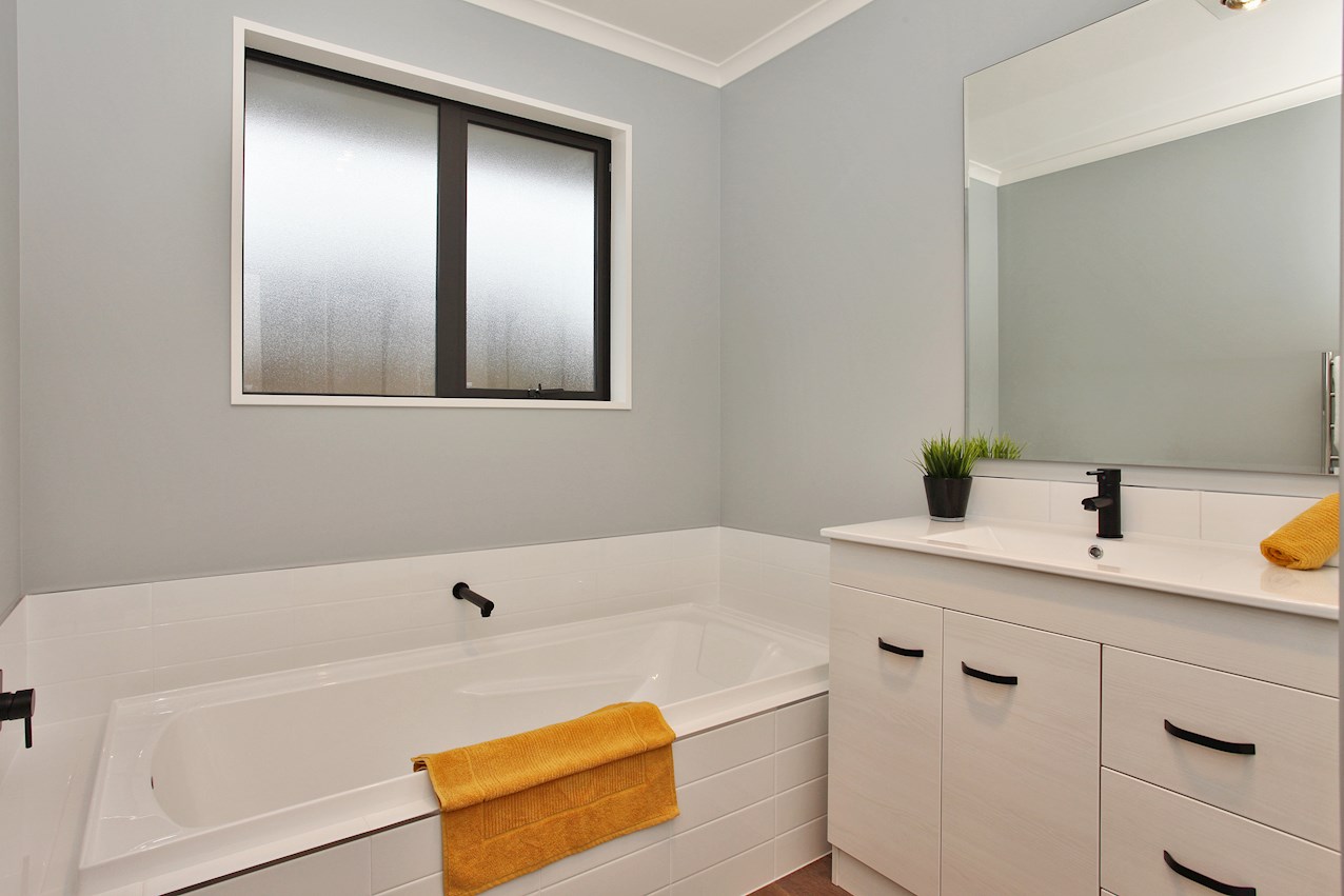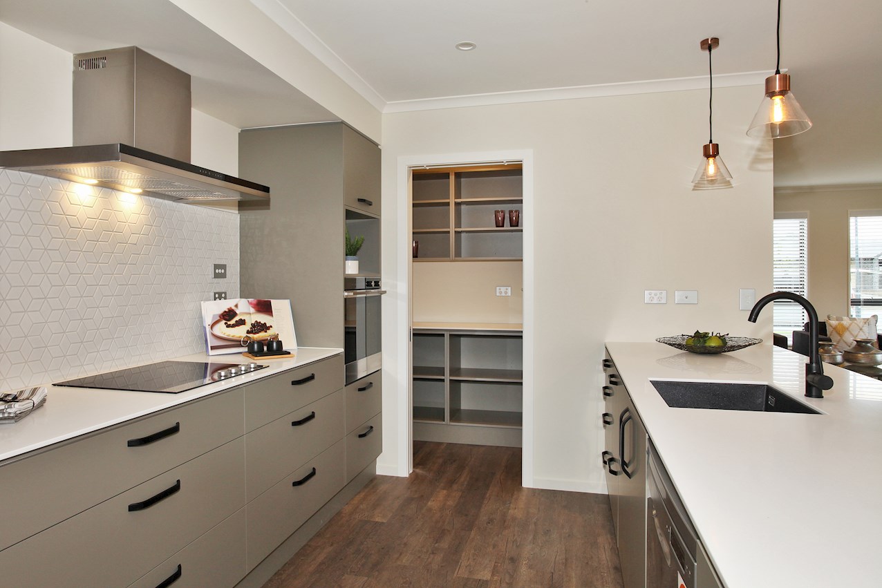 The large kitchen is the centre of the home. It’s the perfect space for the resident cook to work some magic. Finishing touches include a tasteful tiled splashback and a stylish black sink and faucet duo in the central bench. The walk-in pantry boasts plenty of storage, plus extra bench space.
