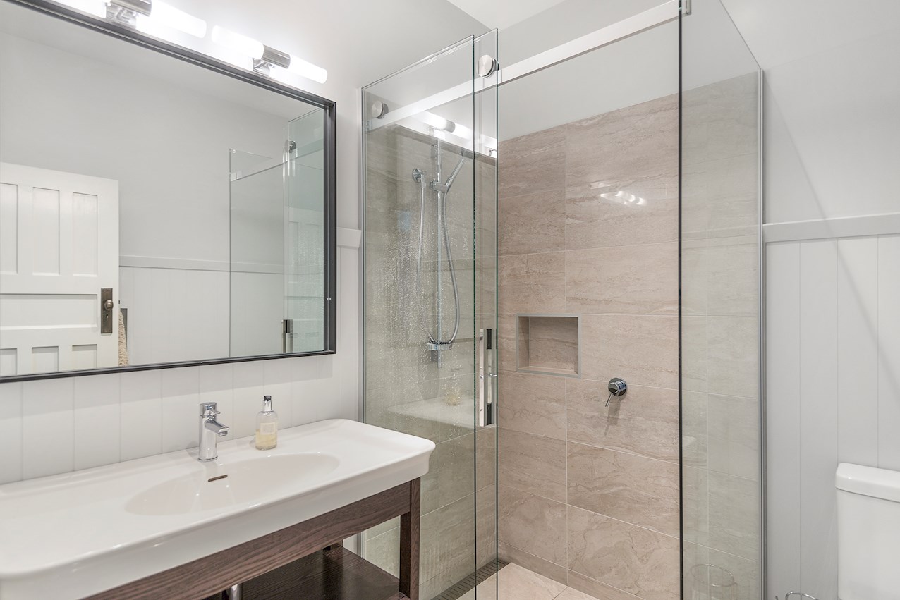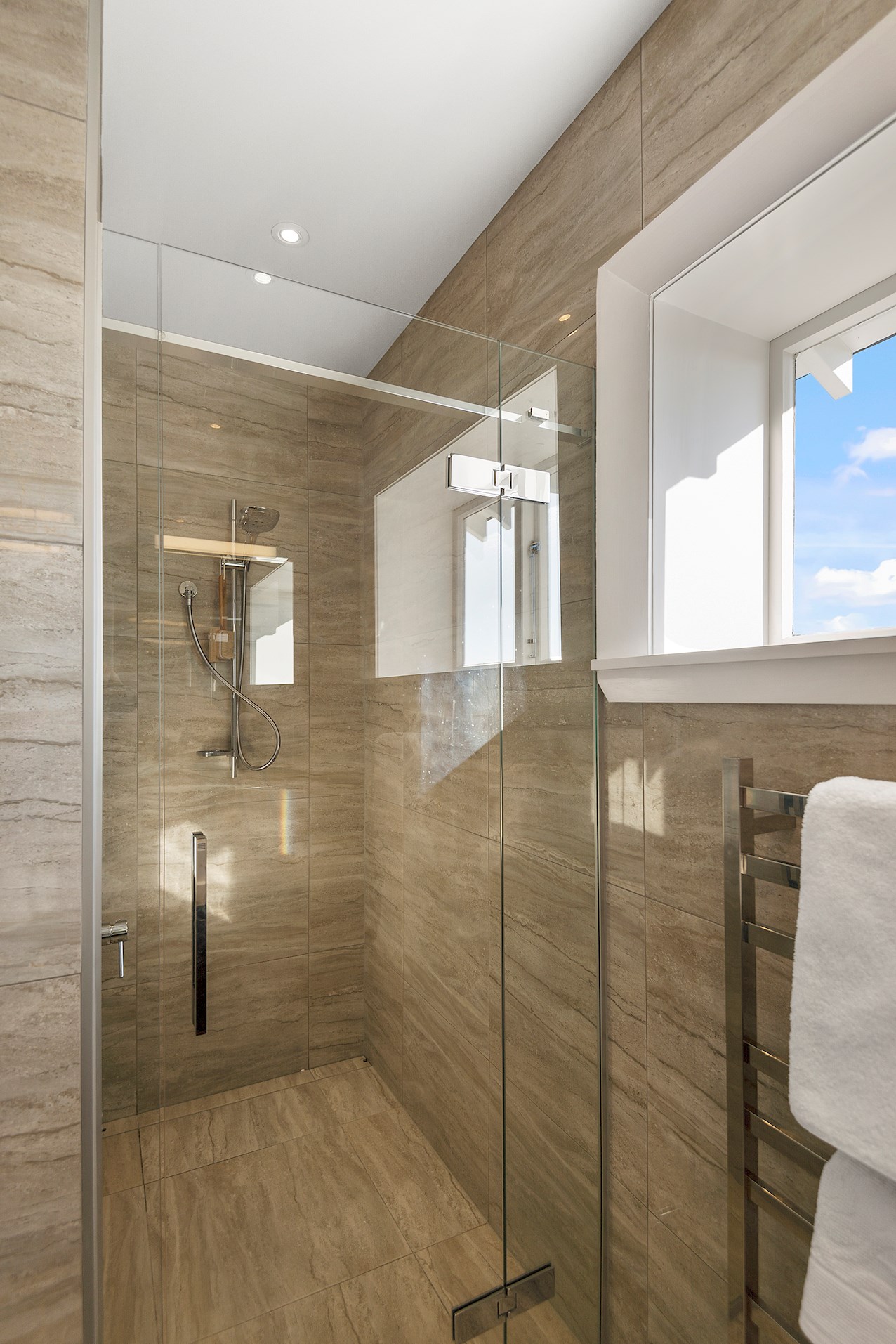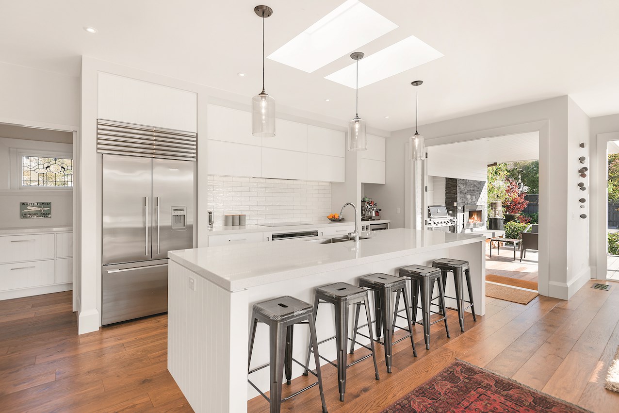 The classic white kitchen is all clean lines, sleek style and mod cons and has a scullery. Skylights, subway tiles, stone benchtops, an induction hob and wine fridge make this domain a pleasure to cook and entertain in. The space is beautifully open to the generous, sun-soaked living area. Deluxe furnishings are in keeping with the home’s opulent feel. Original details such as decorative windows have been beautifully preserved.