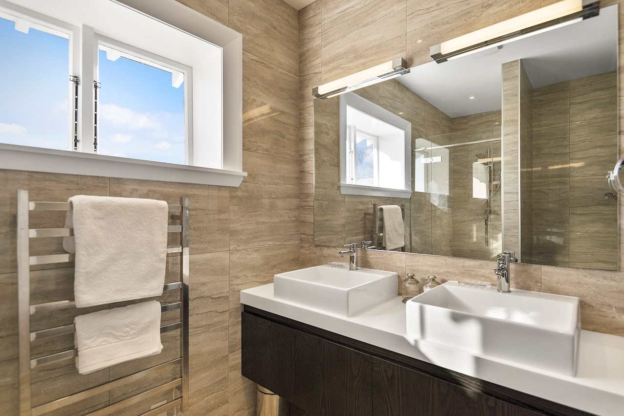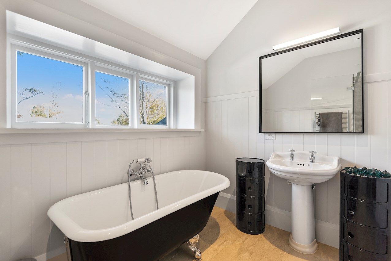 French doors open onto the wraparound deck and outdoor dining/barbecue area with fireplace, which is a dream for relaxing at the weekend or after work. Back inside there are two more separate living areas, plus a home gym. Four spacious bedrooms, two of which have their own walk-in wardrobe and ensuite, round out this commendable renovation.
