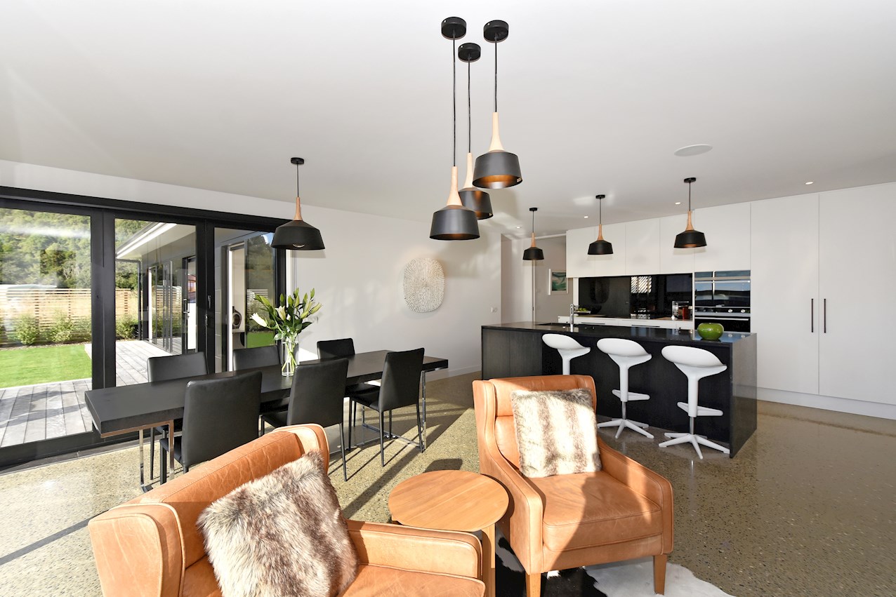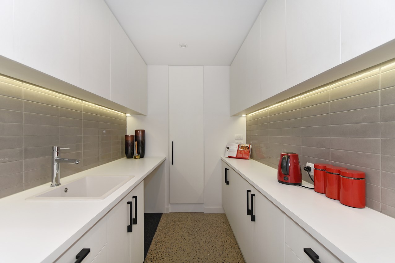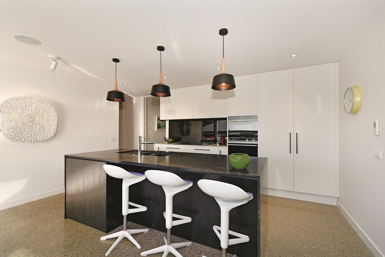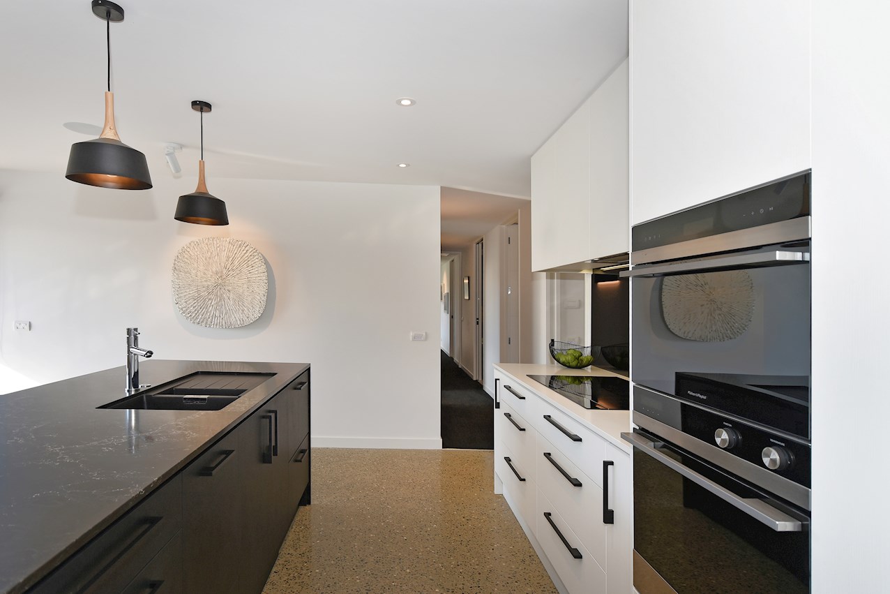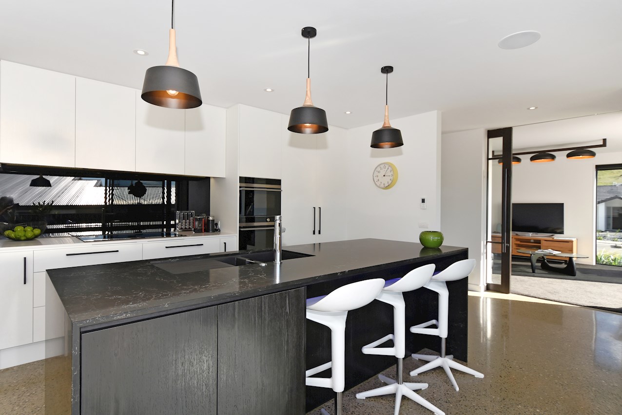 The eye-catching black and white is a real standout, while work areas - scullery, laundry and separate utility room - are kept from view, The layout maintains without compromising ease of use.