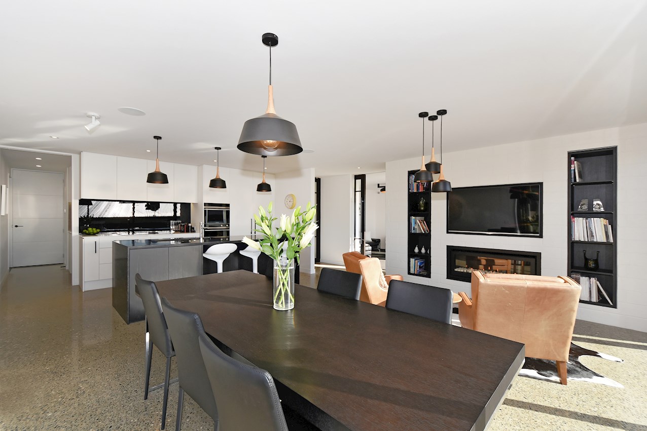 A simple floor plan and easy indoor-outdoor flow are key to successful contemporary living. This marvellous Nelson property in the Marsden Park development demonstrates these values perfectly. Pretty yet practical, the single-level property has open-plan living down to a fine art. The home's heart is enhanced by the stylish fireplace, feature bookshelves and recessed TV.