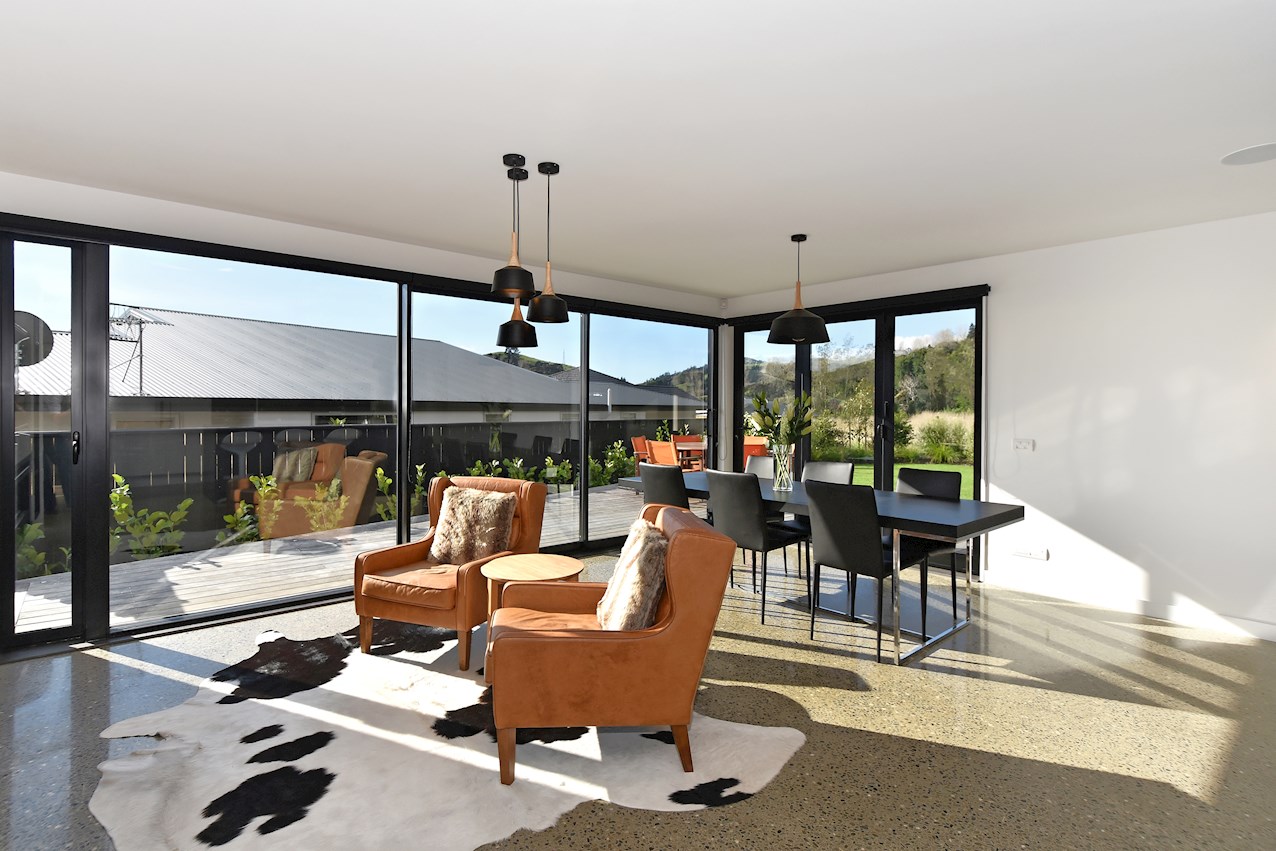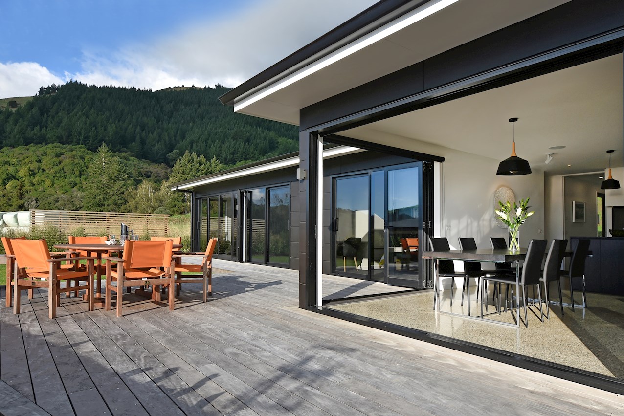 Huge double glazed doors lead to an expansive hardwood deck for seamless indoor-outdoor flow. The living space is dramatically extended as a result.