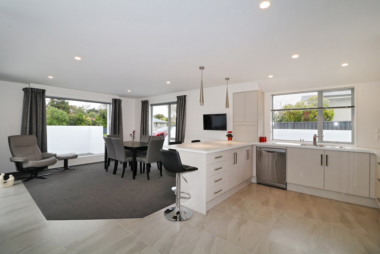 Customised to suit the owners’ lifestyle, this Invercargill residence has bloomed into a relaxing haven. Great for entertaining, a large open-plan living area forms the heart of the home. The kitchen is central to the layout, allowing the cook to interact with guests in the dining or lounge areas.