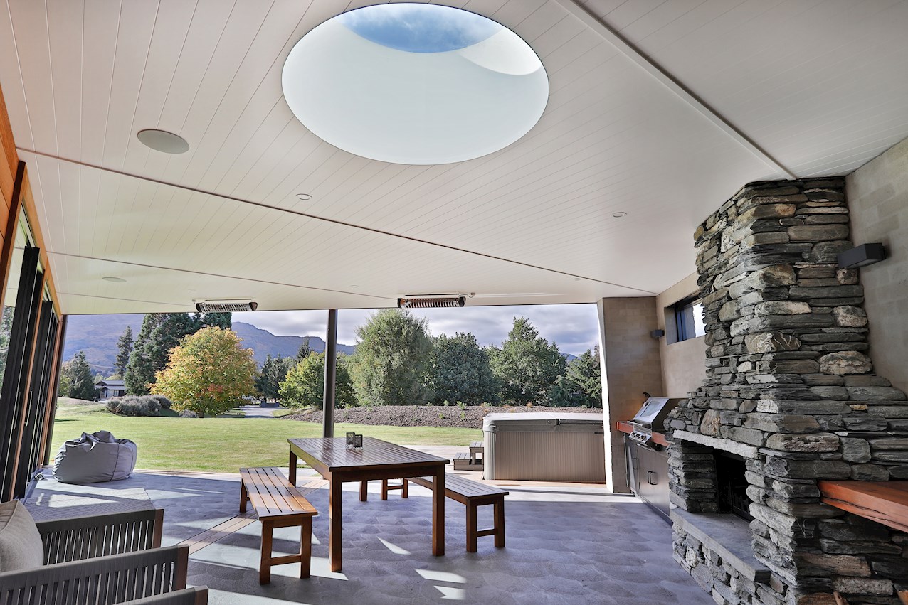 Brilliant outdoor design allows for a variety of experiences with a barbecue, outdoor cooking fire, pizza oven, spa and sun deck. There’s exceptional indoor-outdoor flow from the “great room” and you can keep an eye of things from the TV room too.