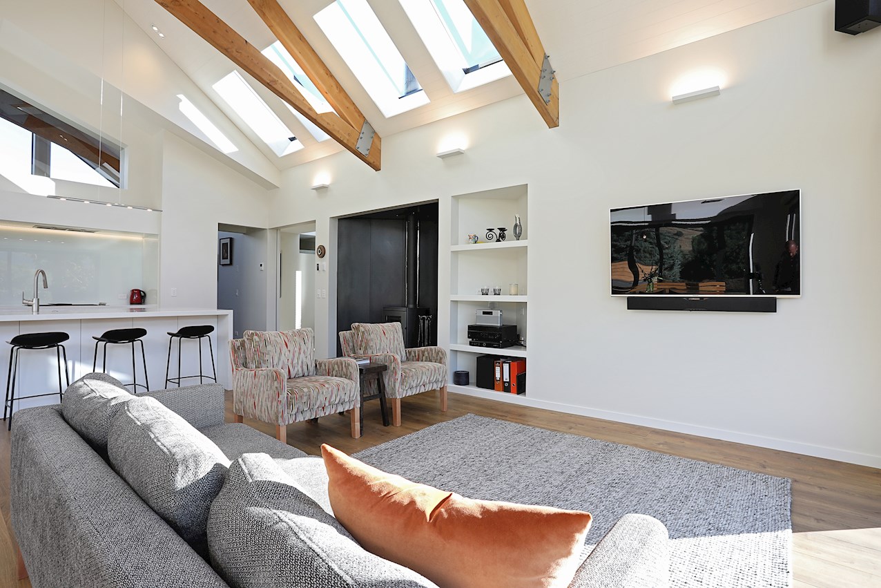 A wood fire provides lovely ambience. With 41 people in and out over the holidays, this grand bach proved fit for purpose.