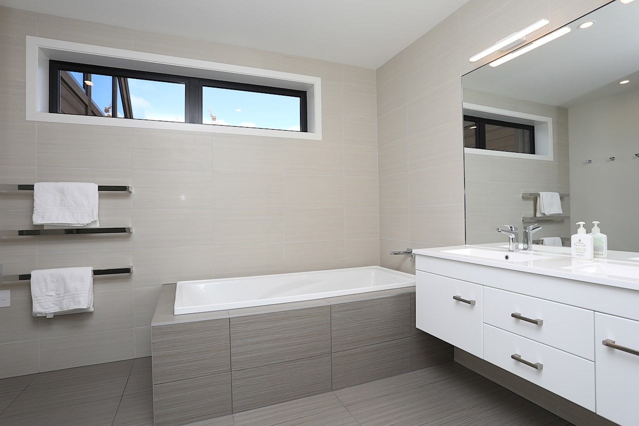 The bunk room sleeps eight, while the main bathroom can be used by several people at once, with its toilet and shower shut off by glass doors from the sink and tub area. The master bedroom with ensuite offers extra comfort and privacy to the owners.