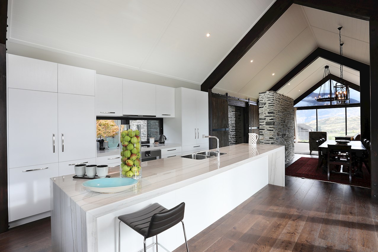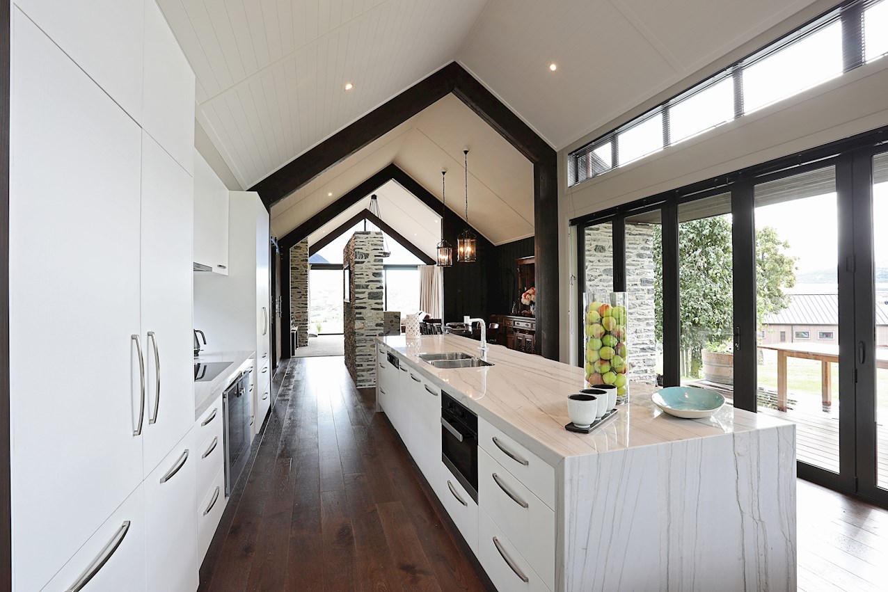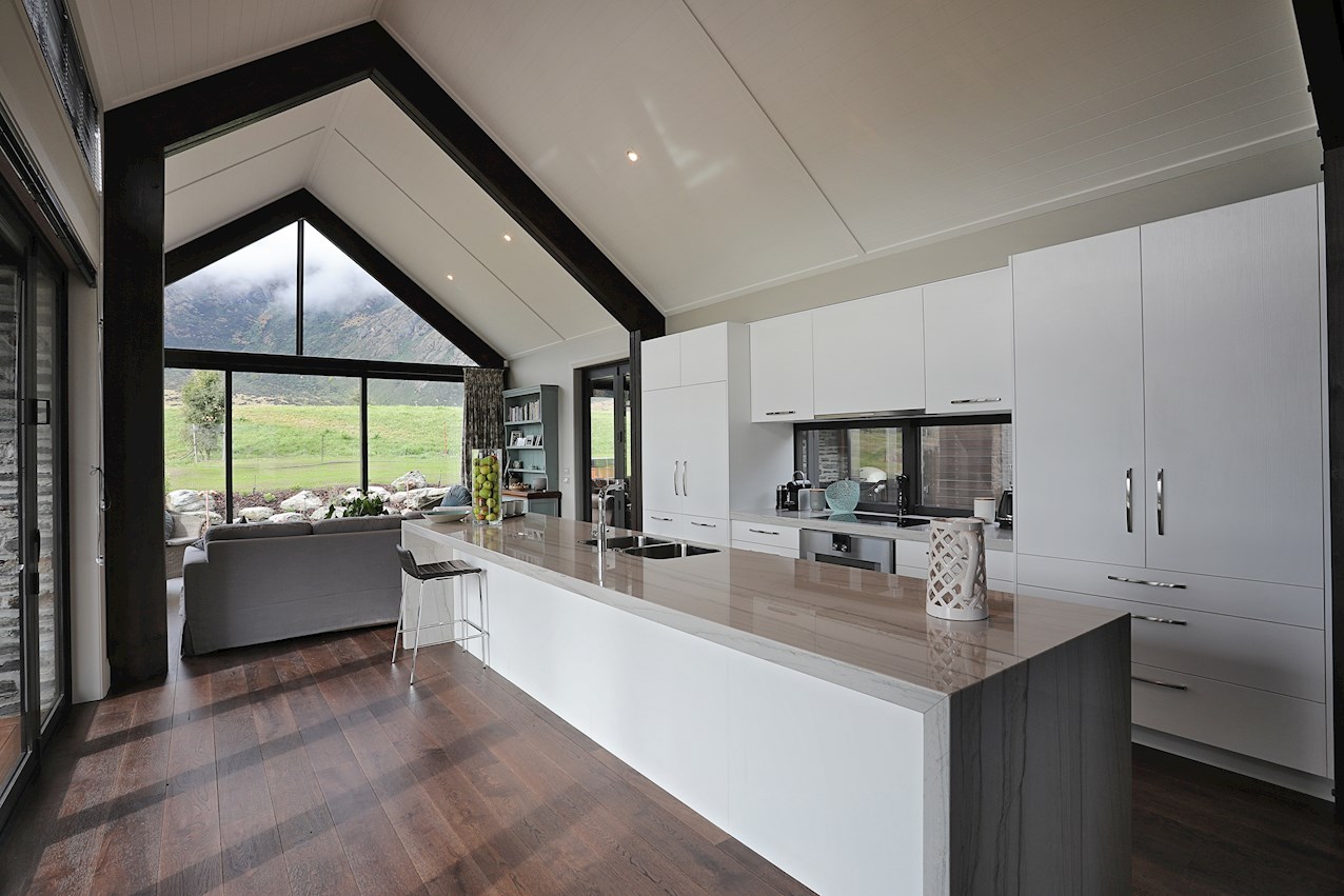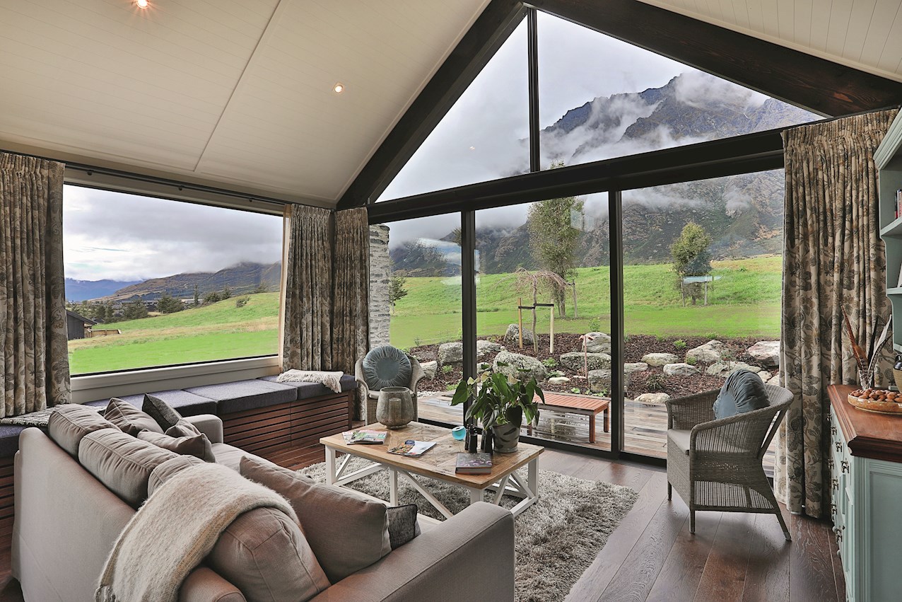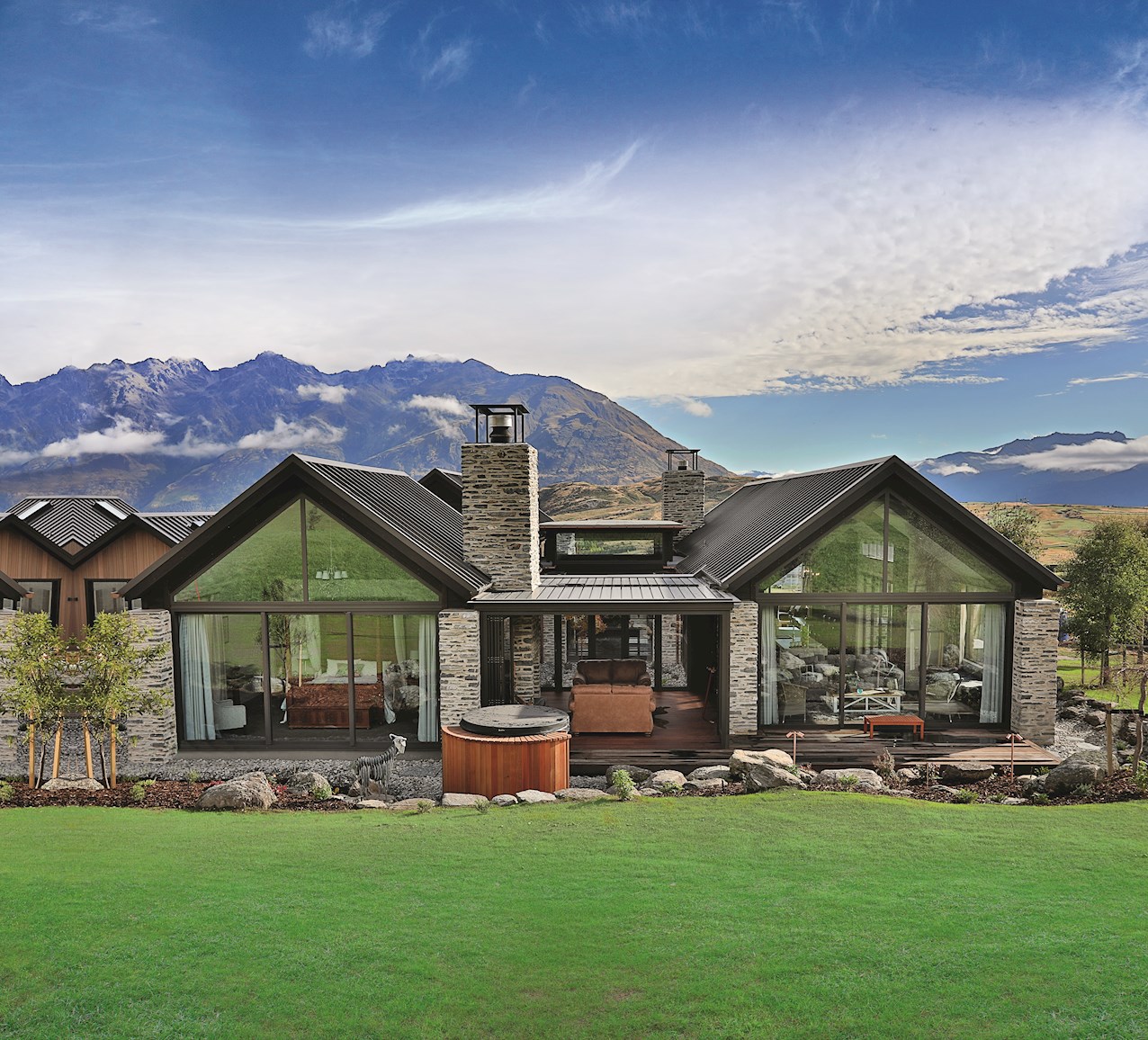 Beautifully open to the surrounding lake and mountain views, this Jack’s Point jewel exudes lodge-style luxury inside and out. All four gable ends are glazed: two facing the Remarkables mountain range, the other two gazing out over Lake Wakatipu.