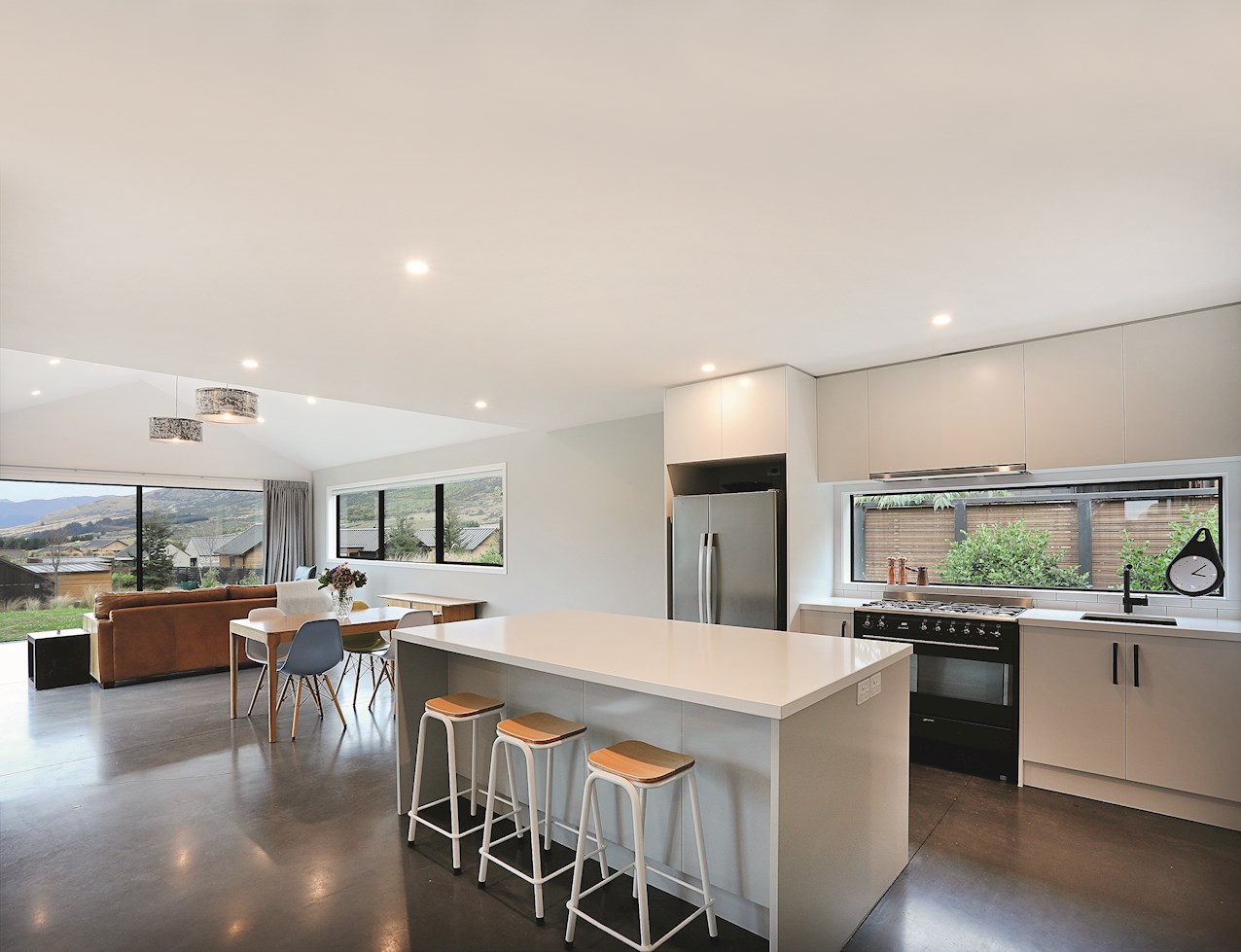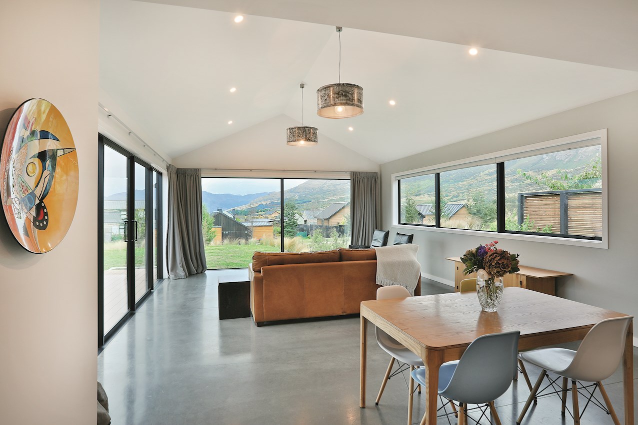 A gently elevated site offers this Jack’s Point gem exceptional solar gain and sweeping views. Coronet Peak, Lake Wakatipu and the Remarkables all take a starring role in the breathtaking vista. Extensive floor-to-ceiling glass fills the living spaces with sun.