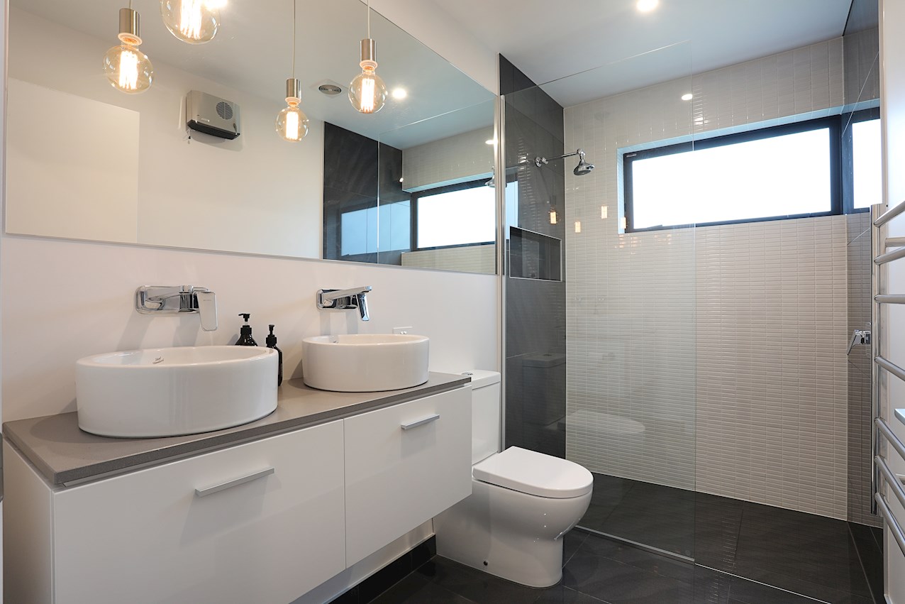 Open-plan living is at the heart of this ruggedly handsome 234sqm residence. Kitchen, dining and living areas enjoy good flow through glass sliders to a perfectly positioned northfacing deck. The outdoor entertaining zone is awash in views, making it a lovely space to gather when entertaining friends and loved ones. It’s also connected to the master suite.