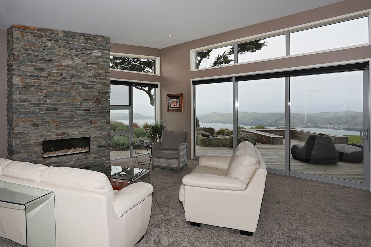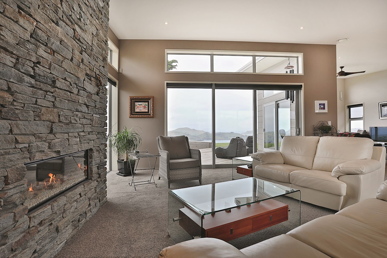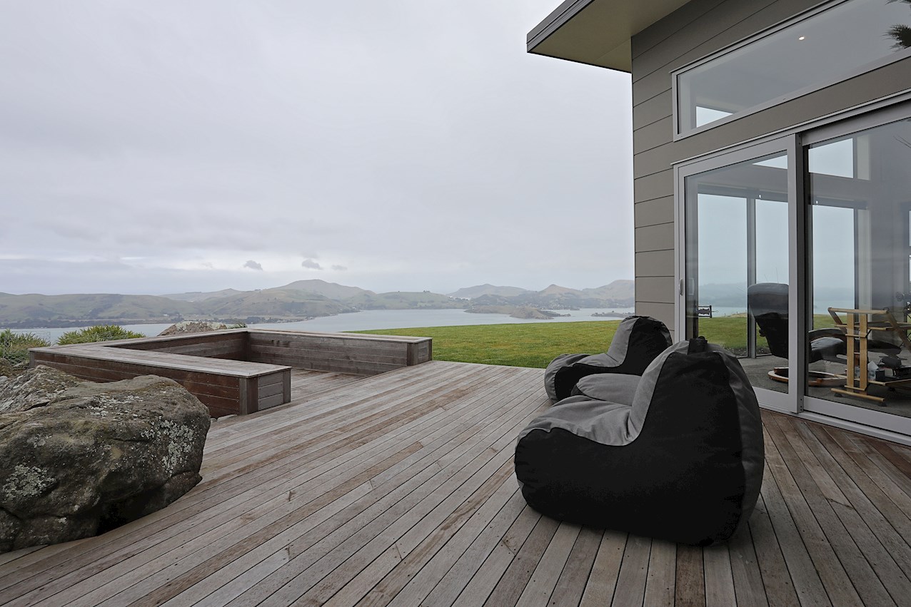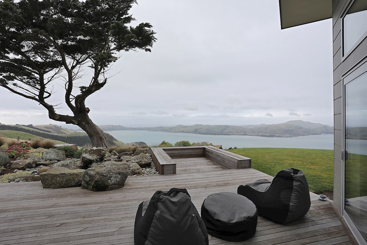 Huge windows and triple sliding glass doors draw sunlight into the 263sqm interior. A well-considered layout ensures sheltered outdoor entertaining, whatever the weather. Spectacular views of the harbour, peninsula and ocean beyond provide a beautiful backdrop to everyday life inside.
