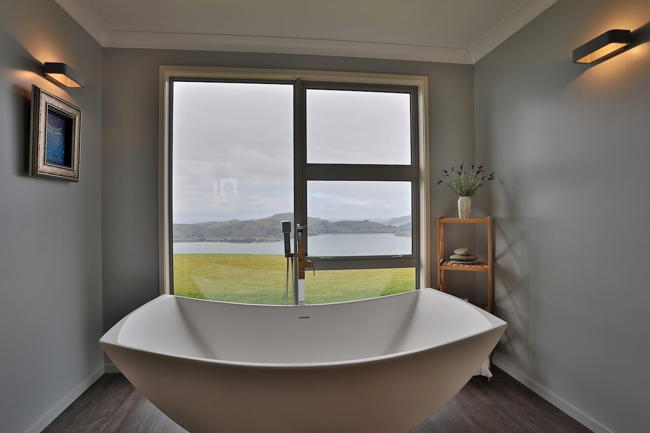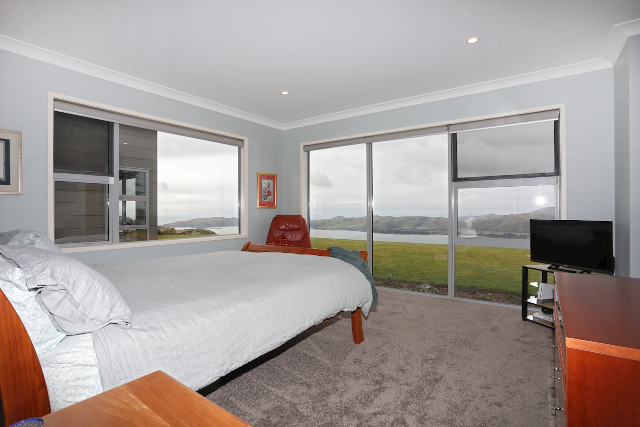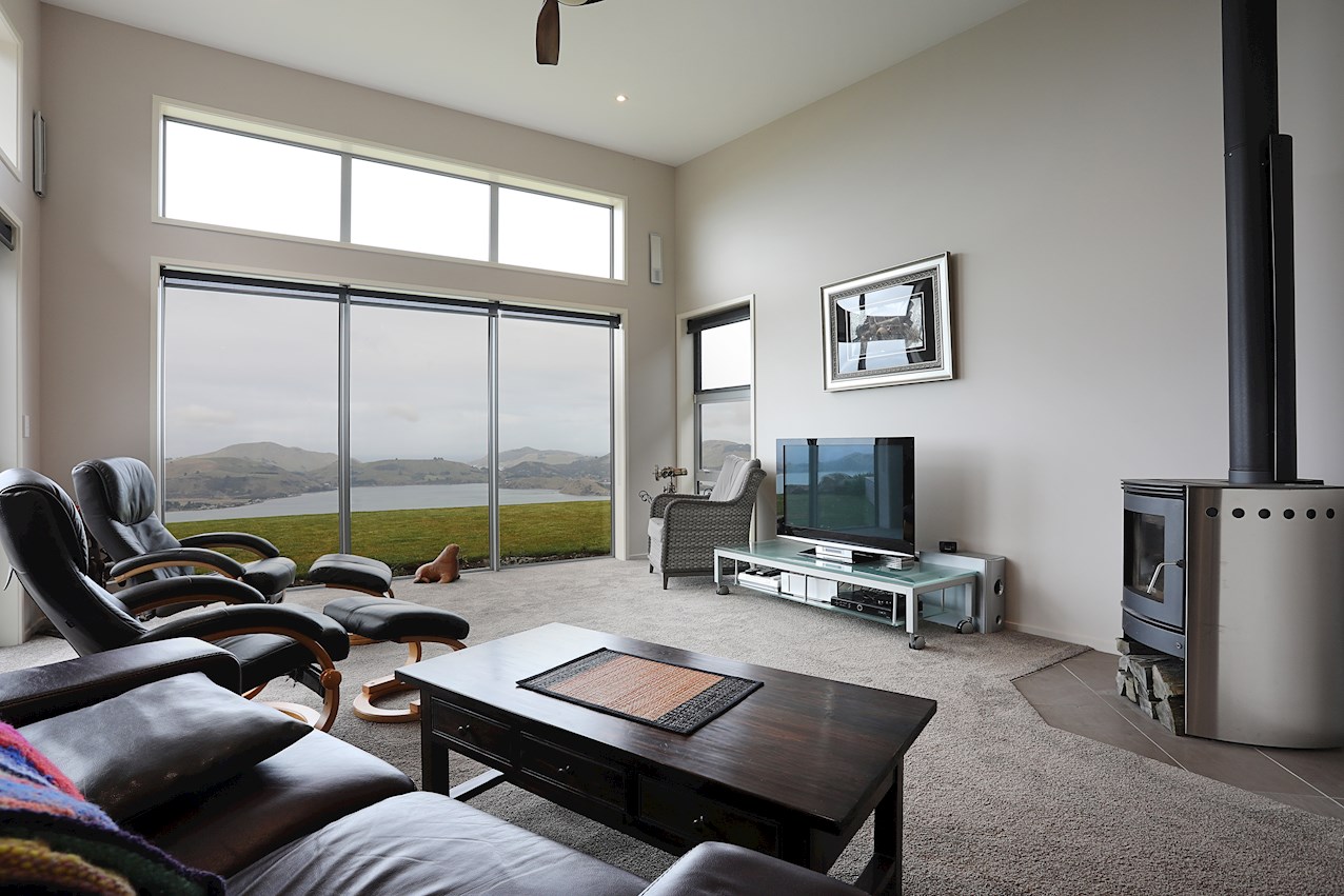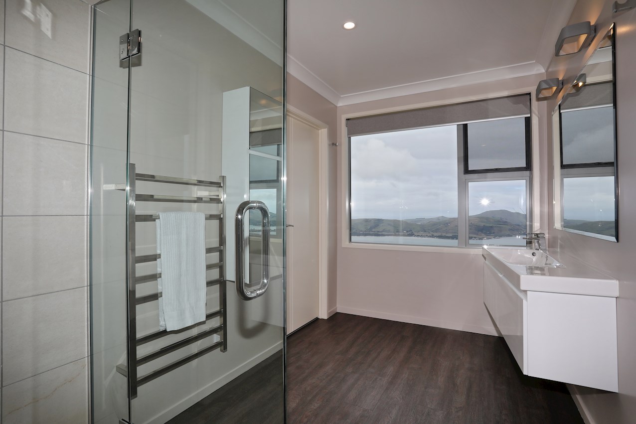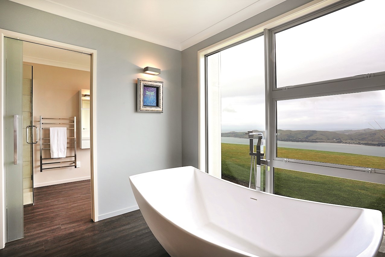 Huge windows and triple sliding glass doors draw sunlight into the 263sqm interior. A well-considered layout ensures sheltered outdoor entertaining, whatever the weather. Spectacular views of the harbour, peninsula and ocean beyond provide a beautiful backdrop to everyday life inside.