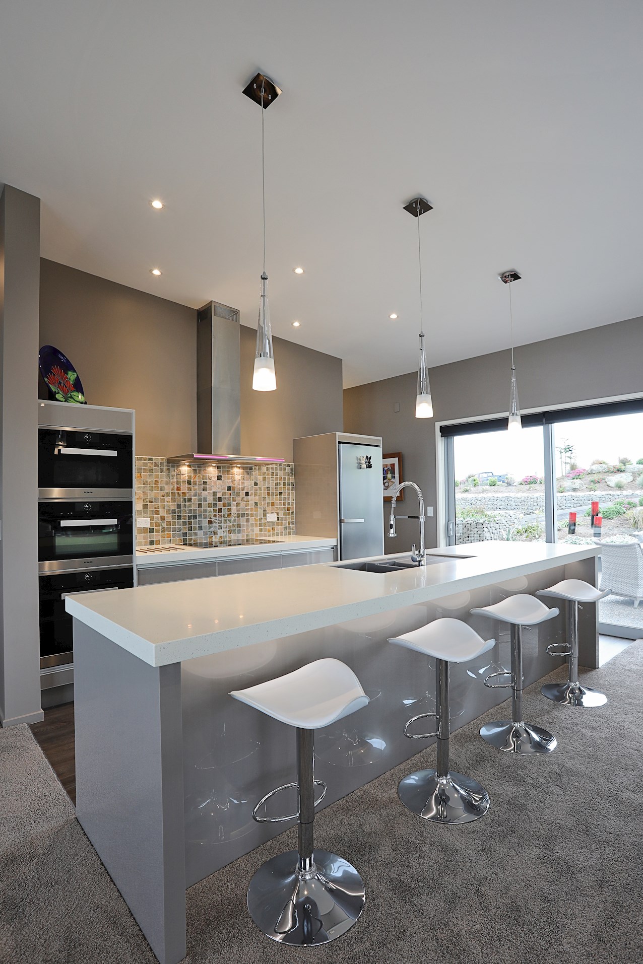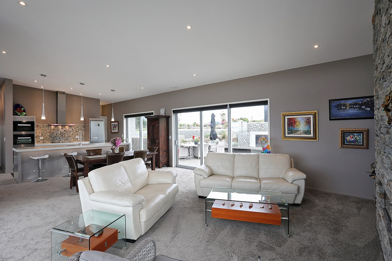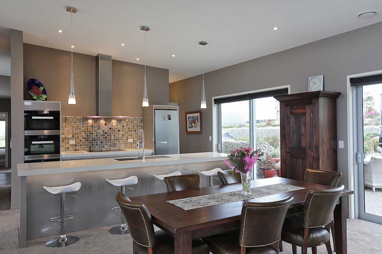 Central to the living spaces is the contemporary kitchen with island bench. Here, the resident entertainer can indulge their passion for cooking or cocktails. To ensure mess-free mingling, a scullery is concealed backstage.