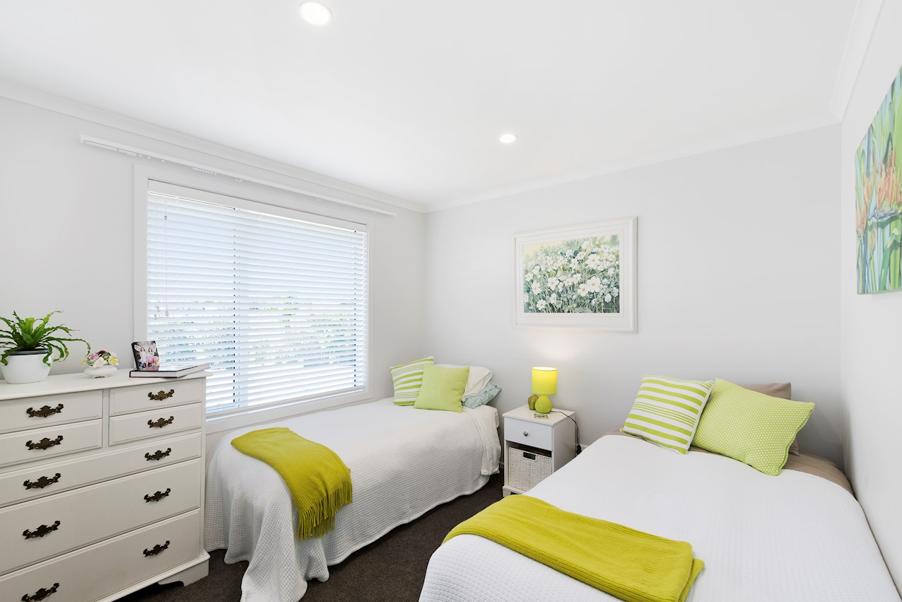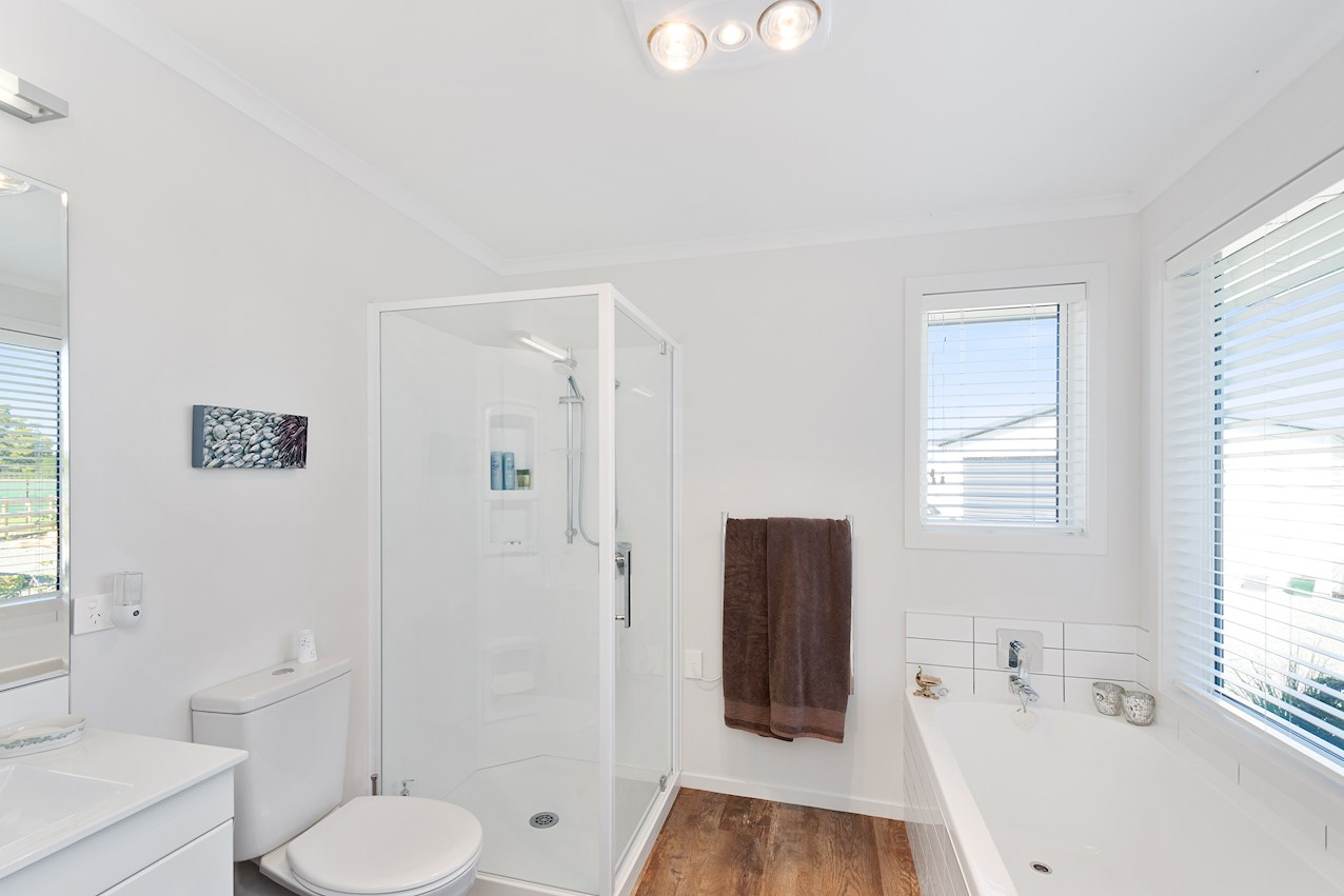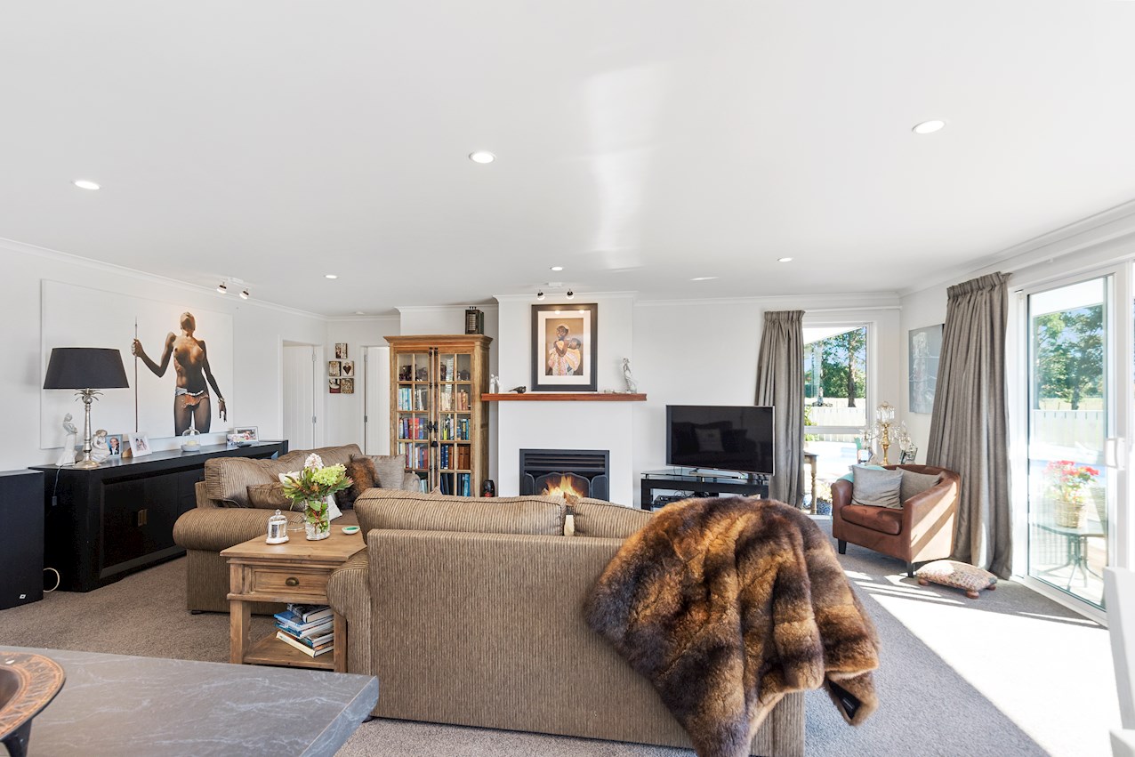 The light-filled, open-plan hub is a haven of relaxation, overlooking the large deck and in-ground swimming pool. Facing north, it captures all-day sun. Entertaining is a pleasure in the modern kitchen. With seating for six, the central island easily caters to small groups. More formal occasions are centred around the dining table, which is illuminated by a chic chandelier. An open fire provides a focal point for heated discussions in the sitting area. Cosy furniture adds character and a personal touch. Carpet and drapes soften the spaces. A separate hobbies room is a private retreat for the home’s keen artist.