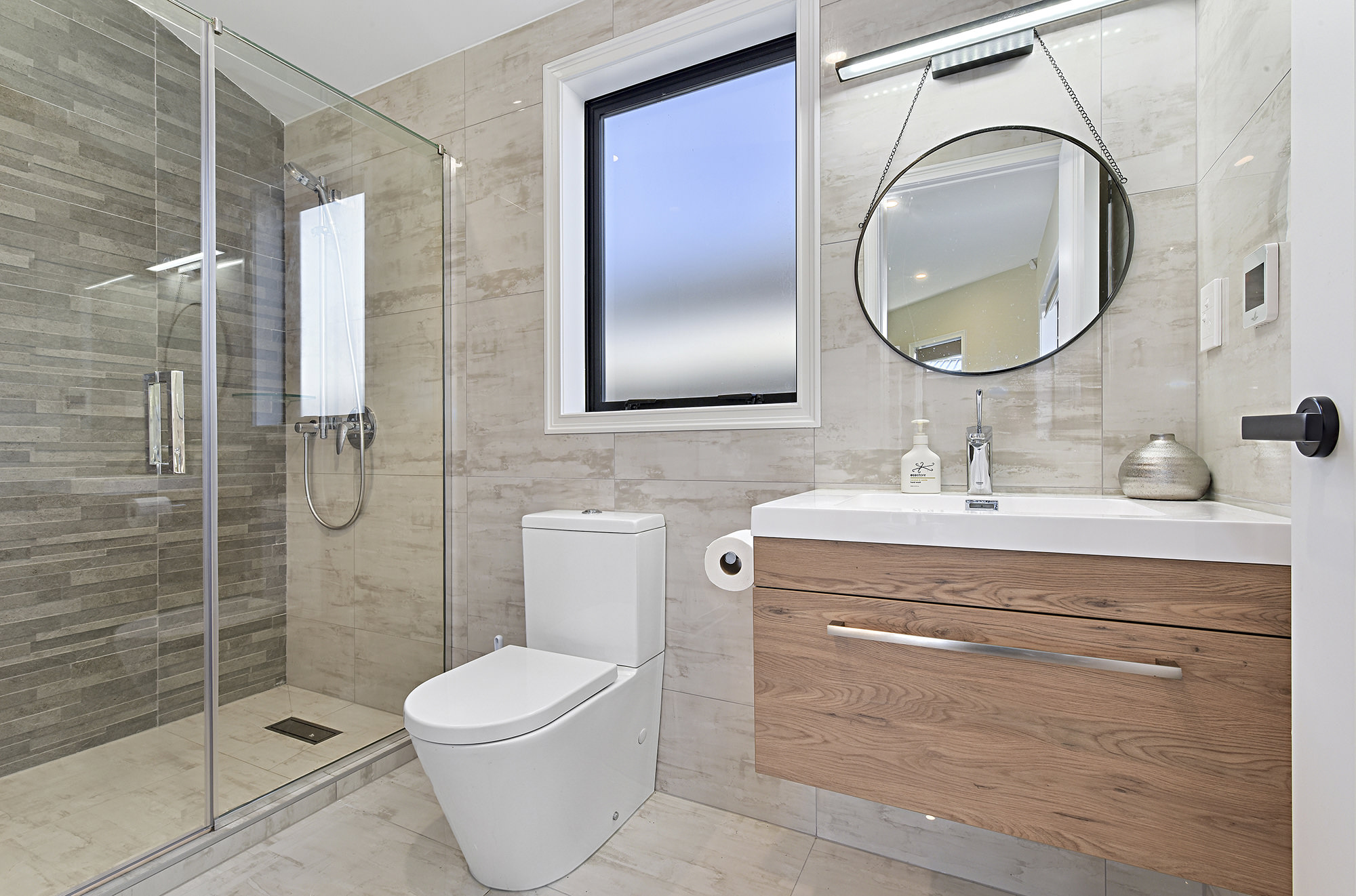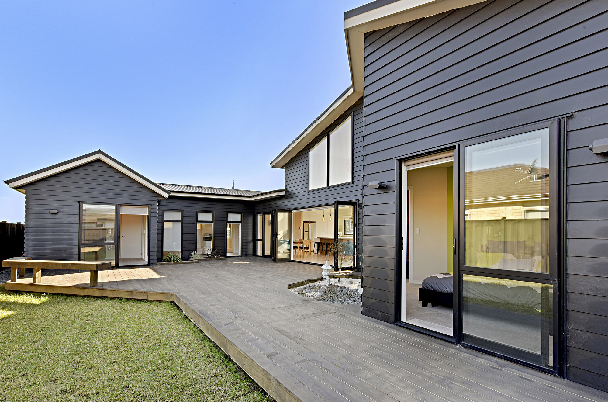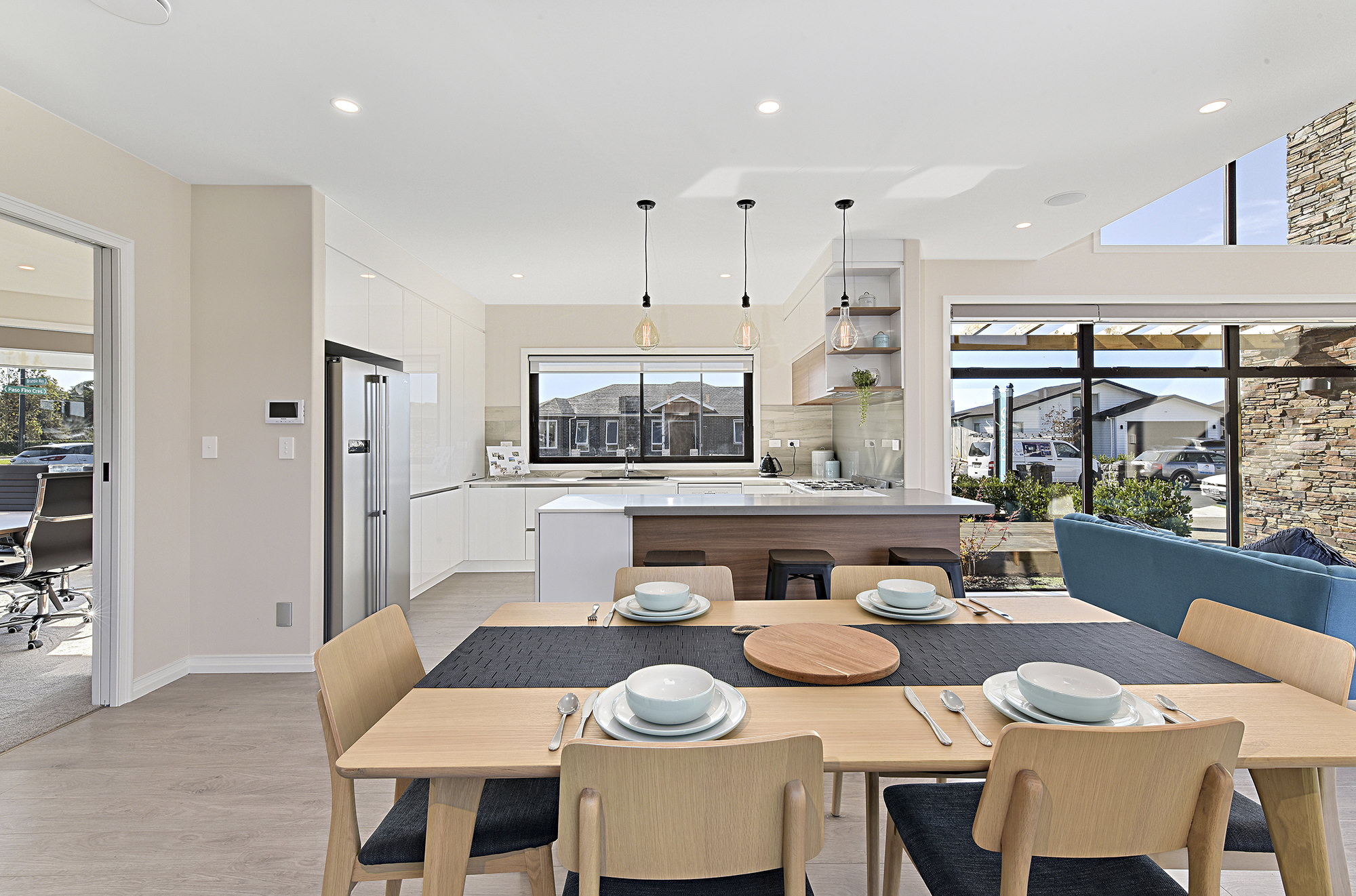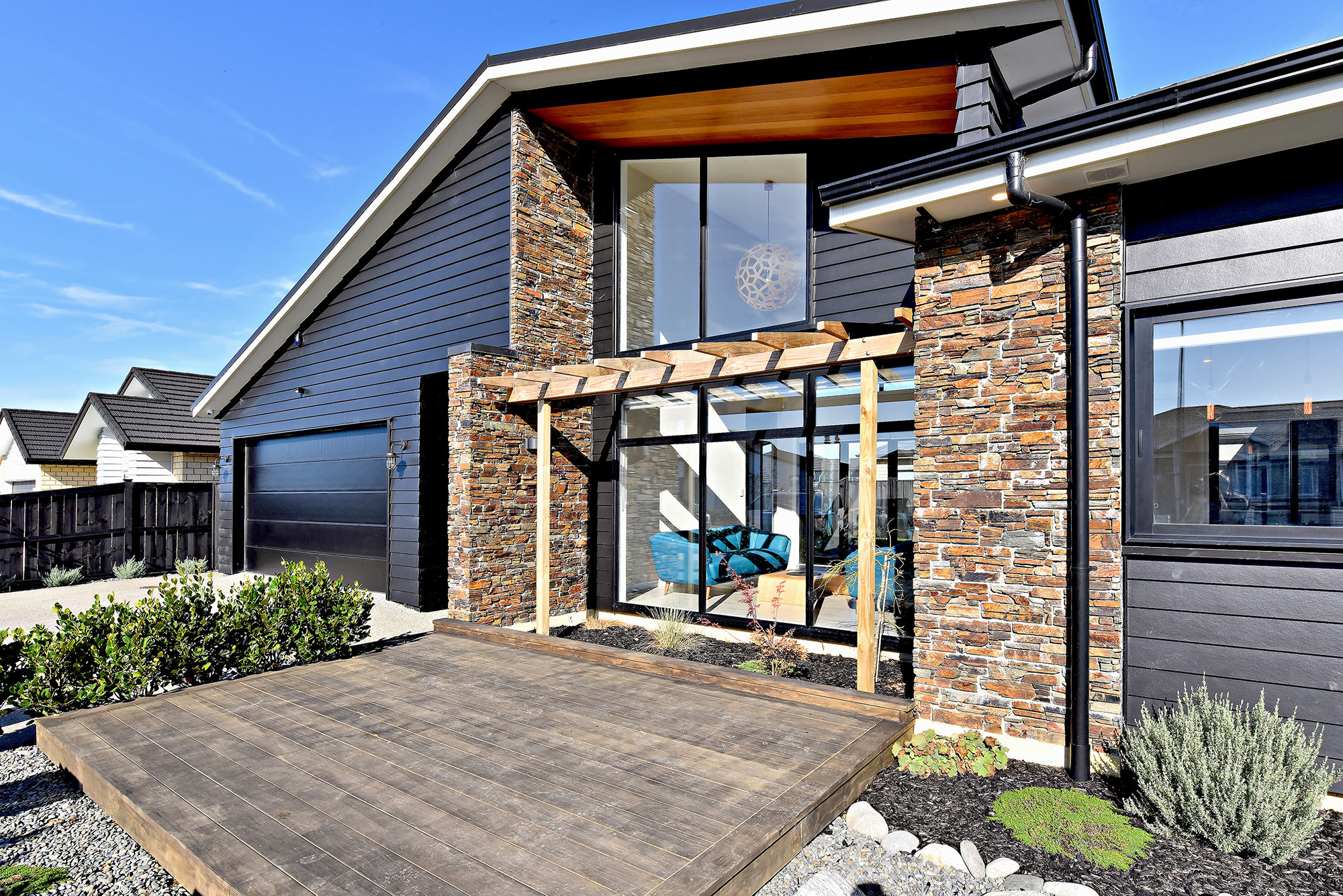 Located in the rolling green south of Auckland, this contemporary Zen masterpiece finds harmony in the meeting of traditional and modern design styles. Built with a natural flow in mind, the house features an eye-opening Caesarstone entry that moves right into the main living area. Here, super-high ceilings trap auspicious “chi”, drawing in a wealth of sunshine. Seamlessly integrated with an open kitchen, the main living space is relaxed and functional. The high raking ceiling gives this area a sense of lightness and spaciousness. The rooms in this property – four bedrooms, three bathrooms, two living areas – create a natural curve around the outdoor living area. This gives each one privacy, with a view to the contoured deck. At the front of the property, an intricately crafted Zen pond and fountain sit in absolute serenity to calmly welcome visitors. For a more immersive experience, retreat to the main bathroom. Light, wood-look tiling envelops the bathtub with a calming sense of nature.