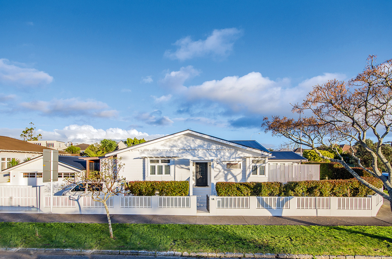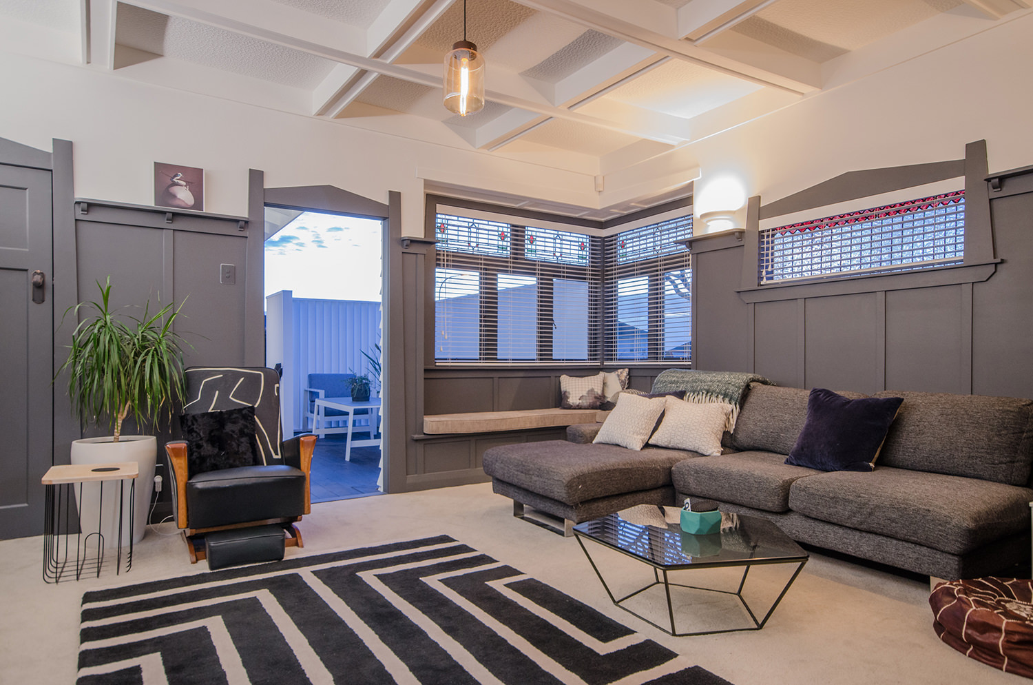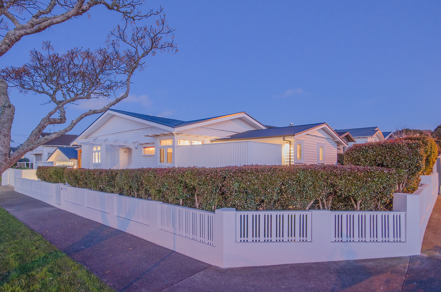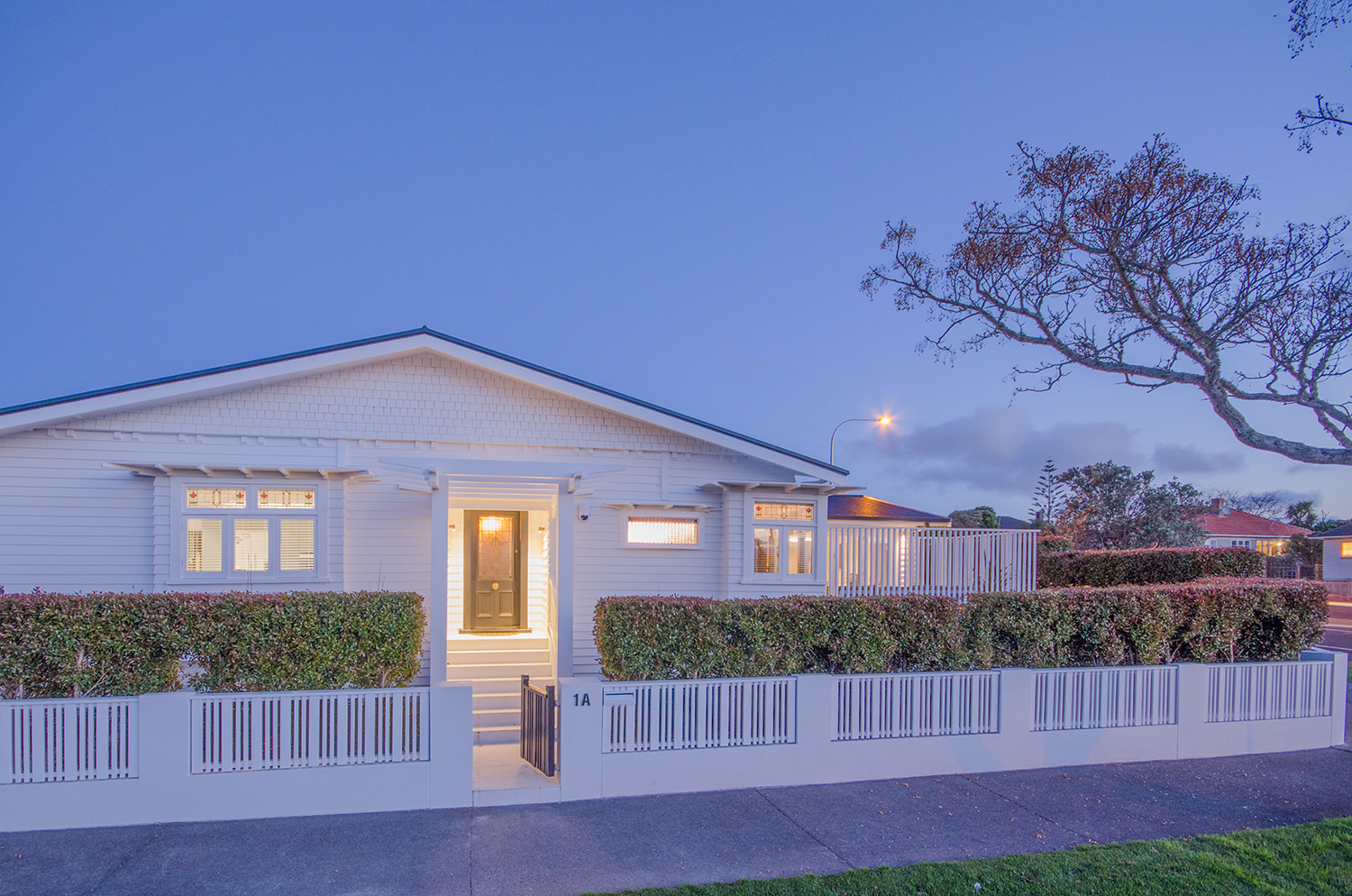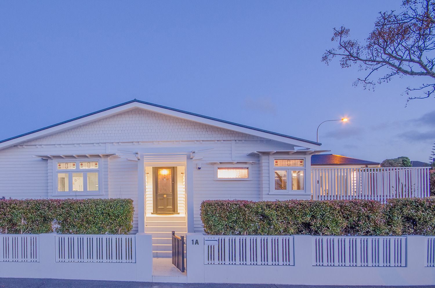 This iconic bungalow has been updated for modern living. Up a path of brushed-limestone pavers and through a stained glass door, this four-bedroom, two-bathroom family home has been redesigned with luxury fittings and decor. Light spills through the new double-glazed joinery into the living area, which retains original pressed ceilings and beams, but with new matai flooring. The newly installed Poggenpohl kitchen has a large gas hob set into the textured slate bench and splashback, and a special 6mm bead-blasted stainless steel island to complete the galley style, which flows out through large slider doors onto the deck. A hardwood pergola with glazed canopy provides sun screening and privacy for entertaining and there’s a custom built-in barbecue bench. The deck leads round to a tropical garden oasis for lounging in full sun. No stone has been left unturned to provide a quality environment with fully ducted air-conditioning and a temperature regulating and moisture control system, along with insulation throughout.