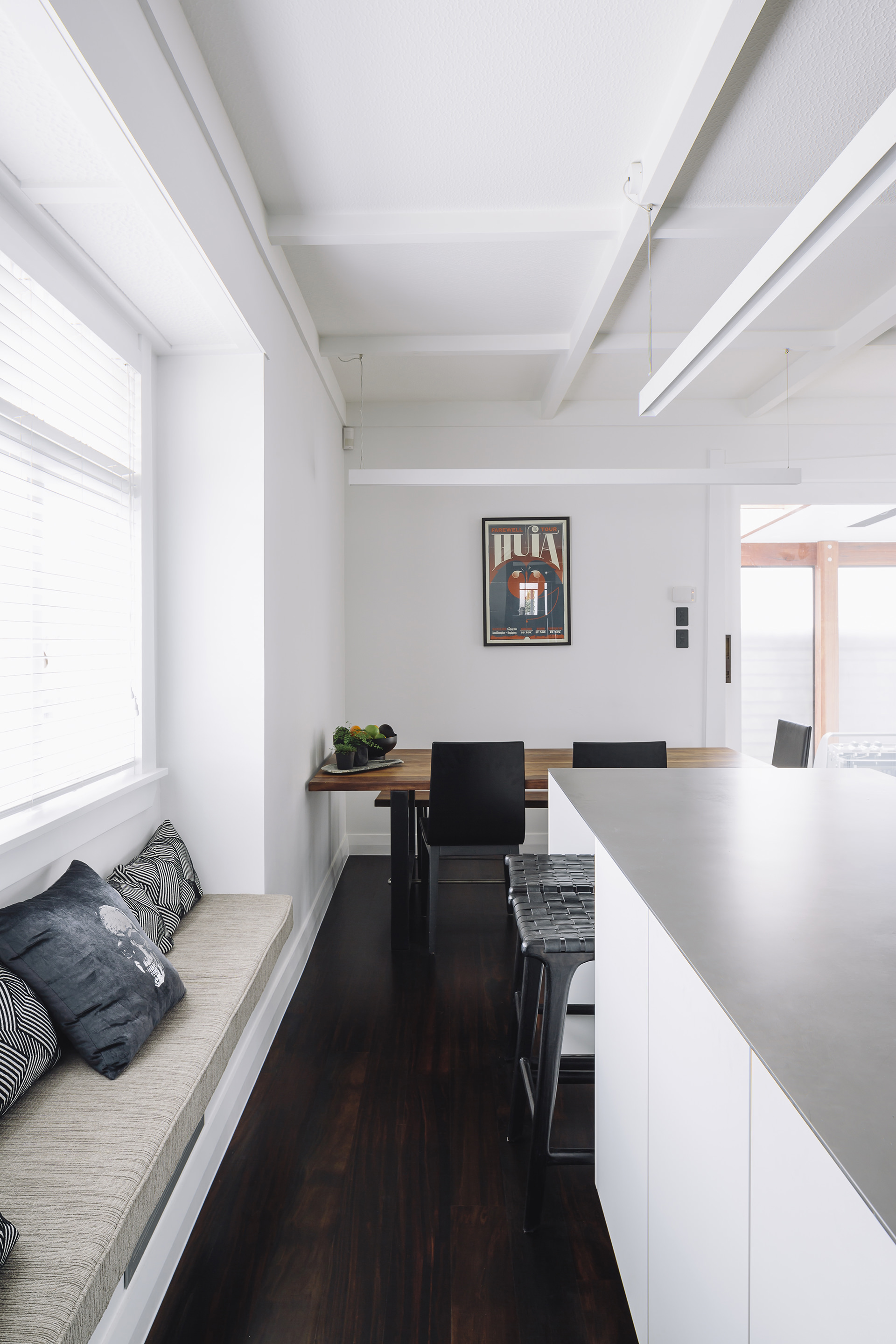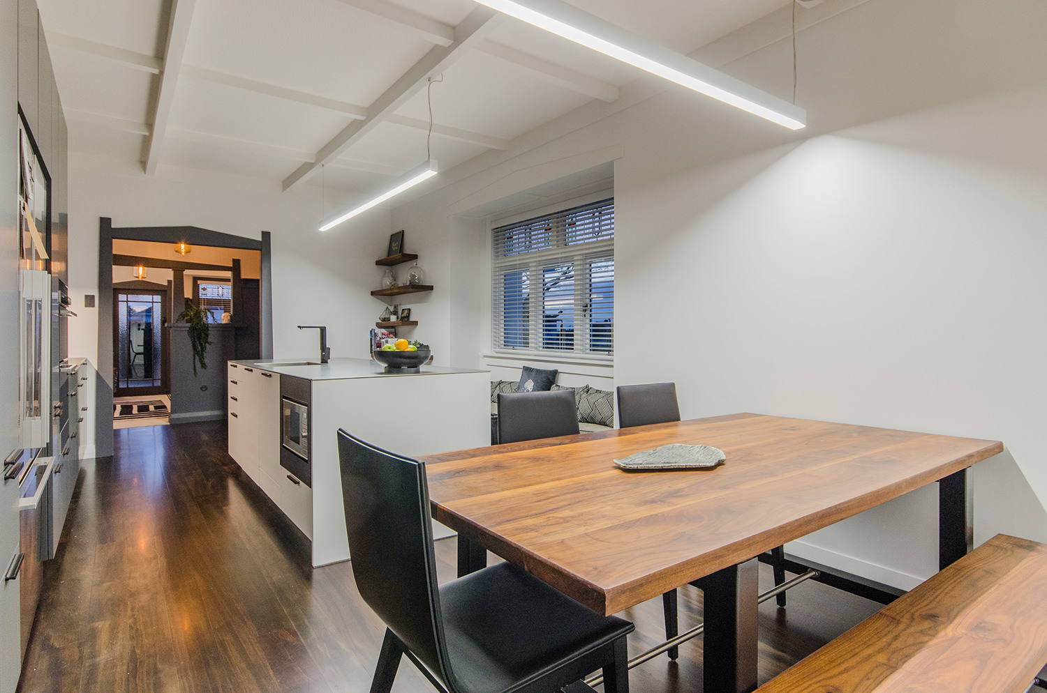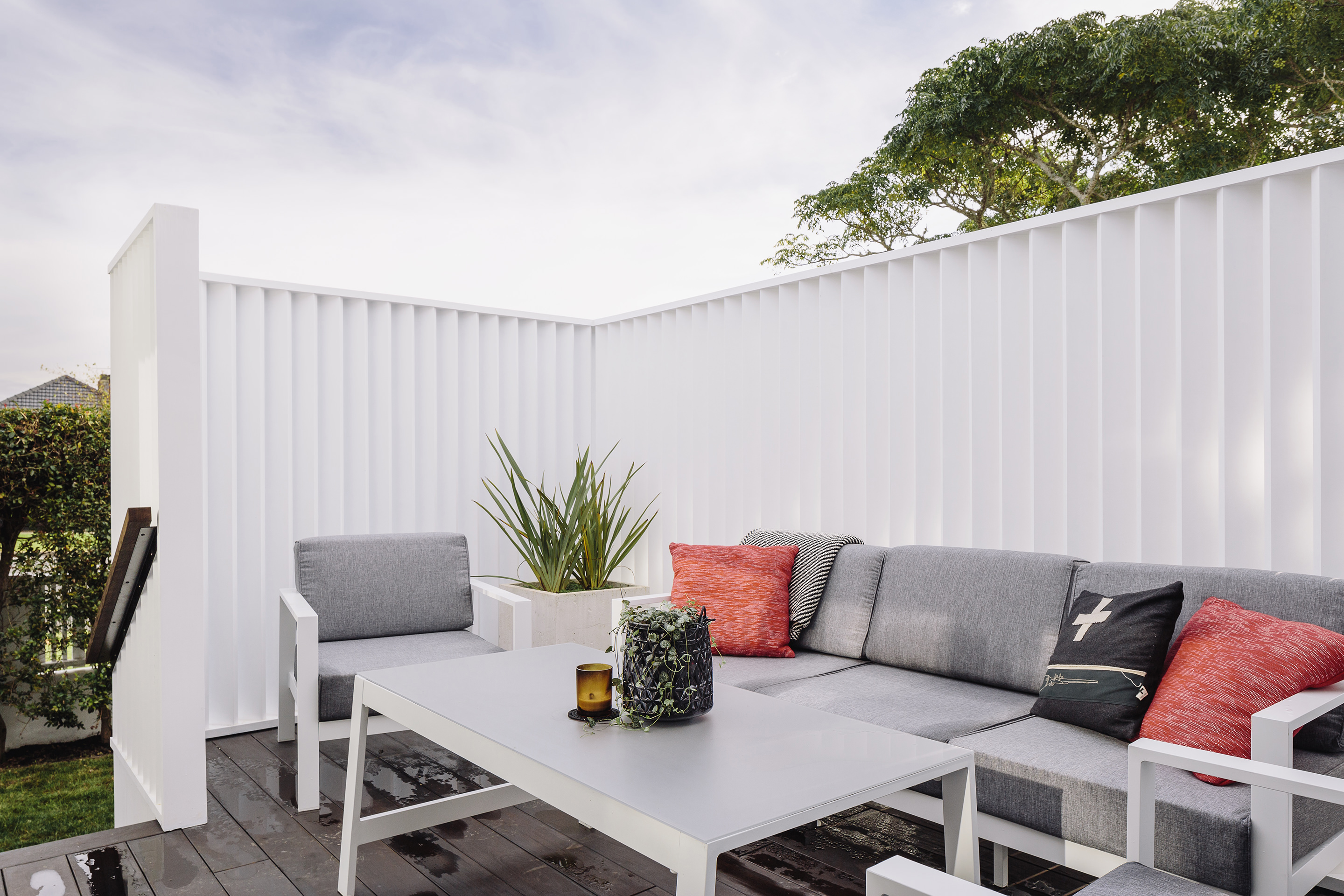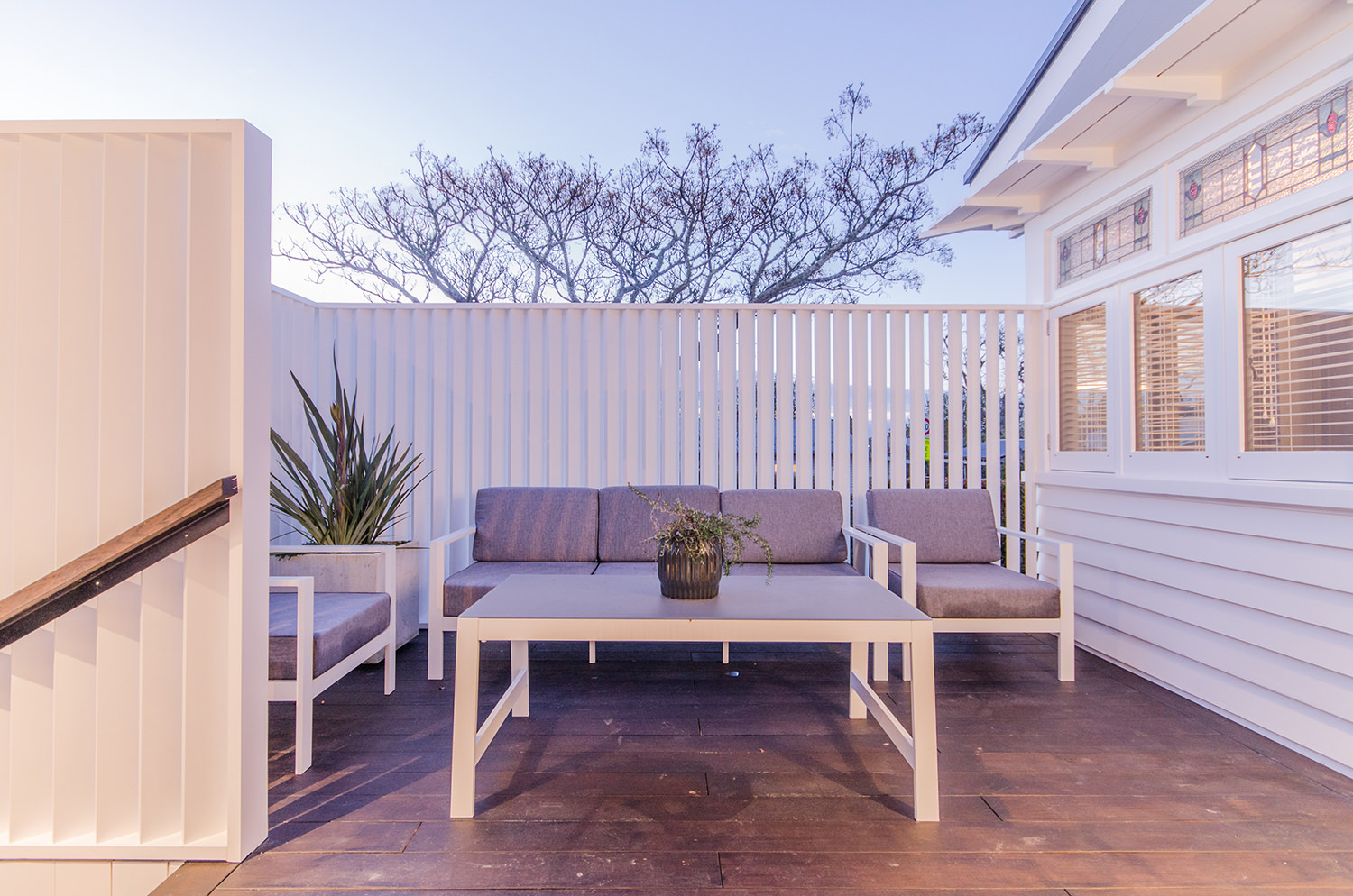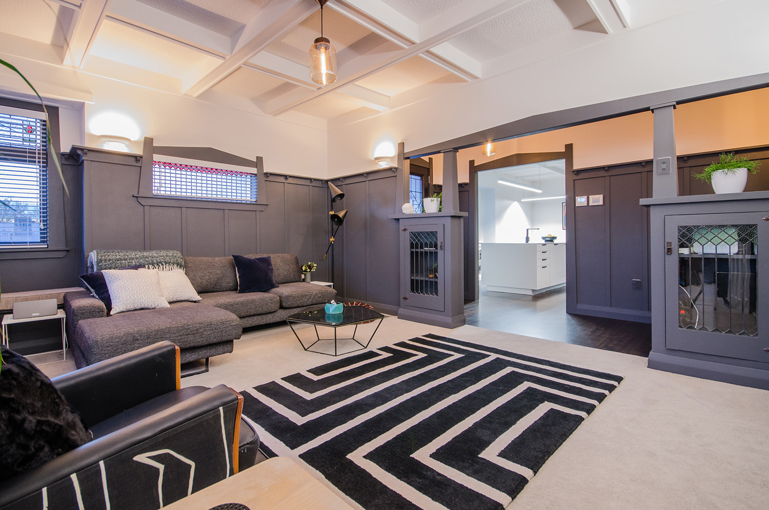 This iconic bungalow has been updated for modern living. Up a path of brushed-limestone pavers and through a stained glass door, this four-bedroom, two-bathroom family home has been redesigned with luxury fittings and decor. Light spills through the new double-glazed joinery into the living area, which retains original pressed ceilings and beams, but with new matai flooring. The newly installed Poggenpohl kitchen has a large gas hob set into the textured slate bench and splashback, and a special 6mm bead-blasted stainless steel island to complete the galley style, which flows out through large slider doors onto the deck. A hardwood pergola with glazed canopy provides sun screening and privacy for entertaining and there’s a custom built-in barbecue bench. The deck leads round to a tropical garden oasis for lounging in full sun. No stone has been left unturned to provide a quality environment with fully ducted air-conditioning and a temperature regulating and moisture control system, along with insulation throughout.