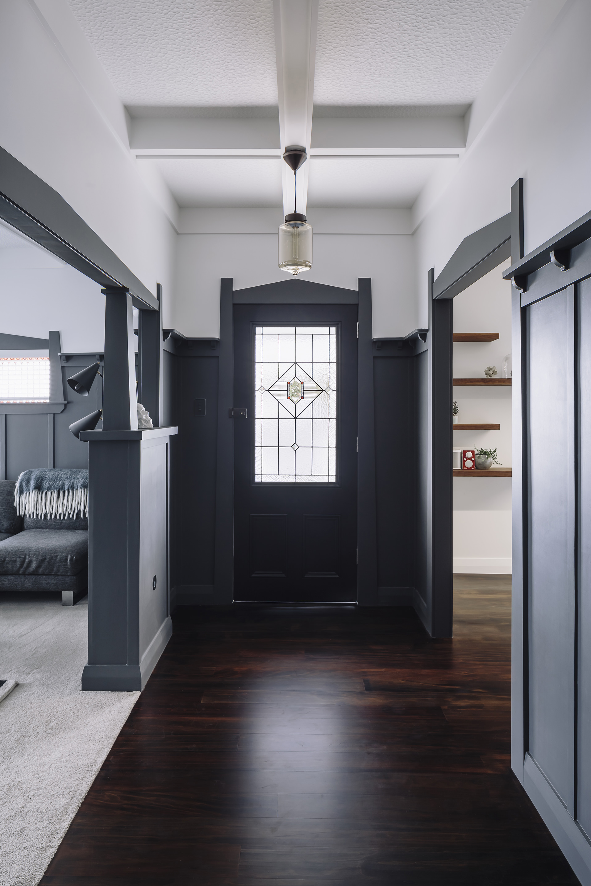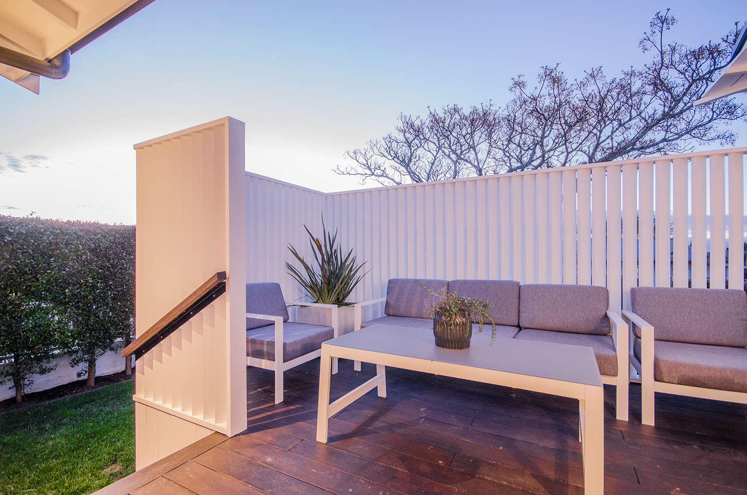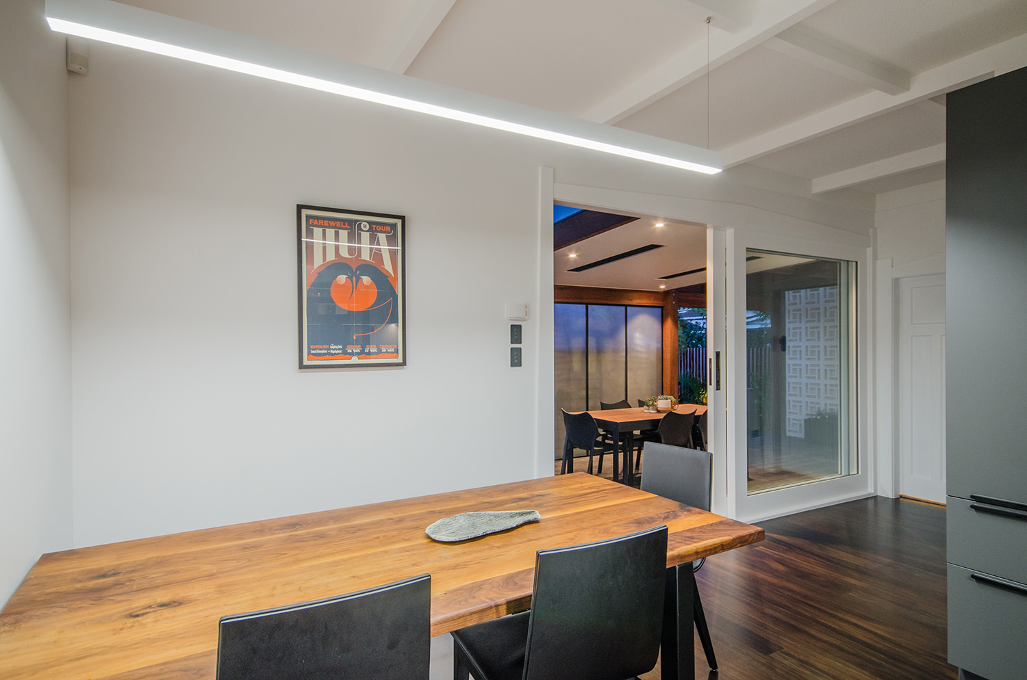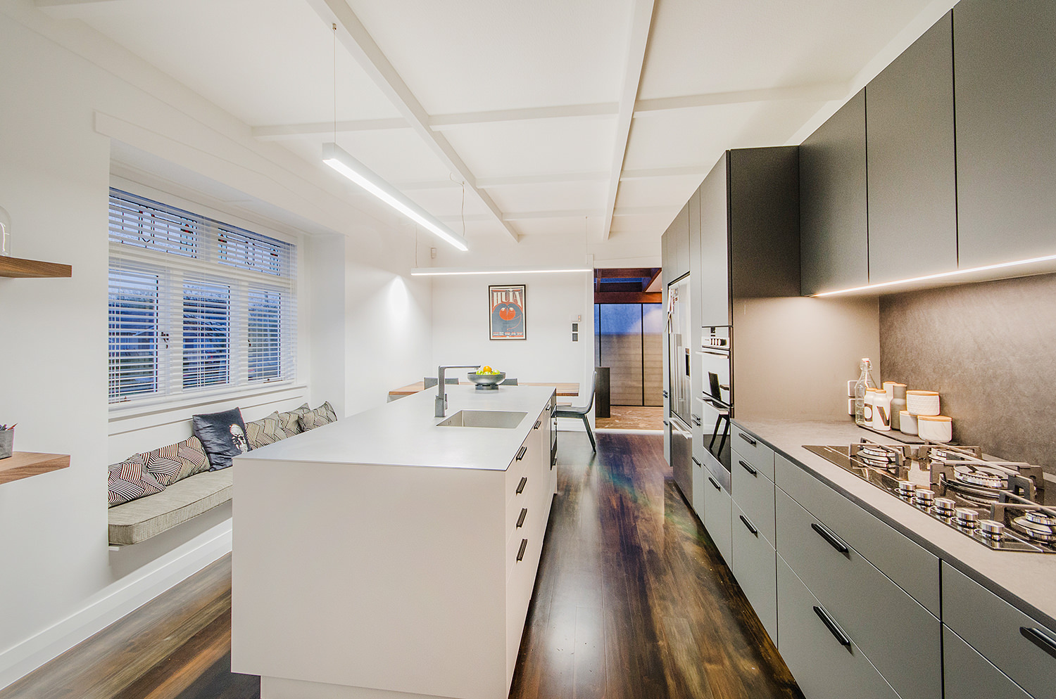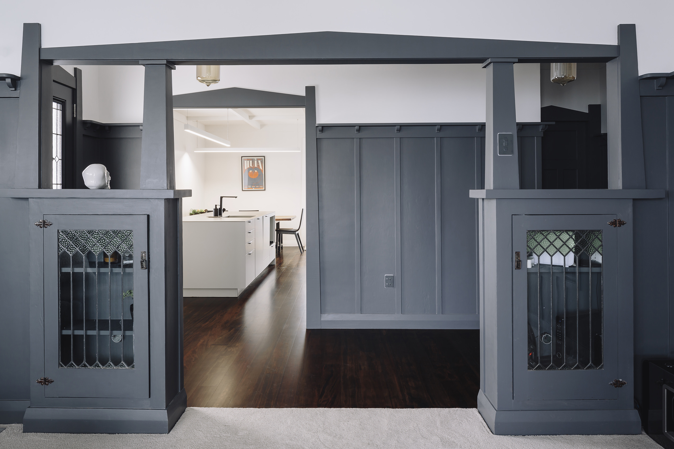 This iconic bungalow has been updated for modern living. Up a path of brushed-limestone pavers and through a stained glass door, this four-bedroom, two-bathroom family home has been redesigned with luxury fittings and decor. Light spills through the new double-glazed joinery into the living area, which retains original pressed ceilings and beams, but with new matai flooring. The newly installed Poggenpohl kitchen has a large gas hob set into the textured slate bench and splashback, and a special 6mm bead-blasted stainless steel island to complete the galley style, which flows out through large slider doors onto the deck. A hardwood pergola with glazed canopy provides sun screening and privacy for entertaining and there’s a custom built-in barbecue bench. The deck leads round to a tropical garden oasis for lounging in full sun. No stone has been left unturned to provide a quality environment with fully ducted air-conditioning and a temperature regulating and moisture control system, along with insulation throughout.
