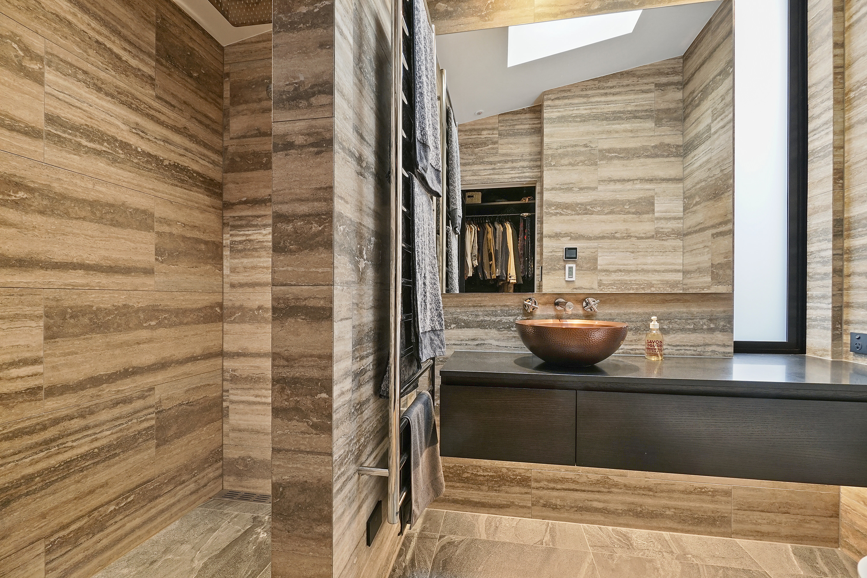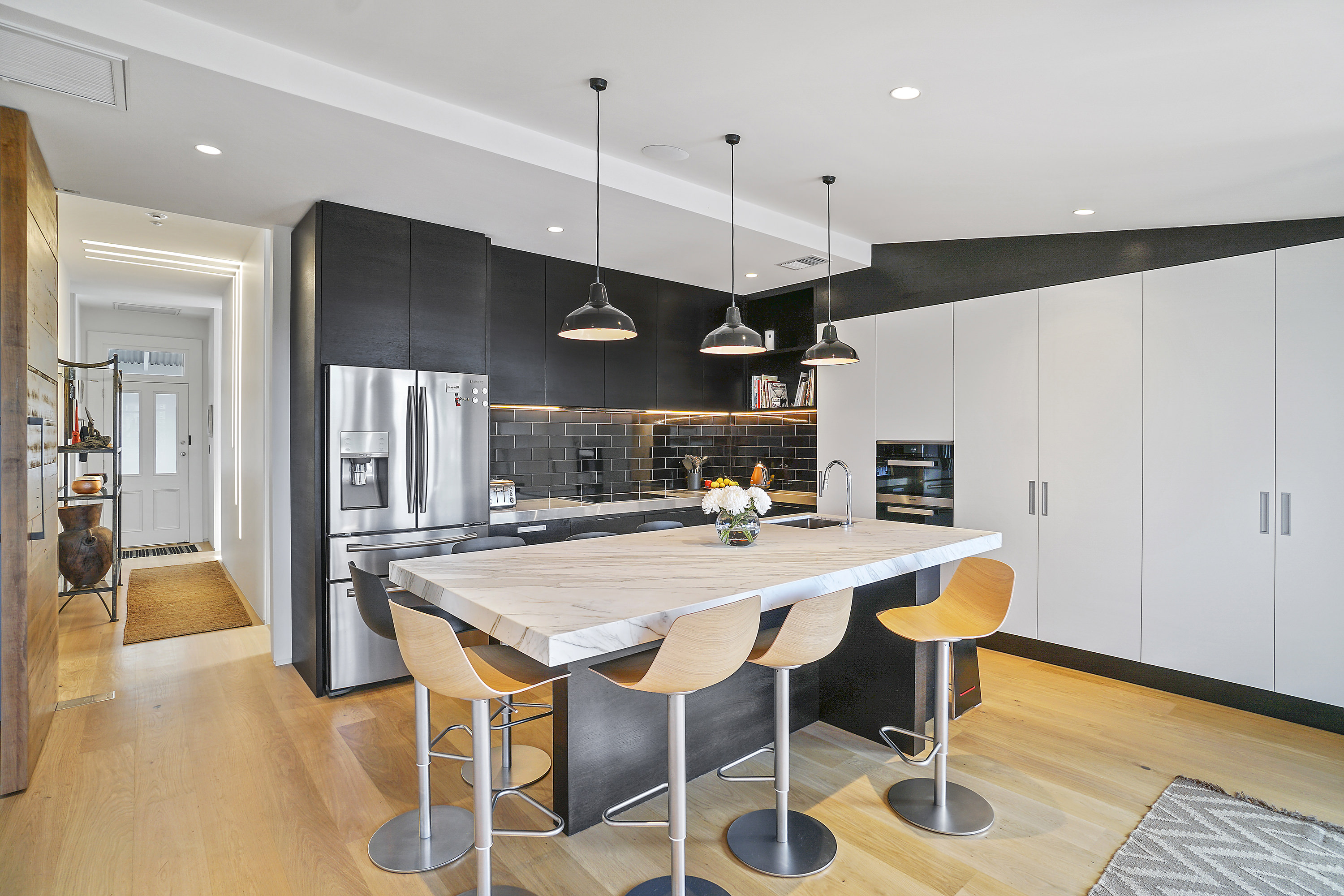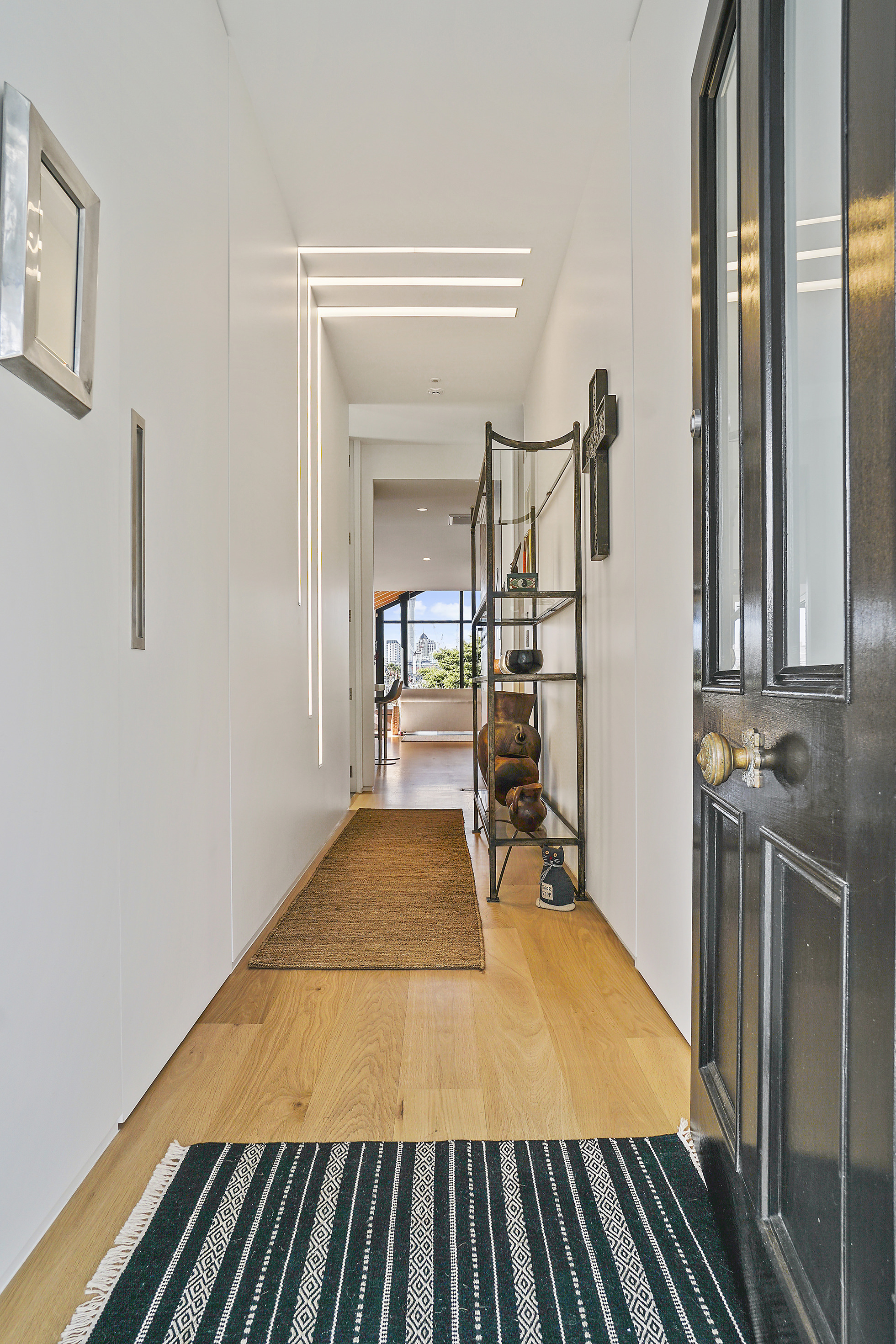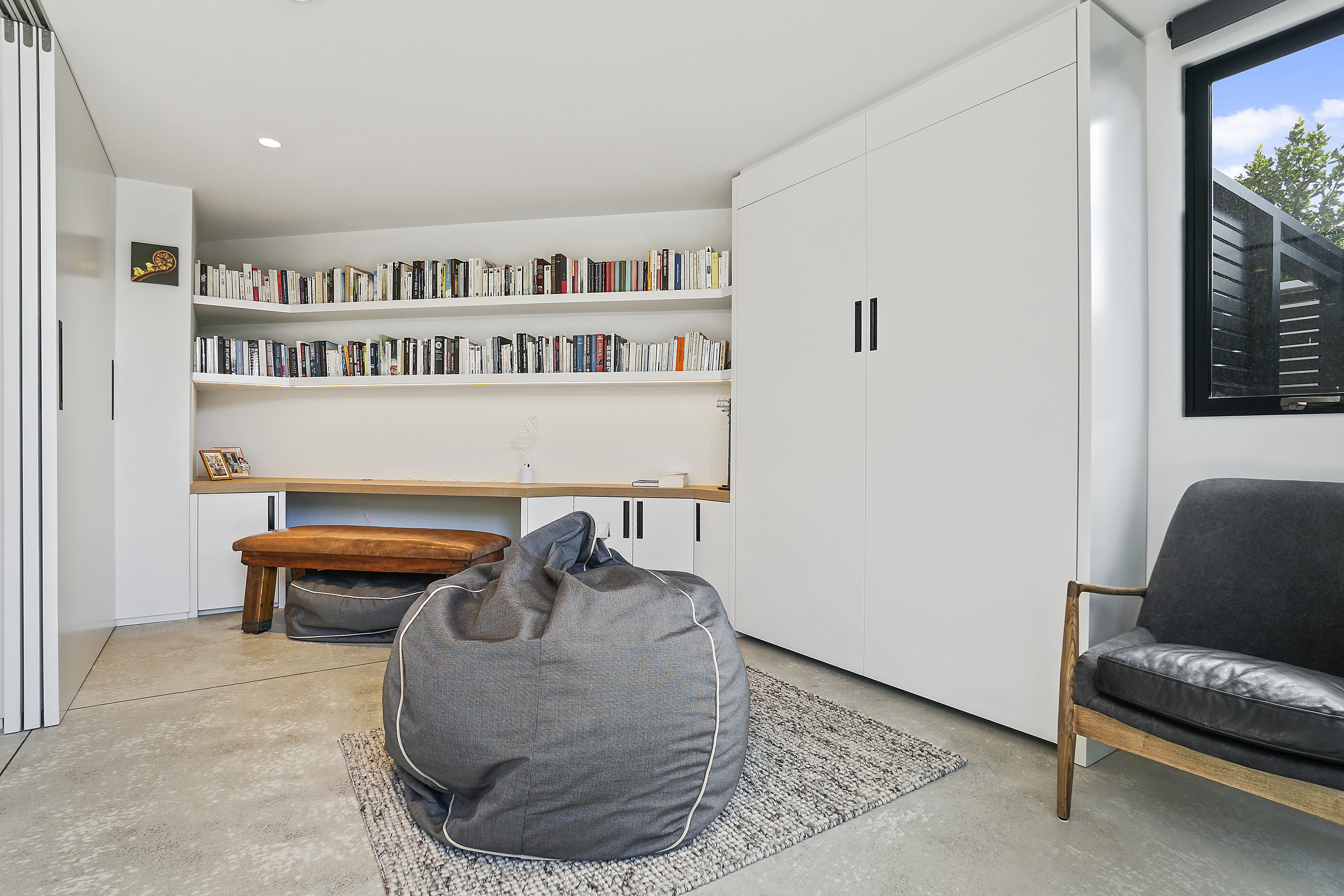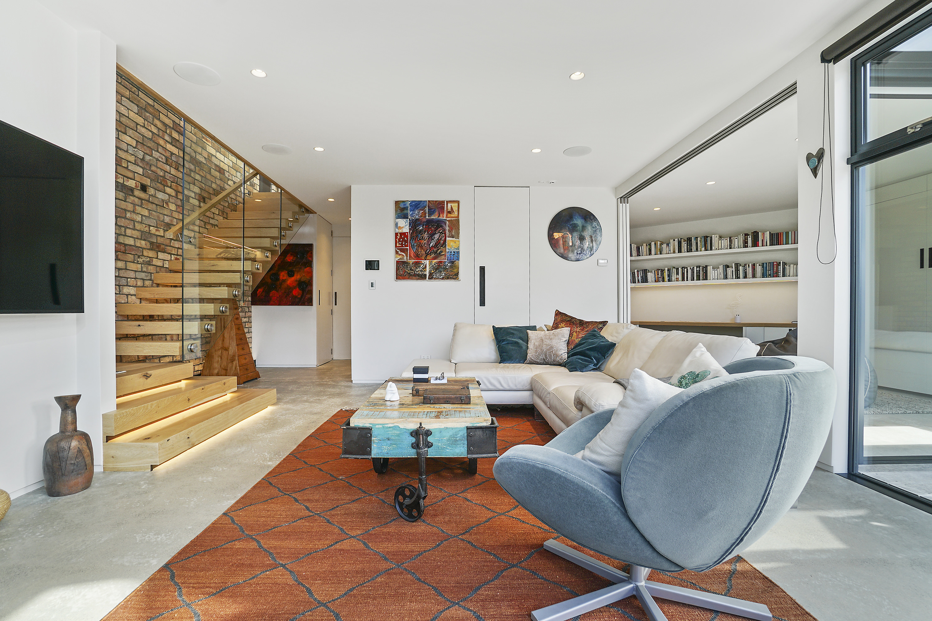 Nestled among heritage cottages in its historic inner-city Auckland suburb, this exceptional renovation delivers a hearty shot of adrenaline. Far from a simple makeover, the four-bedroom, three-bathroom masterpiece is a bold reflection of the owners’ interest in design, art and architecture. The front facade remains in tune with the streetscape. Defined by a black zinc-clad pavilion, the modern extension accommodates luxurious new living and kitchen areas. Natural light, warmth and city views flood in through masses of glass. Glazed sliding doors allow seamless flow to a large deck to the northwest. The existing cottage was reconfigured and renovated to provide new bedrooms and exquisite, extensively tiled bathrooms. Garaging and plenty of storage are neatly tucked away in the newly designed basement. Guests can enjoy their own room on the lower level, along with a separate living area which flows out onto an expansive northfacing deck and lawn. A sculptural black steel spiral staircase artfully links the outdoor living spaces.