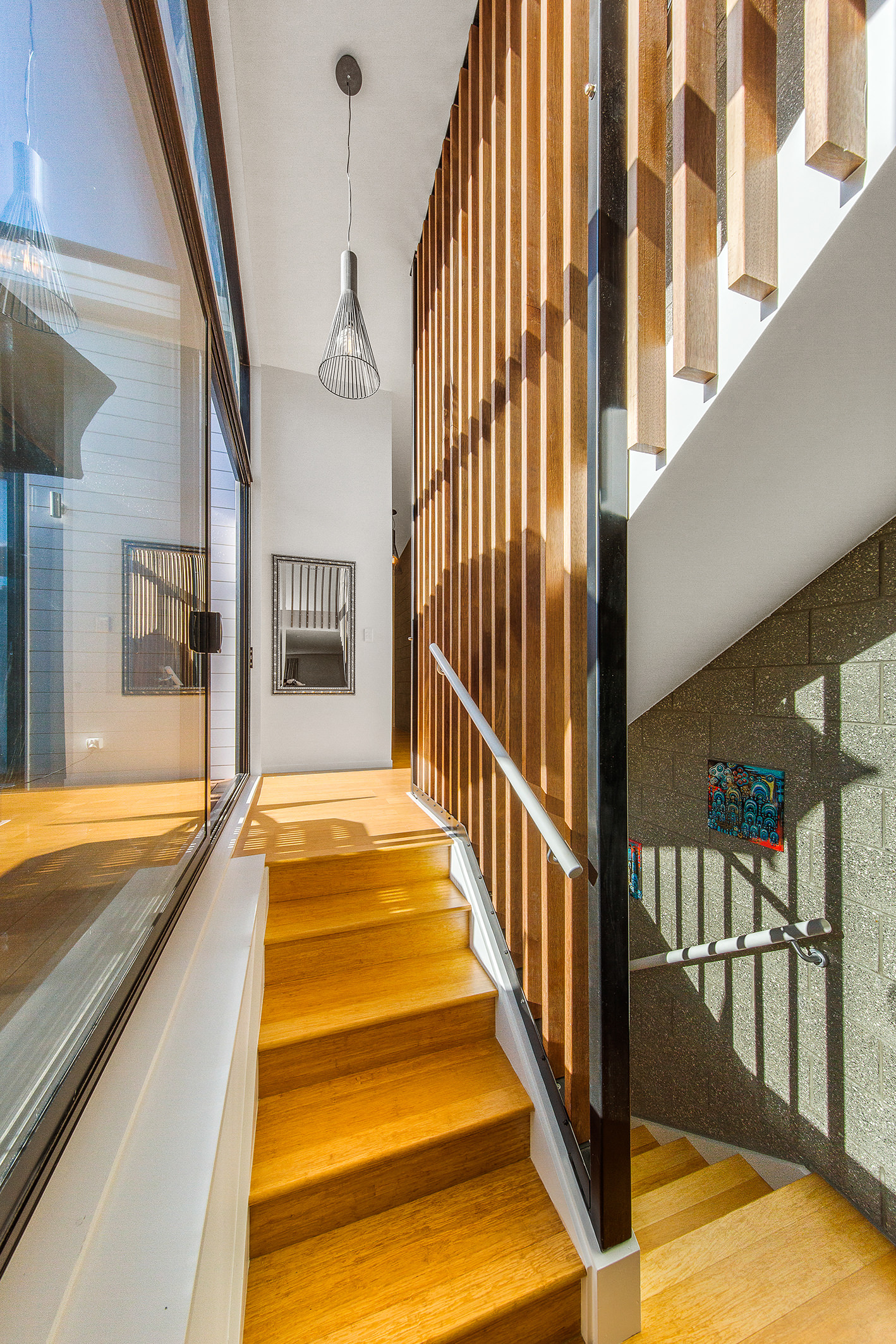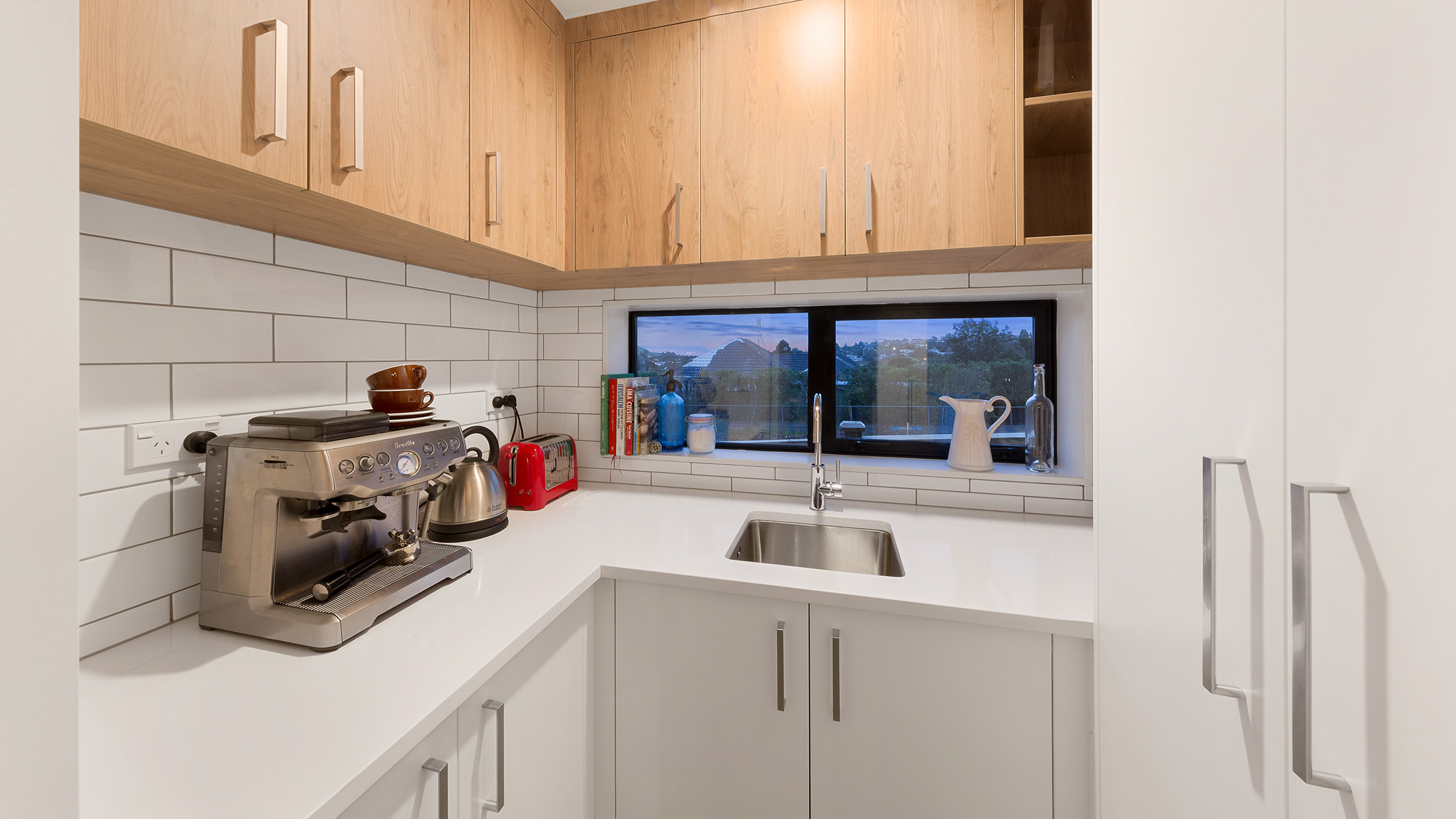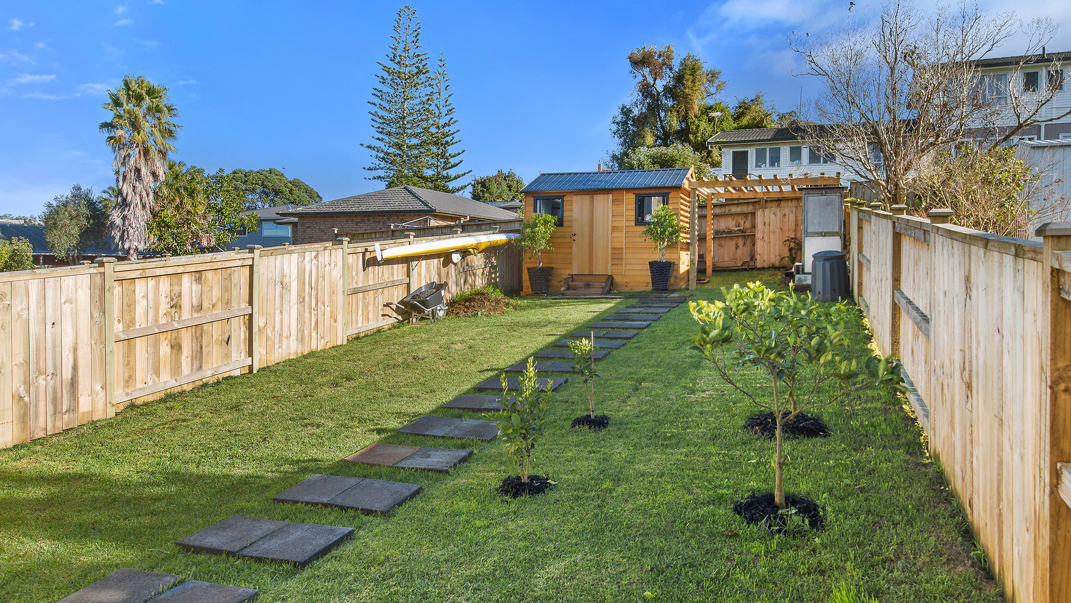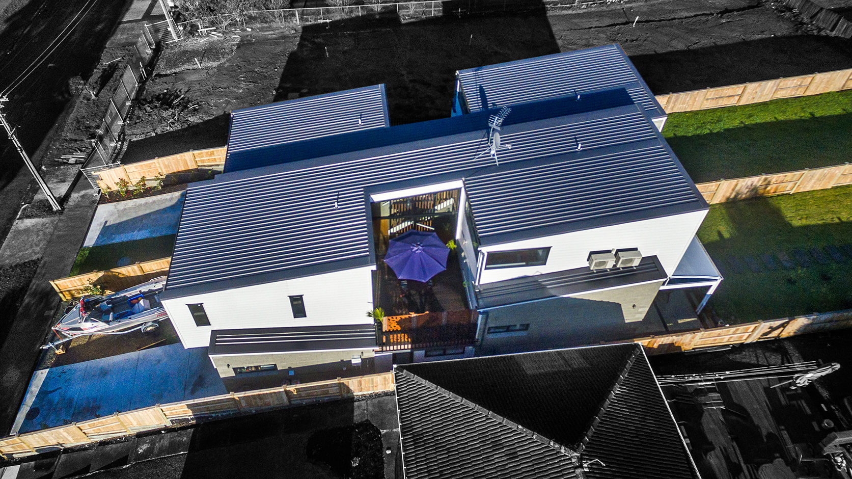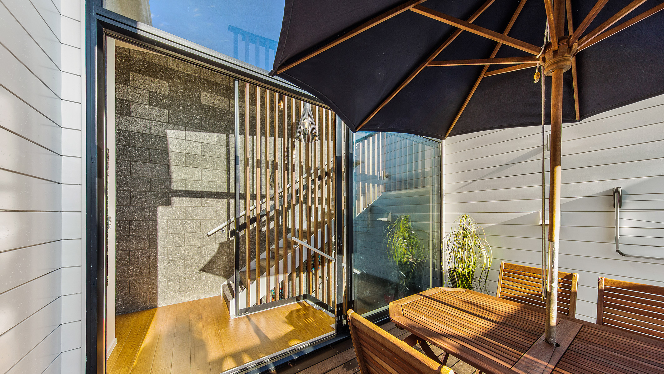 Connected by a concrete spine wall, these modern architecturally designed units are ready to rock in Auckland. The two main box volumes of each home interconnect to create a superb split-level layout. Three bedrooms and three bathrooms promise ease and convenience. Each dwelling mirrors the other. Open-plan living awaits at ground level. Polished concrete is smooth underfoot. Well-selected fixtures and finishes offer modern flair. The kitchen and scullery are designed for entertaining. A glass slider fosters flow to the alfresco patio and large lawn. Heading back into the heart of the home, a feature staircase basks in light from a central gallery. This opens to a private deck that’s sheltered from the elements on three sides. It also serves one of the bedrooms. The second and master bedrooms boast their own private decks with views. The chic master ensuite is a spacious retreat with large grey floor tiles. A wall of intricate white tiles creates a textural backdrop to the bathing area with its open shower and luxurious stand-alone bathtub.