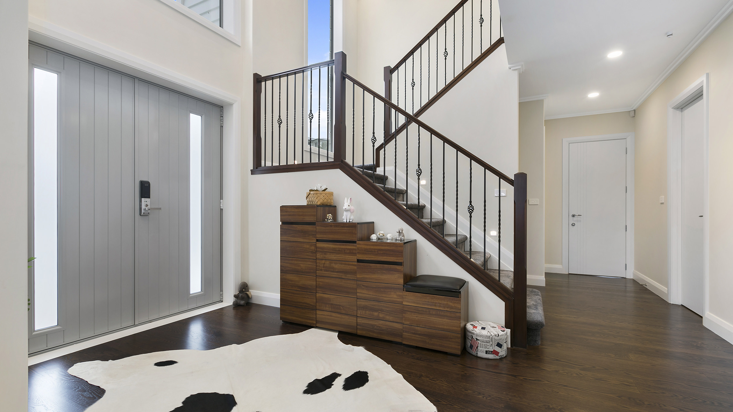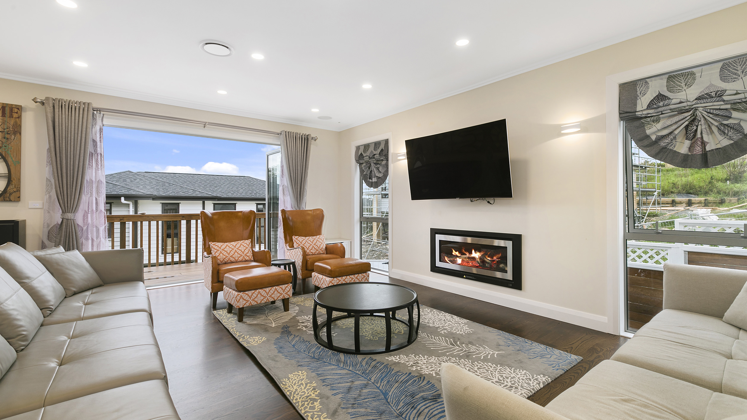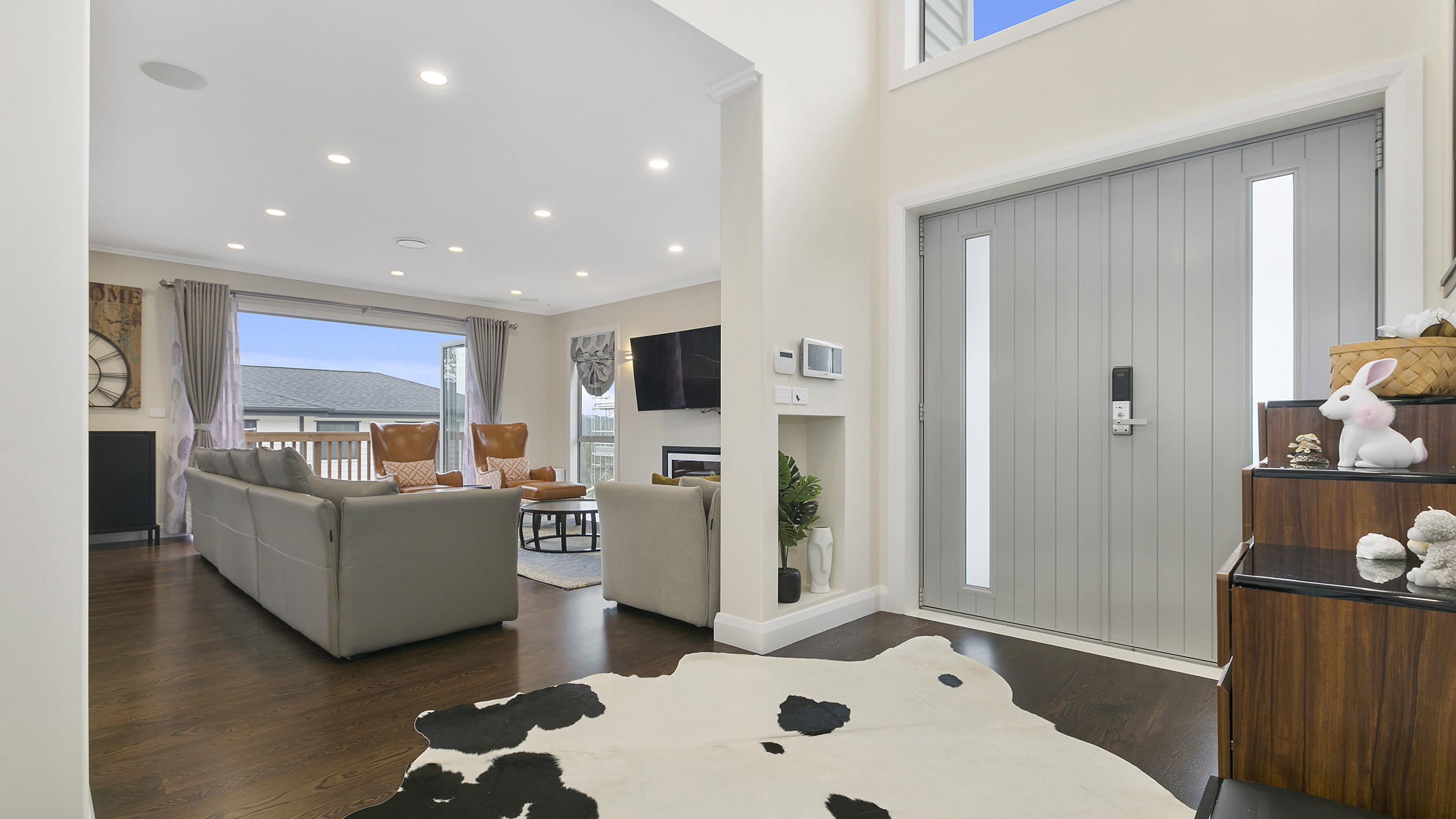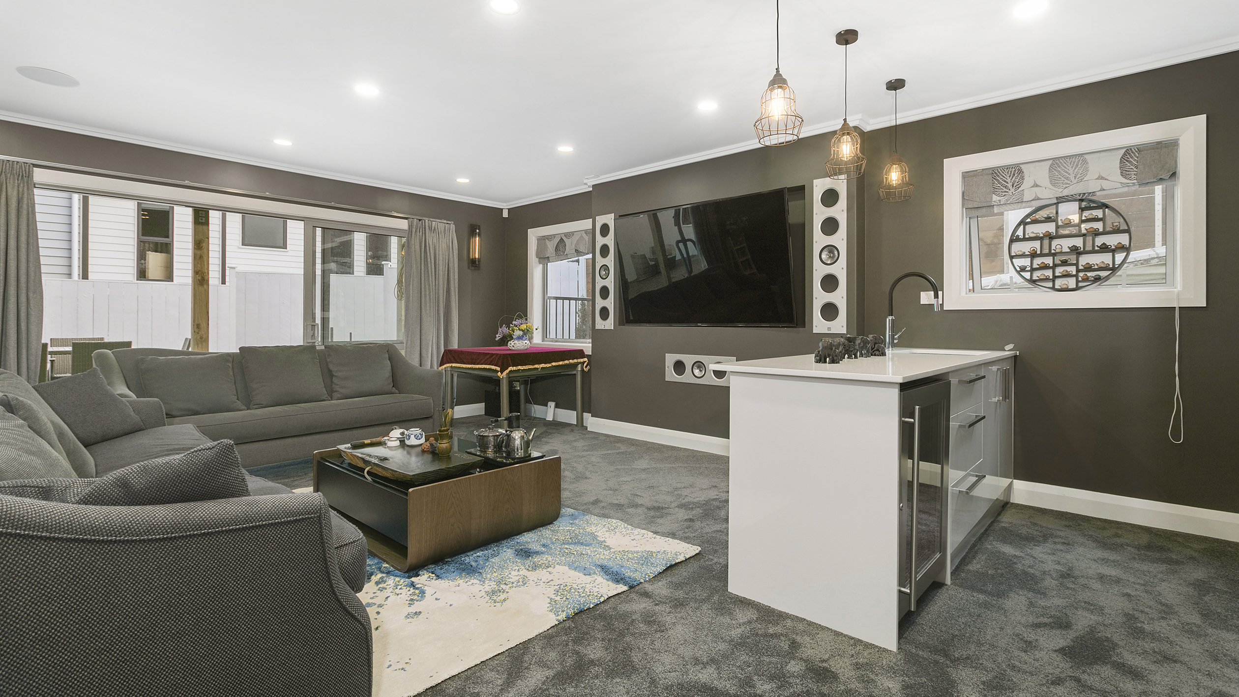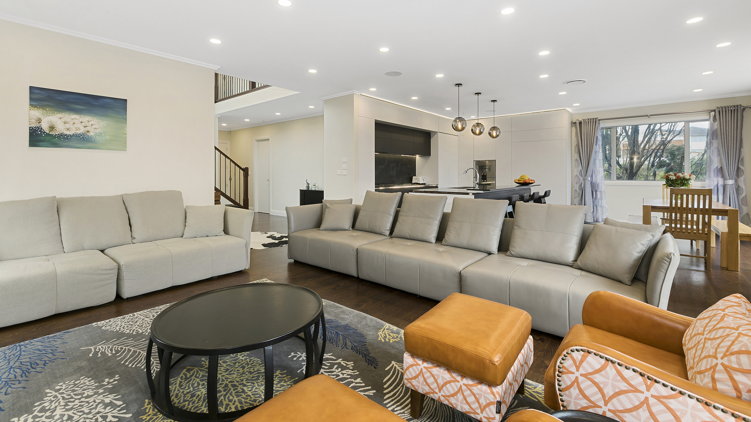 Distinct volumes in crisp weatherboard and exposed stack-bonded brick create striking street appeal on the North Shore. The varied and architecturally appealing exterior speaks of spacious interiors and one look inside delivers the goods. The double-height entrance foyer contains an eye-catching turned staircase. A generous 389sqm floor plan serves up five bedrooms, four bathrooms and three living spaces over three levels. With modern styling and high-spec fixtures and finishes throughout, the interior shows a keen eye for quality and design. The grey and white kitchen is the fine focal point of everyday living in the open-plan area. Handles and appliances are integrated into the cabinetry ensuring clean lines. Clever lighting design subtly enhances ambience. A secondary work kitchen serves as a further space for benchtop appliances. Family fun and entertainment await outside, where there is ample decking, big enough for kids to ride their bikes on, a fortress playhouse and a putting green. This home suits its owners to a tee.