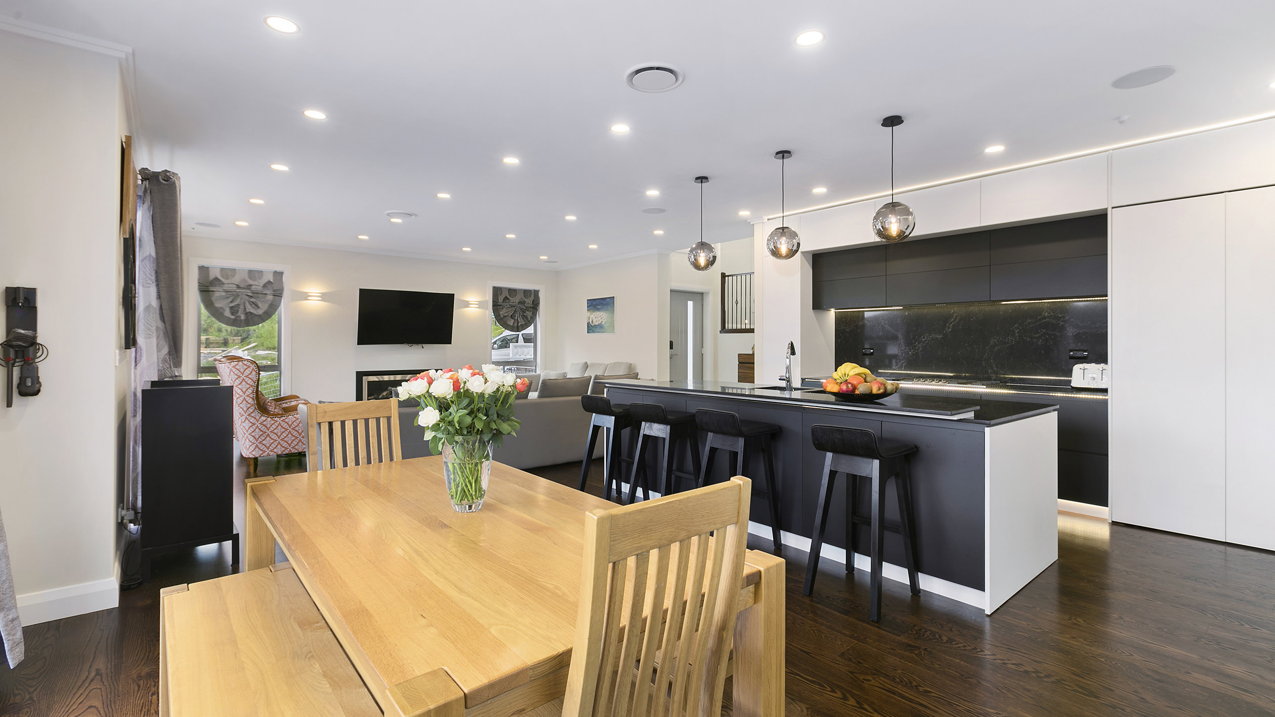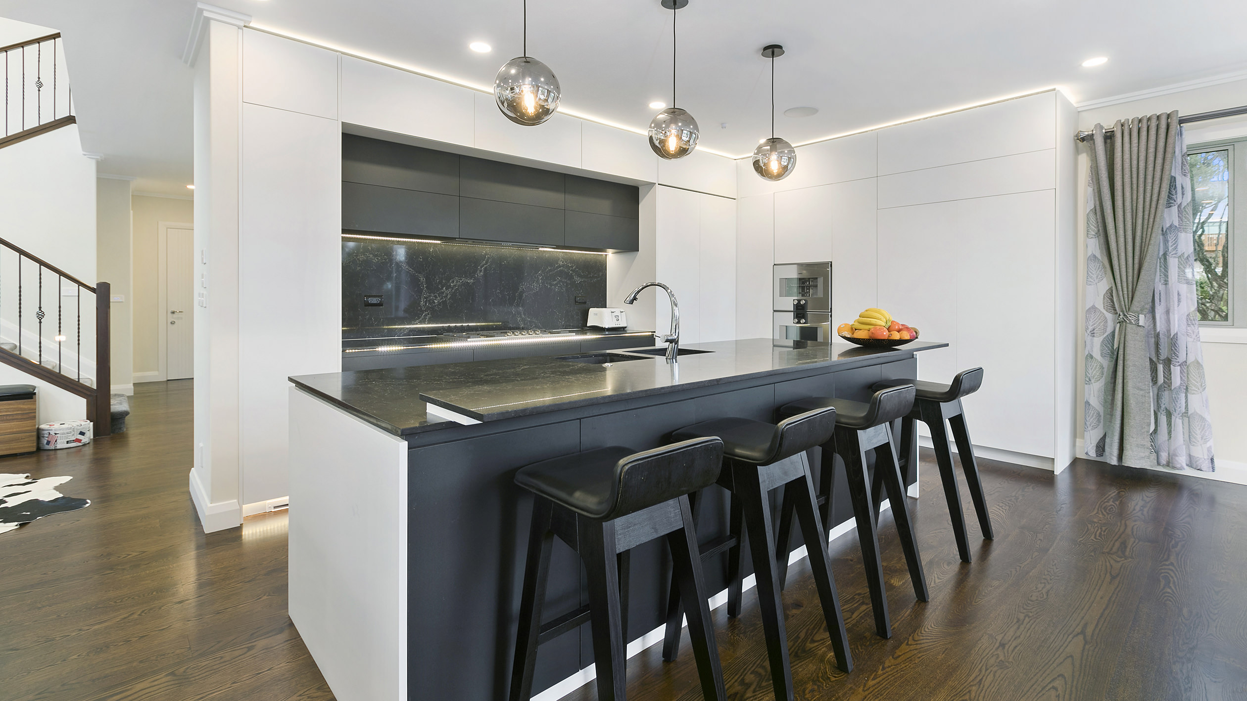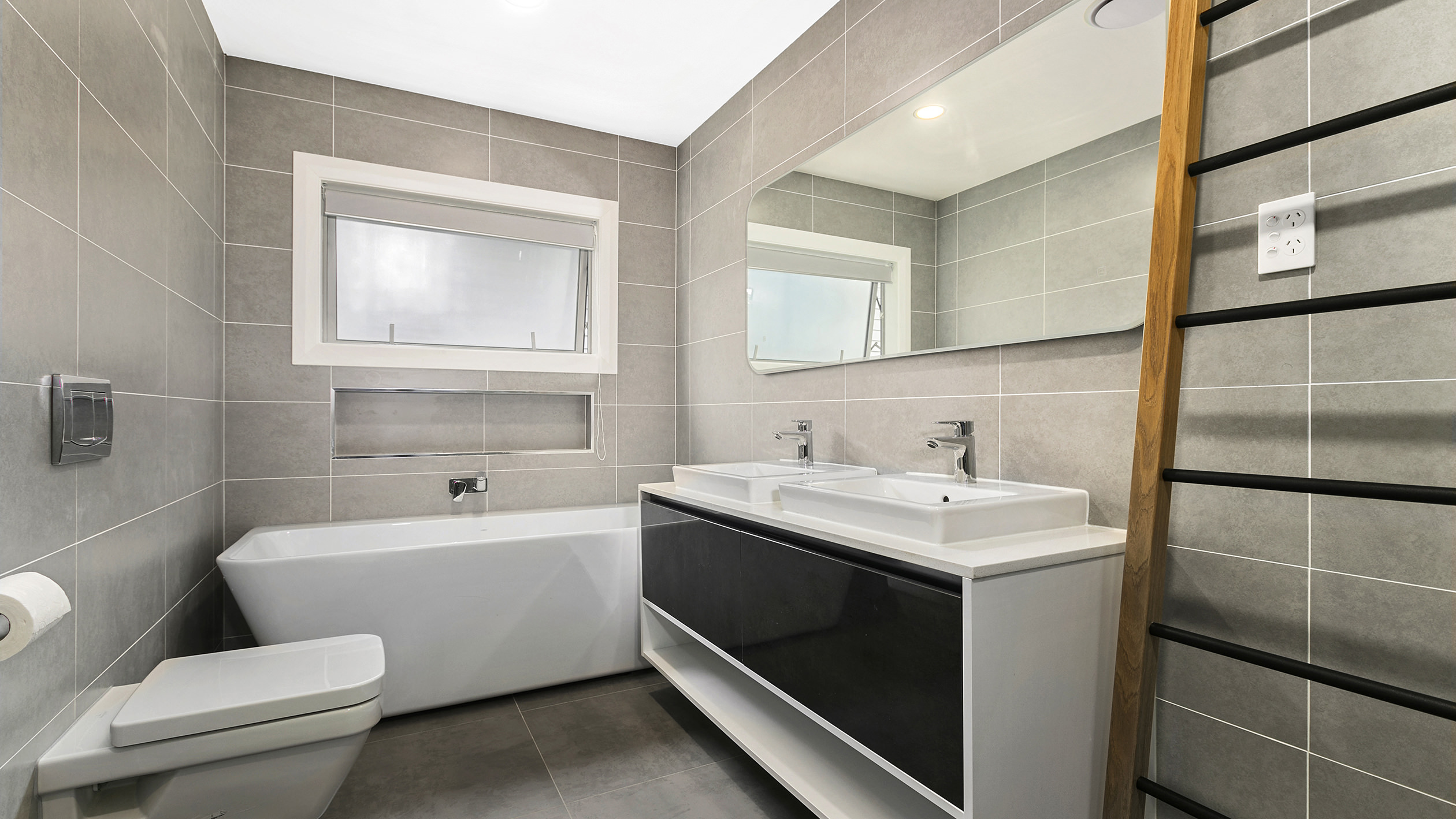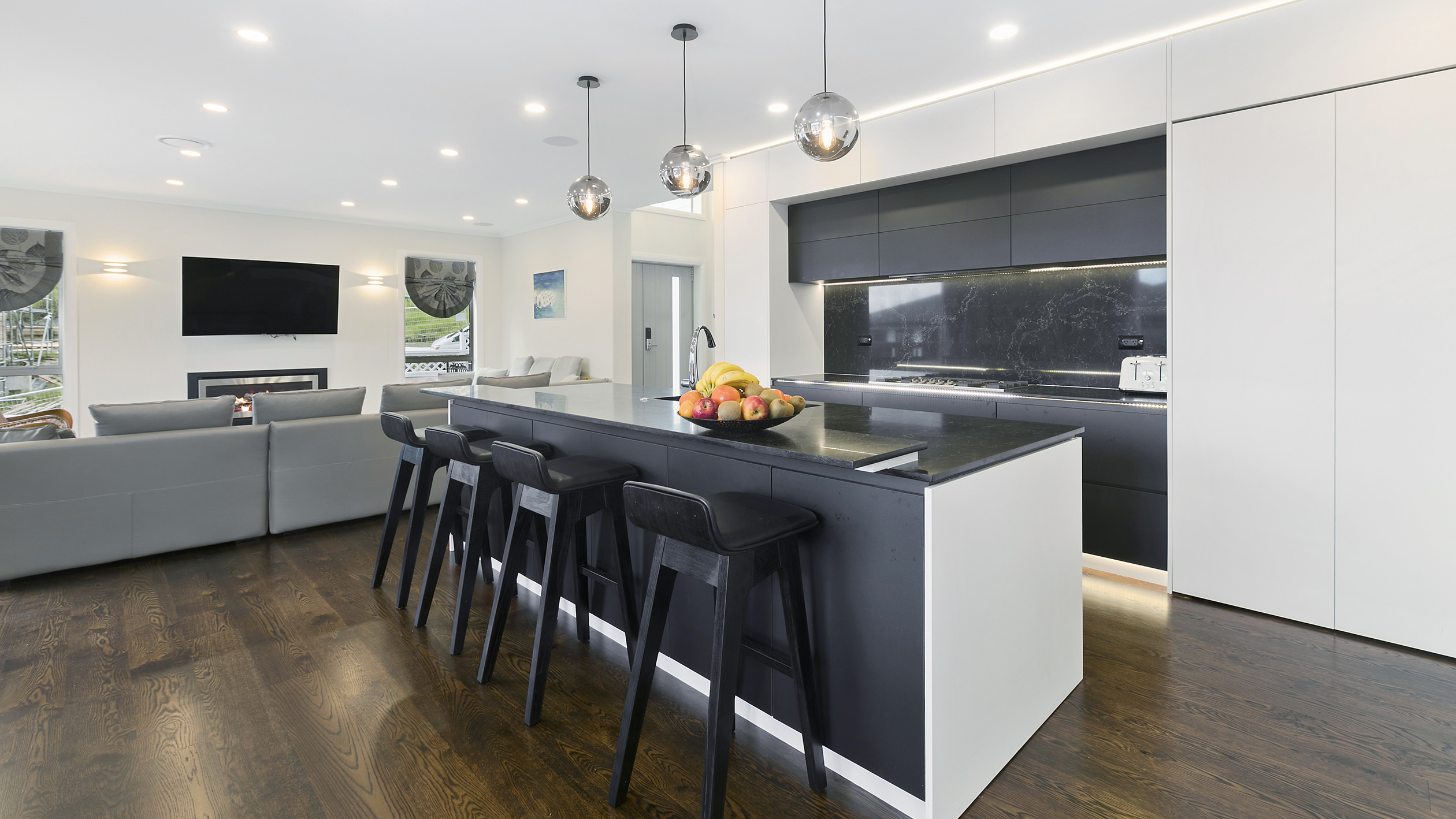 Distinct volumes in crisp weatherboard and exposed stack-bonded brick create striking street appeal on the North Shore. The varied and architecturally appealing exterior speaks of spacious interiors and one look inside delivers the goods. The double-height entrance foyer contains an eye-catching turned staircase. A generous 389sqm floor plan serves up five bedrooms, four bathrooms and three living spaces over three levels. With modern styling and high-spec fixtures and finishes throughout, the interior shows a keen eye for quality and design. The grey and white kitchen is the fine focal point of everyday living in the open-plan area. Handles and appliances are integrated into the cabinetry ensuring clean lines. Clever lighting design subtly enhances ambience. A secondary work kitchen serves as a further space for benchtop appliances. Family fun and entertainment await outside, where there is ample decking, big enough for kids to ride their bikes on, a fortress playhouse and a putting green. This home suits its owners to a tee.