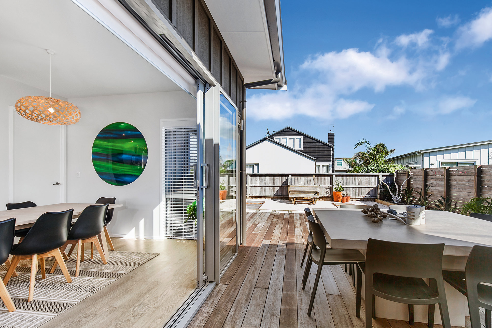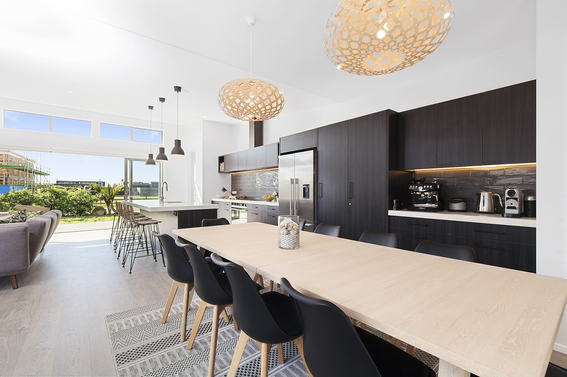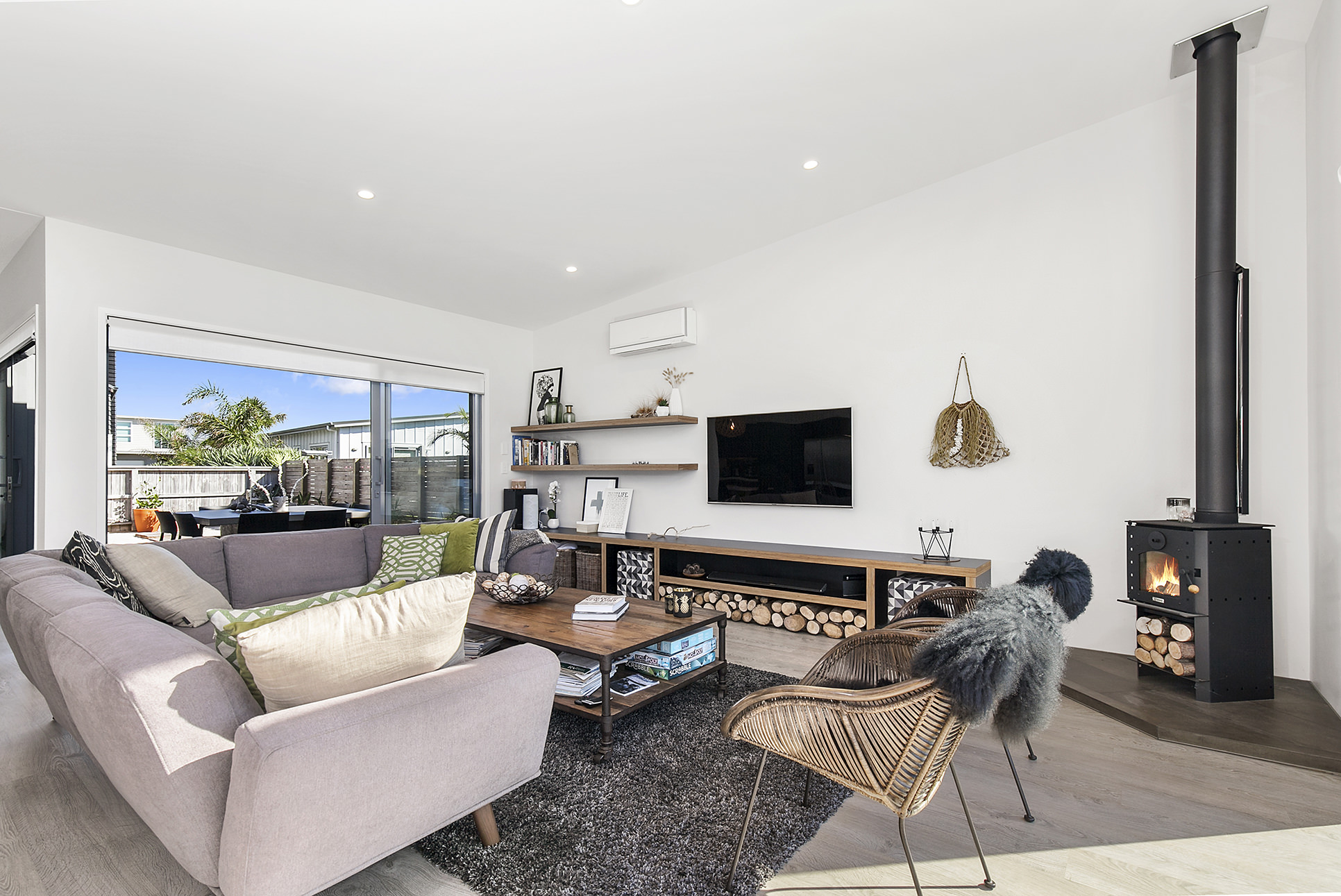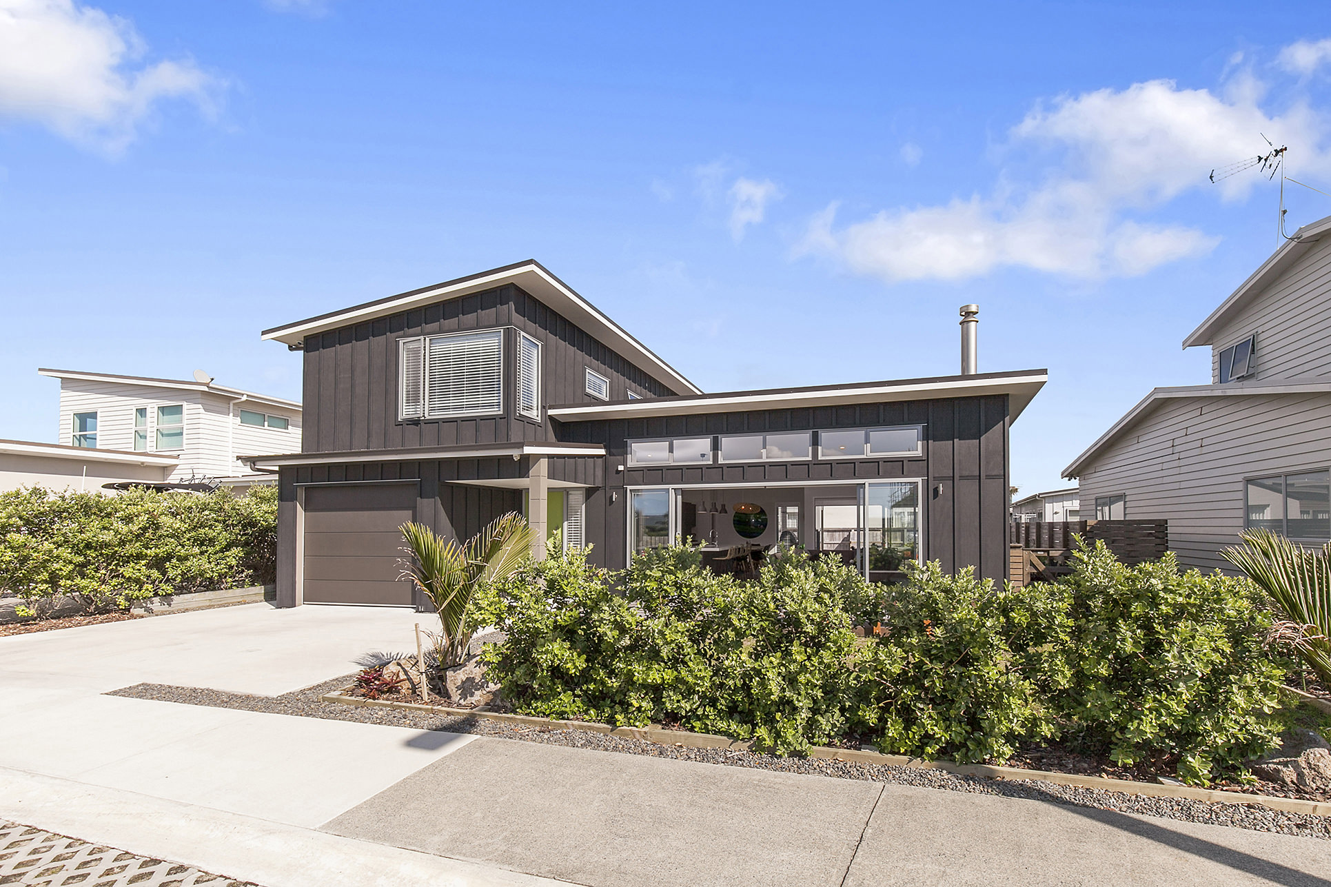 Designed for family fun with potential for short-term rental, this beach house has a breezy relaxed feel and plenty of smart user-friendly features. Gentle contemporary lines, board-and-batten cladding and plenty of glass characterise the exterior. Indoor-outdoor flow to east and west alfresco spaces cleverly dodges a neighbouring house to the north. Spacious yet compact, this home boasts a generous kitchen in its open-plan living area, fostering family interaction. A raking ceiling provides drama. Clerestory windows let in light and create excellent passive ventilation in summer. A wood-burning fire ensures winter stays are just as enjoyable. Four bedrooms and three bathrooms include two master-style retreats with ensuites and walk-in wardrobes. Space for suitcases is a plus for visitors. The downstairs bunk room sleeps four while the fourth bedroom is a double. Key arrangements allow the home to be rented out in one-to-four-bedroom confi gurations, minimising housekeeping. They’ve thought of everything.