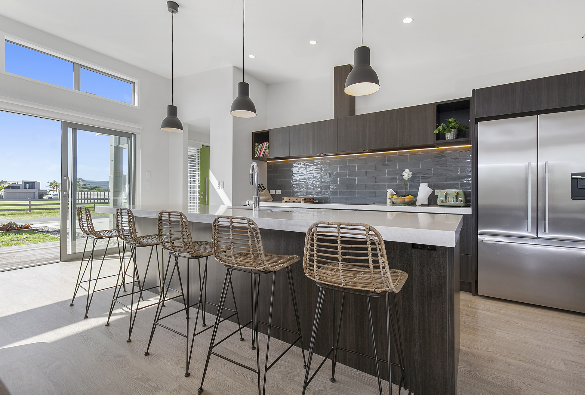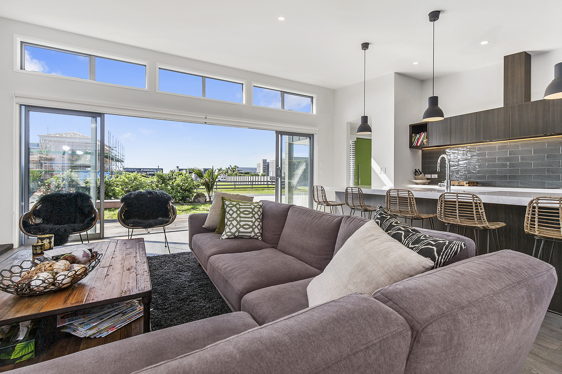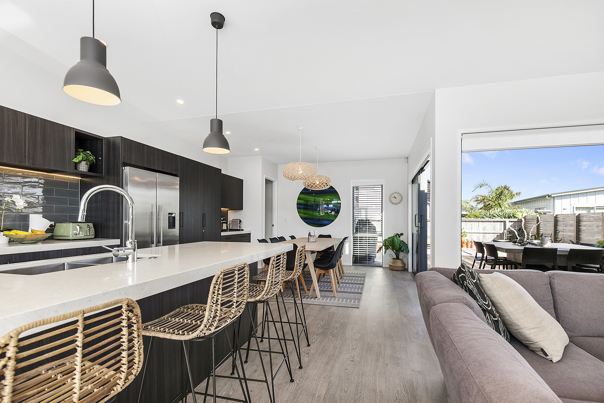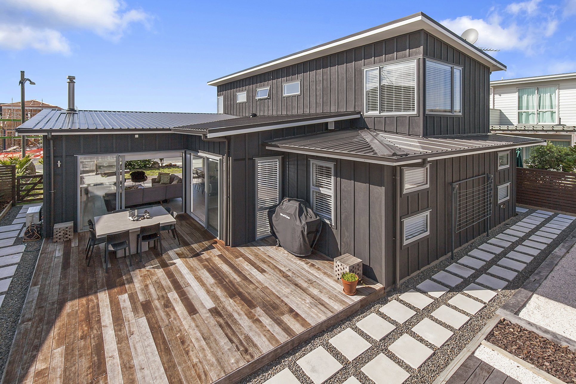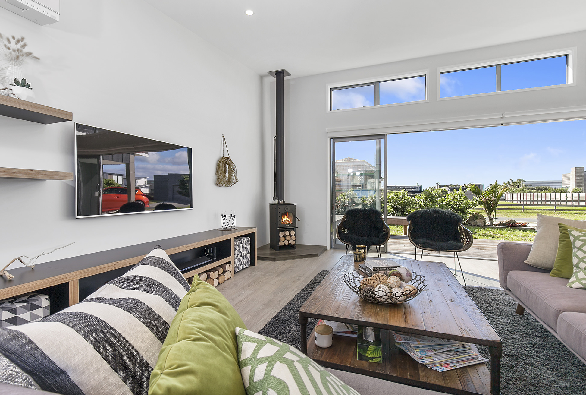 Designed for family fun with potential for short-term rental, this beach house has a breezy relaxed feel and plenty of smart user-friendly features. Gentle contemporary lines, board-and-batten cladding and plenty of glass characterise the exterior. Indoor-outdoor flow to east and west alfresco spaces cleverly dodges a neighbouring house to the north. Spacious yet compact, this home boasts a generous kitchen in its open-plan living area, fostering family interaction. A raking ceiling provides drama. Clerestory windows let in light and create excellent passive ventilation in summer. A wood-burning fire ensures winter stays are just as enjoyable. Four bedrooms and three bathrooms include two master-style retreats with ensuites and walk-in wardrobes. Space for suitcases is a plus for visitors. The downstairs bunk room sleeps four while the fourth bedroom is a double. Key arrangements allow the home to be rented out in one-to-four-bedroom confi gurations, minimising housekeeping. They’ve thought of everything.