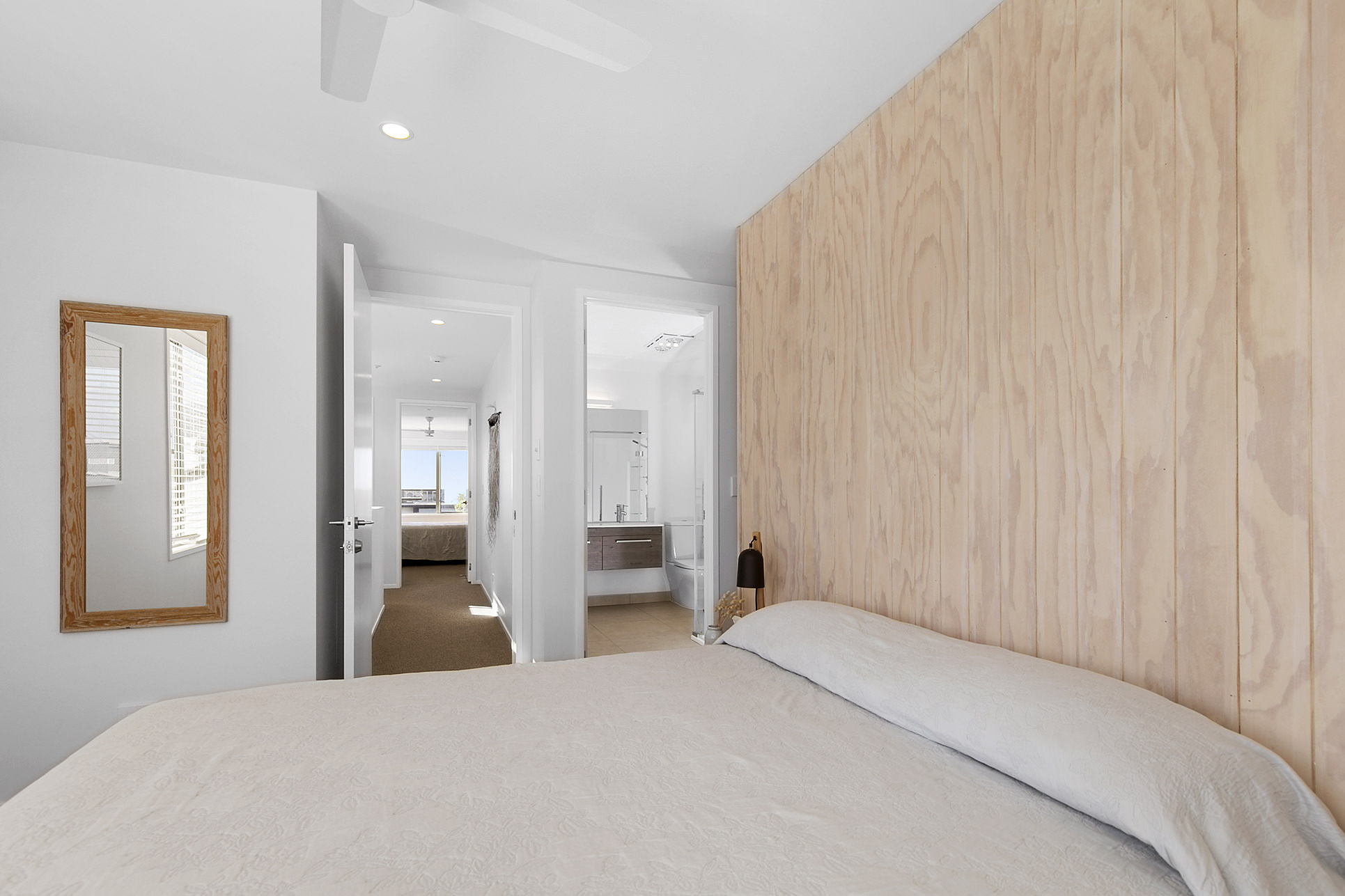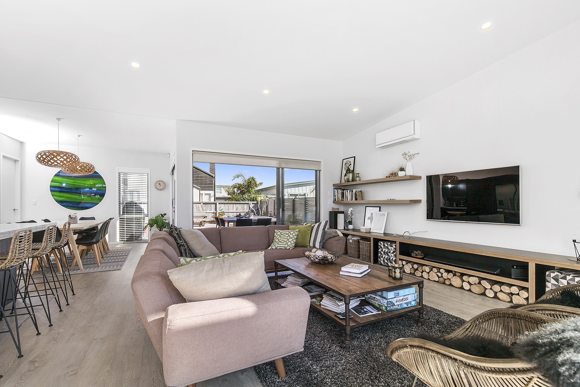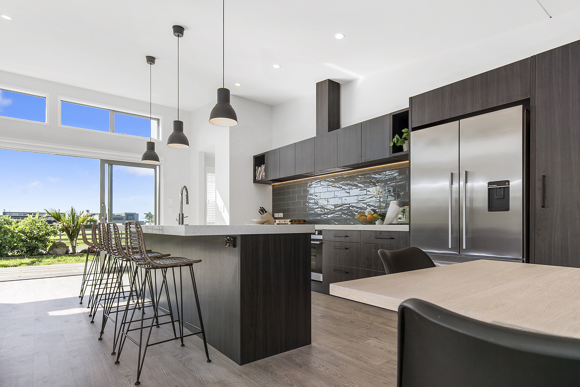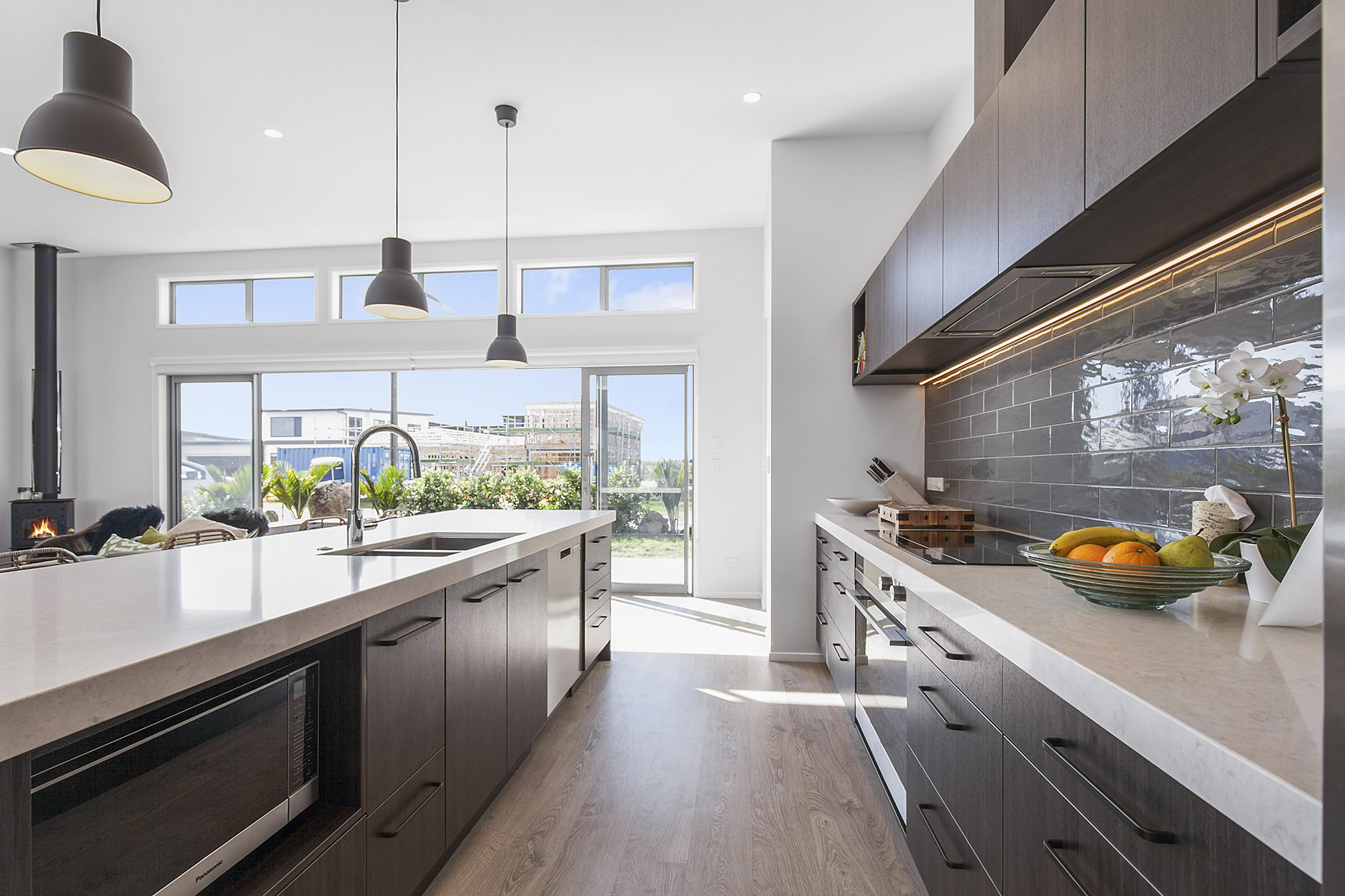 Designed for family fun with potential for short-term rental, this beach house has a breezy relaxed feel and plenty of smart user-friendly features. Gentle contemporary lines, board-and-batten cladding and plenty of glass characterise the exterior. Indoor-outdoor flow to east and west alfresco spaces cleverly dodges a neighbouring house to the north. Spacious yet compact, this home boasts a generous kitchen in its open-plan living area, fostering family interaction. A raking ceiling provides drama. Clerestory windows let in light and create excellent passive ventilation in summer. A wood-burning fire ensures winter stays are just as enjoyable. Four bedrooms and three bathrooms include two master-style retreats with ensuites and walk-in wardrobes. Space for suitcases is a plus for visitors. The downstairs bunk room sleeps four while the fourth bedroom is a double. Key arrangements allow the home to be rented out in one-to-four-bedroom confi gurations, minimising housekeeping. They’ve thought of everything.