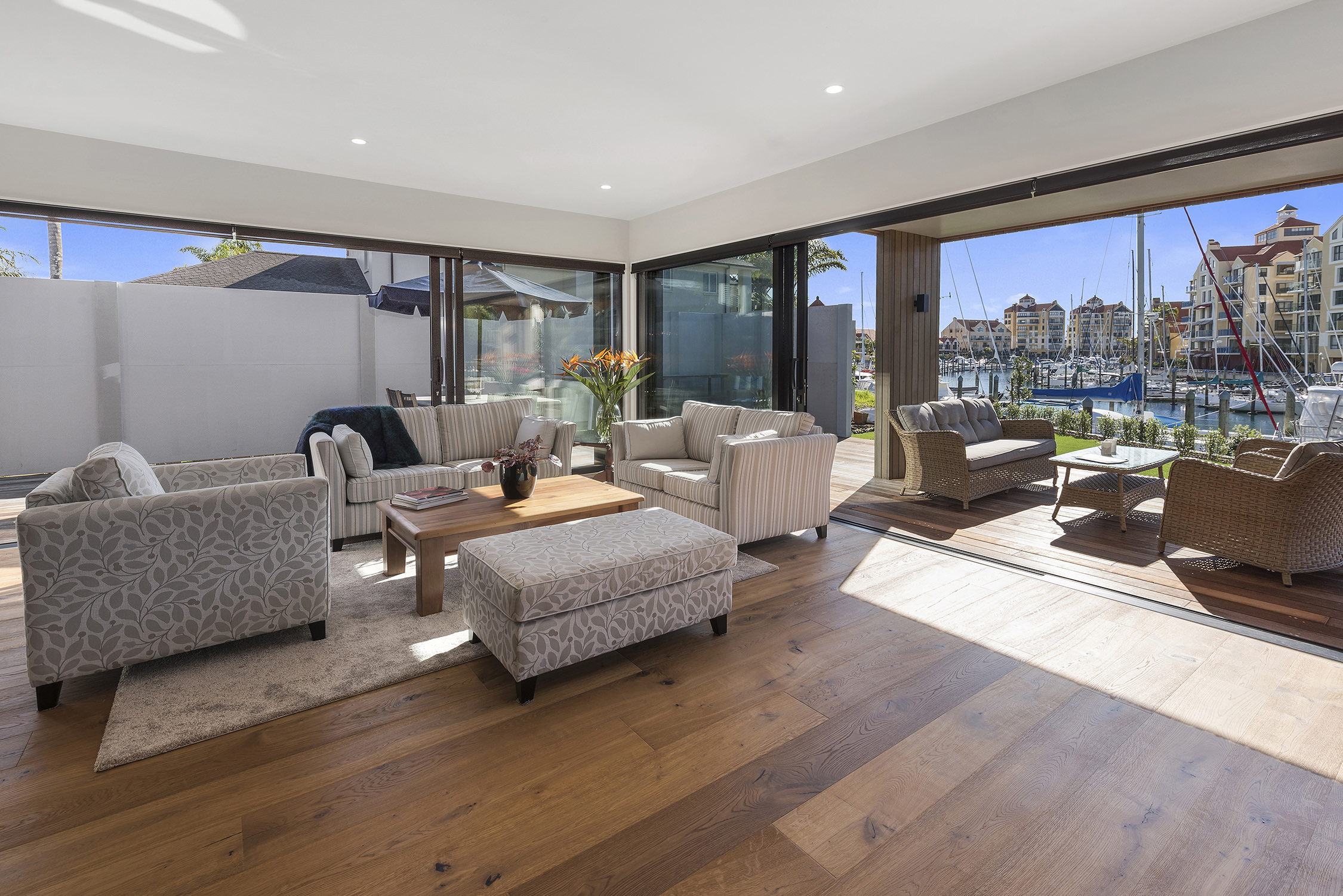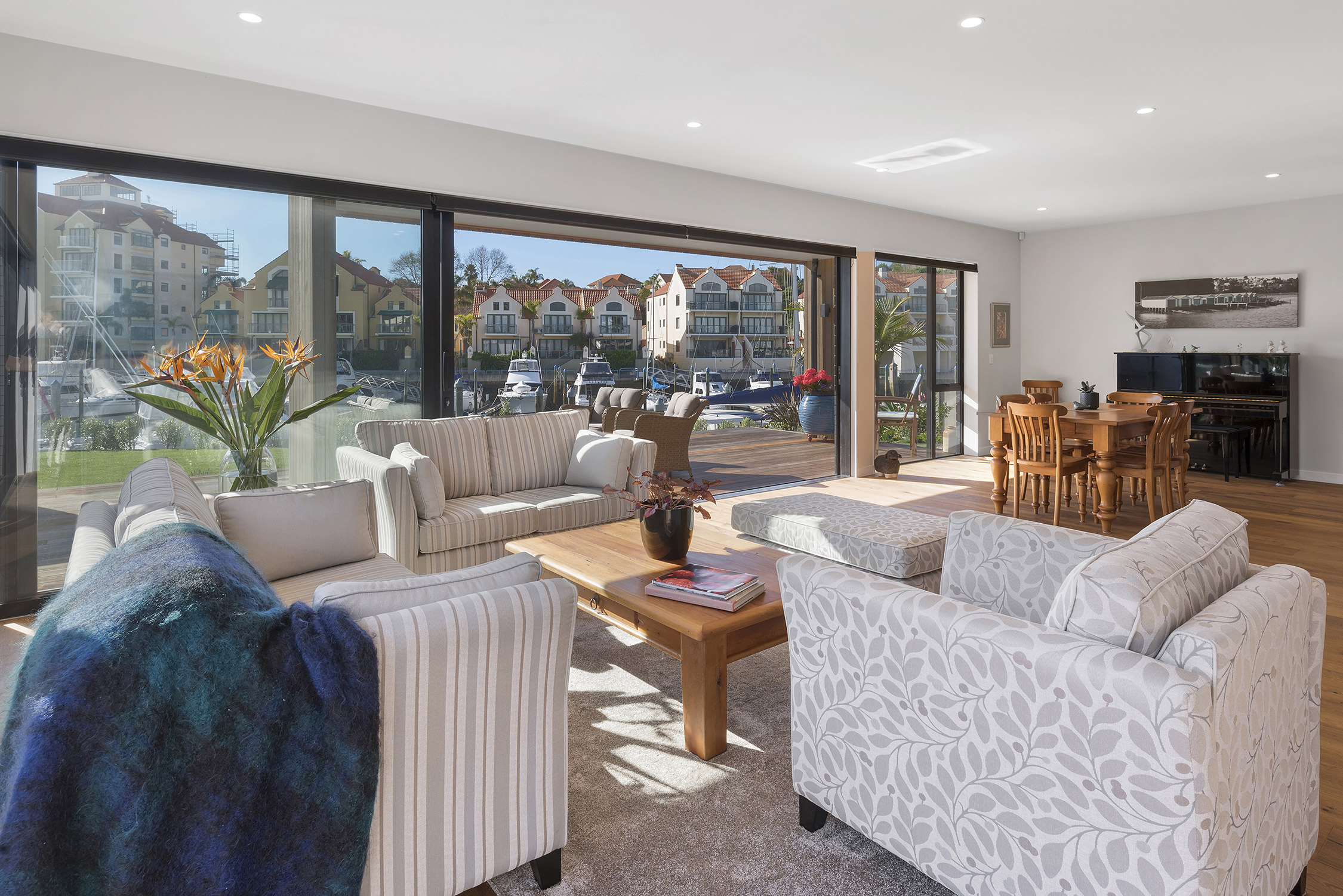 Capturing the essence of a stunning setting, this Whangaparaoa home exudes quality and refinement. The substantial 311sqm layout embraces its canal outlook through swathes of glass. Generous alfresco living basks in all-day sun and serenity. The entrance opens out to a spacious open-plan living area on the lower level. A fireplace and separate lounge create cosy retreats while the modern kitchen with large pantry is designed for entertaining. Wood floors sit well alongside the exterior decks. The guest suite is a home away from home for visitors. There’s also a separate toilet and a walkthrough laundry on the ground floor, plus a garage with plenty of storage and workspace for handiwork. Upstairs, a large office and two generous bedrooms await, served by a well-appointed bathroom. The master suite is the epitome of comfort, with an elegant ensuite and a private deck with uninterrupted views. A feature roof overhang doubles as a cover for the upper deck, which in turn shelters the lower. Cedar weatherboards suit this home down to the ground.