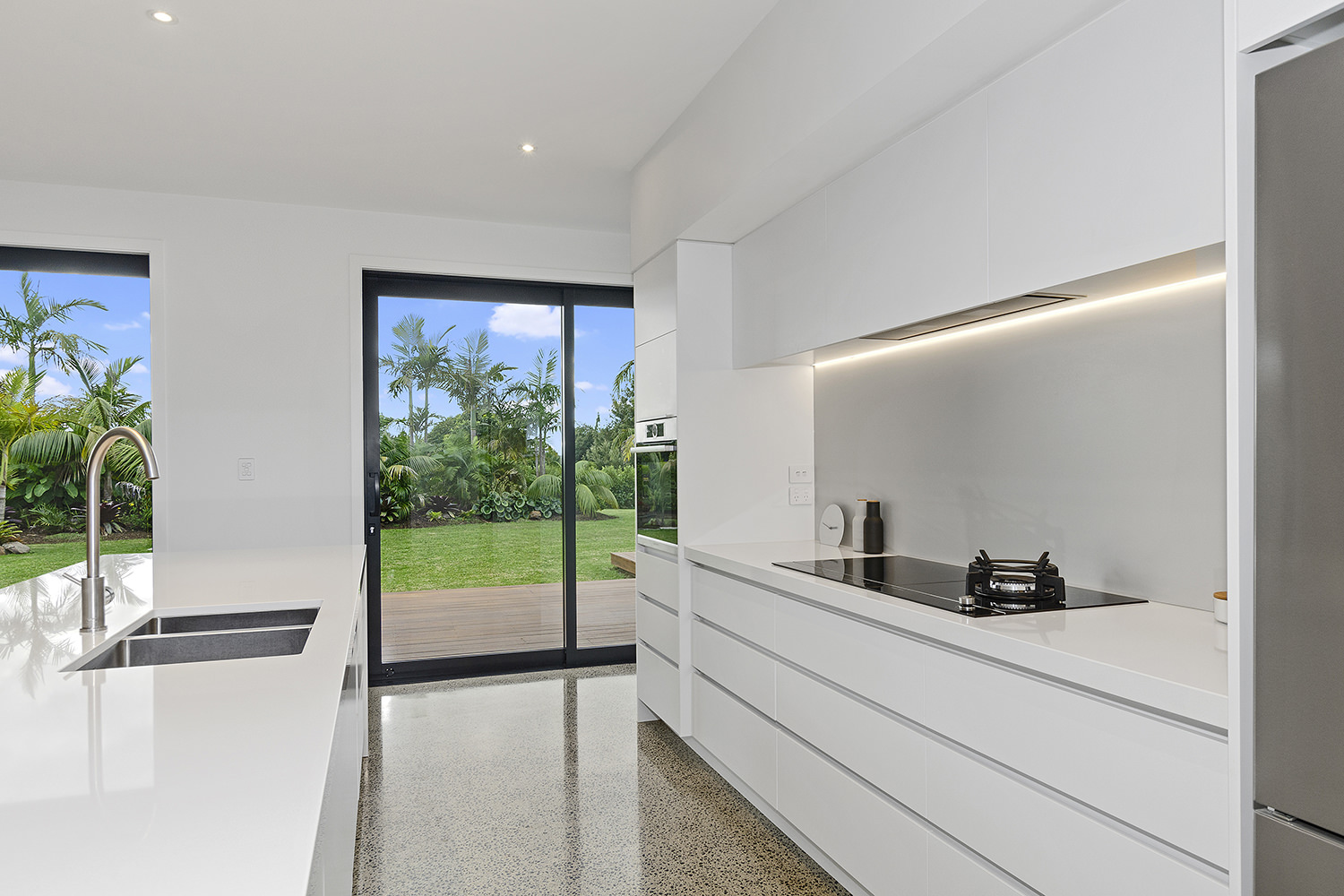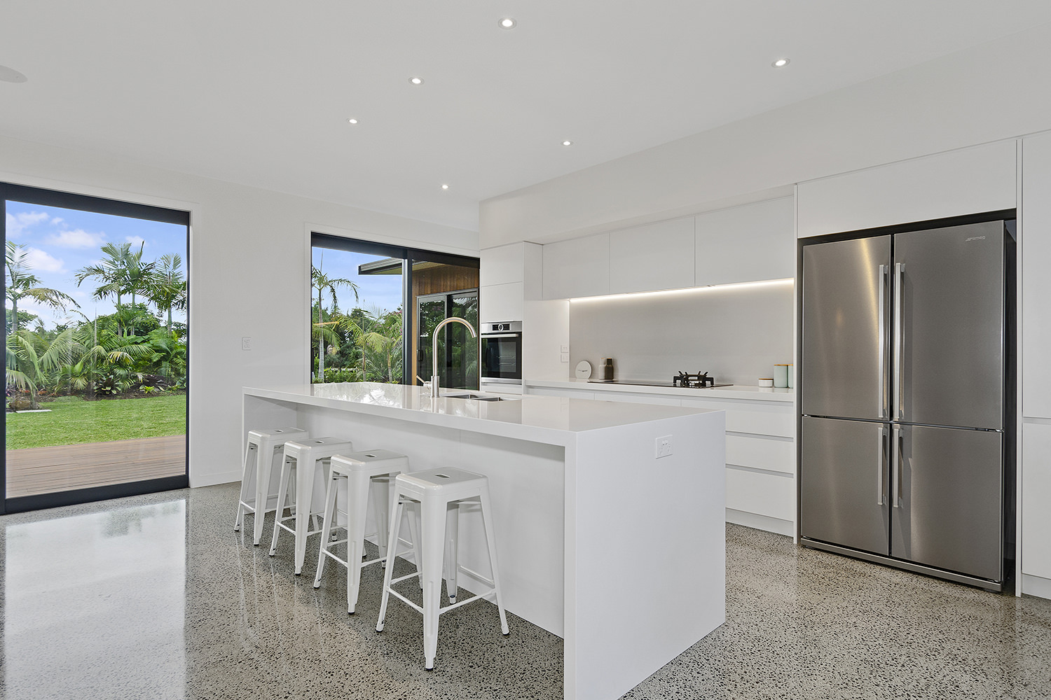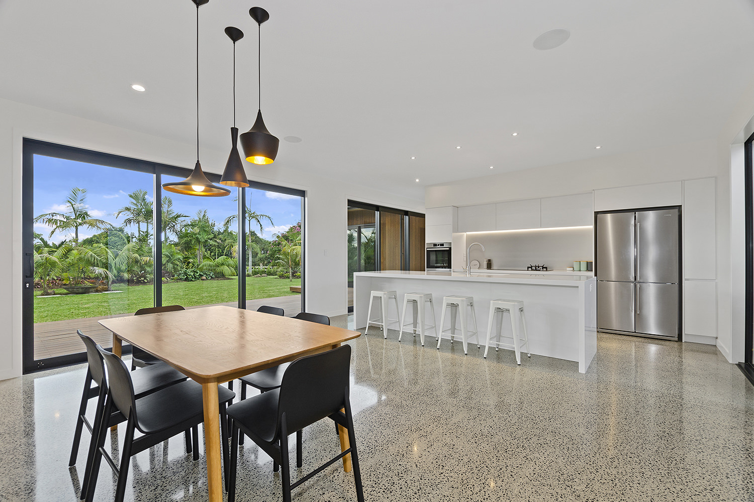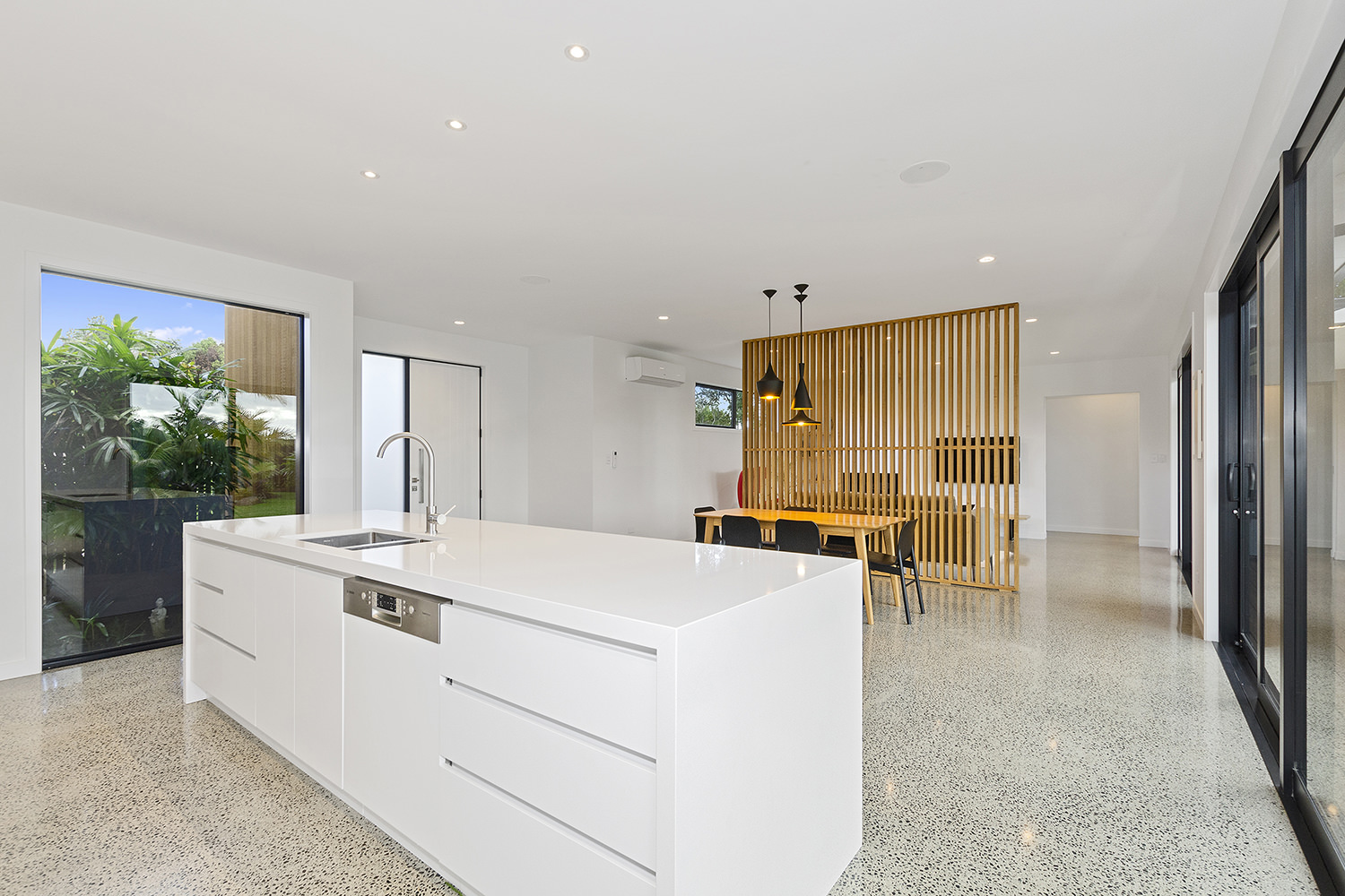 Clad in a warm golden wood, this Northland home sits in harmony with its surrounds. A real nature lover, its large windows and glass sliding doors bring the outdoors in and foster flow to exterior living options. Extensive decks to the north bask in all-day sun. Polished concrete provides a durable and functional stage for family life and entertaining in the open-plan area. The hard-working material laps up solar gain, taking hold of the heat and releasing it into the evening. A wood screen provides subtle separation between family and living spaces. The theatre room and bedrooms are carpeted for extra comfort. The scullery and laundry are discreetly tucked away between the kitchen and garage. The master with ensuite and studio reside in one wing, while two further bedrooms and a modern bathroom are located in the other. The 252sqm layout ensures good separation for busy family life. A freestanding bathtub beckons for luxurious soaking with that open-air feel. A huge picture window frames a lush garden view.