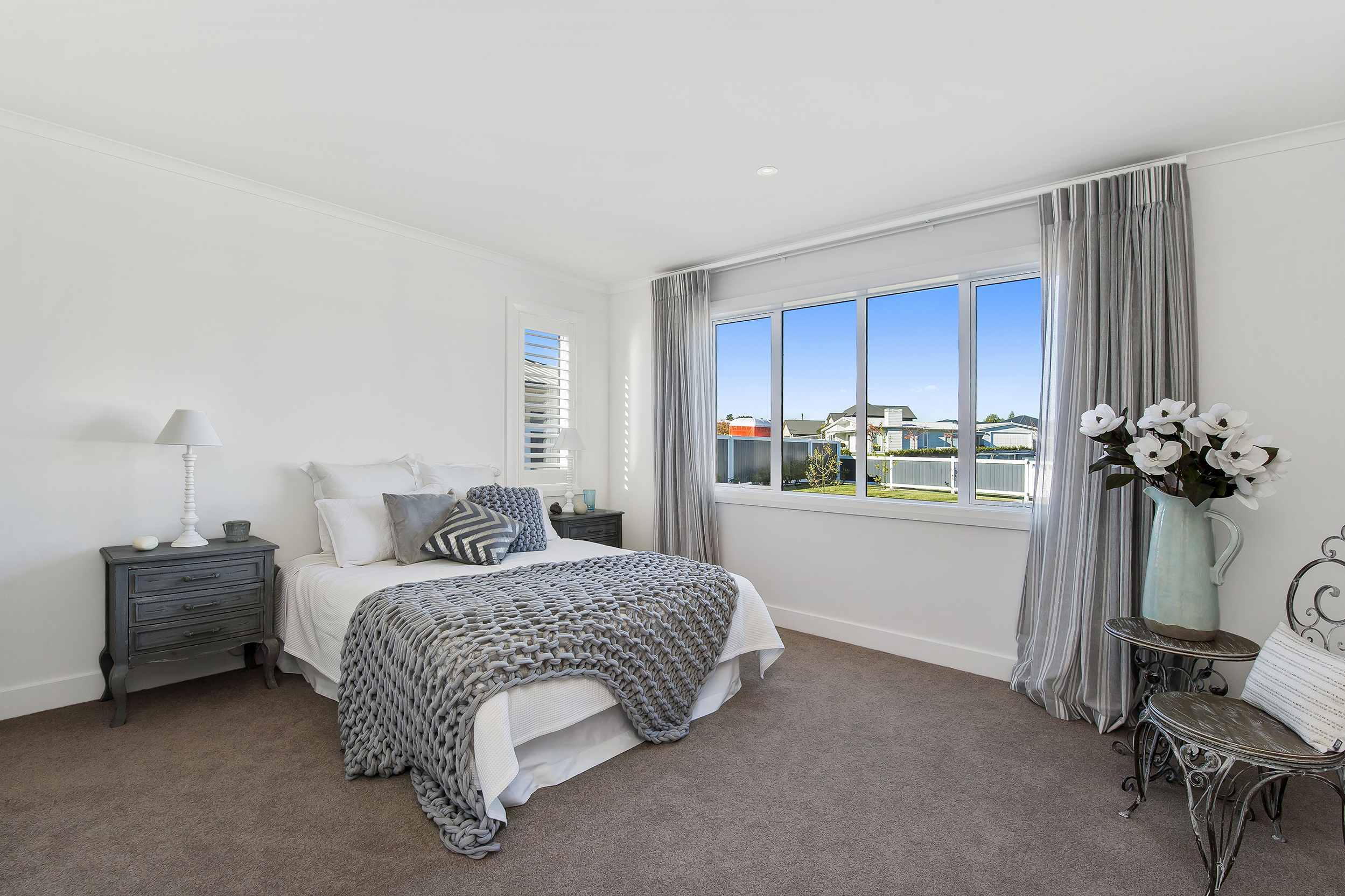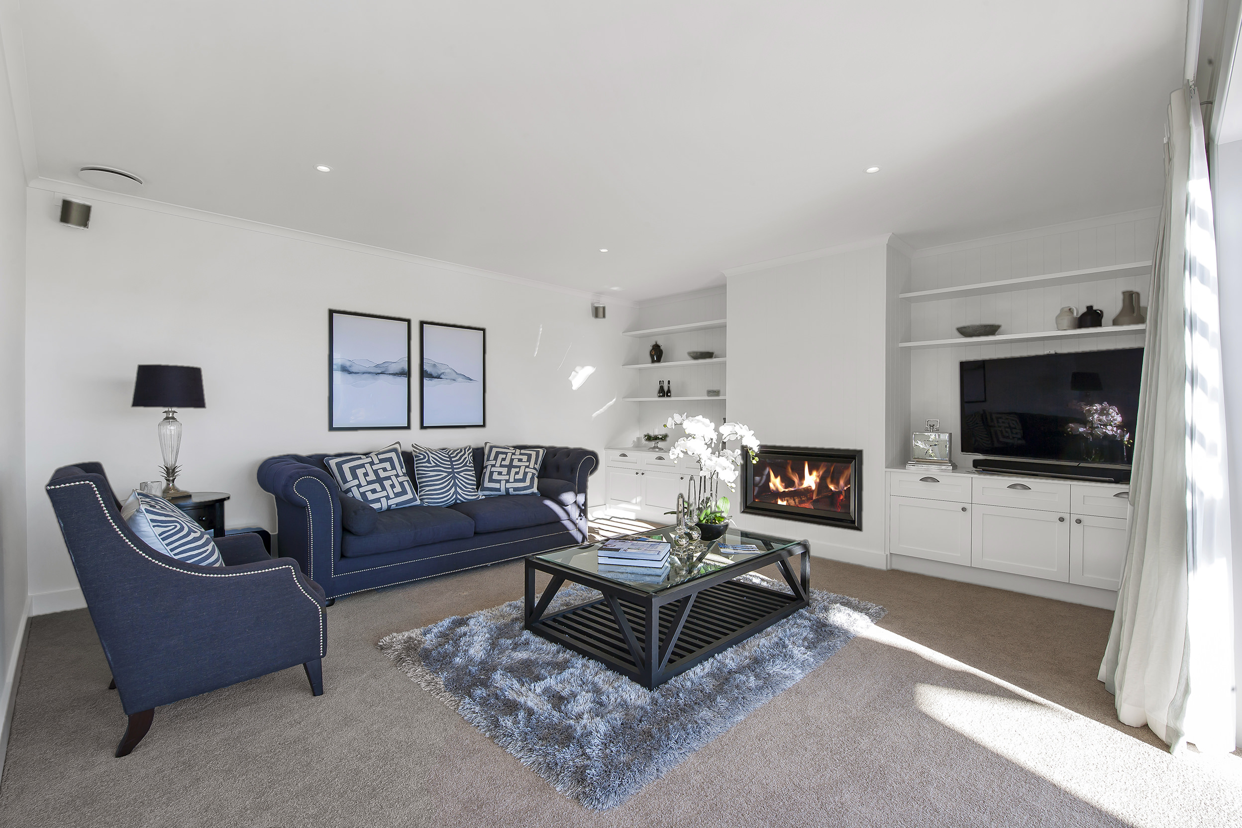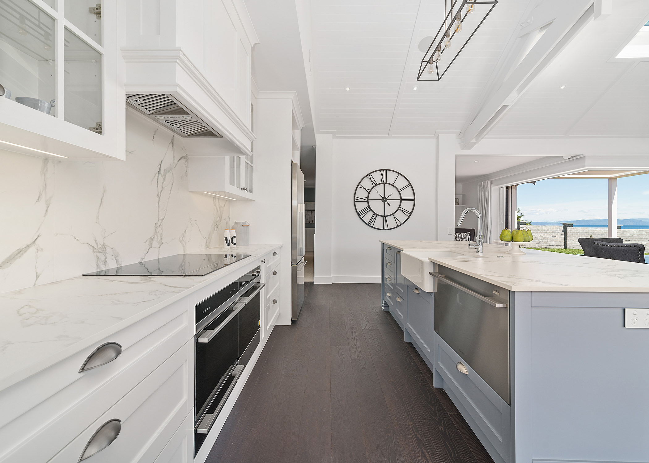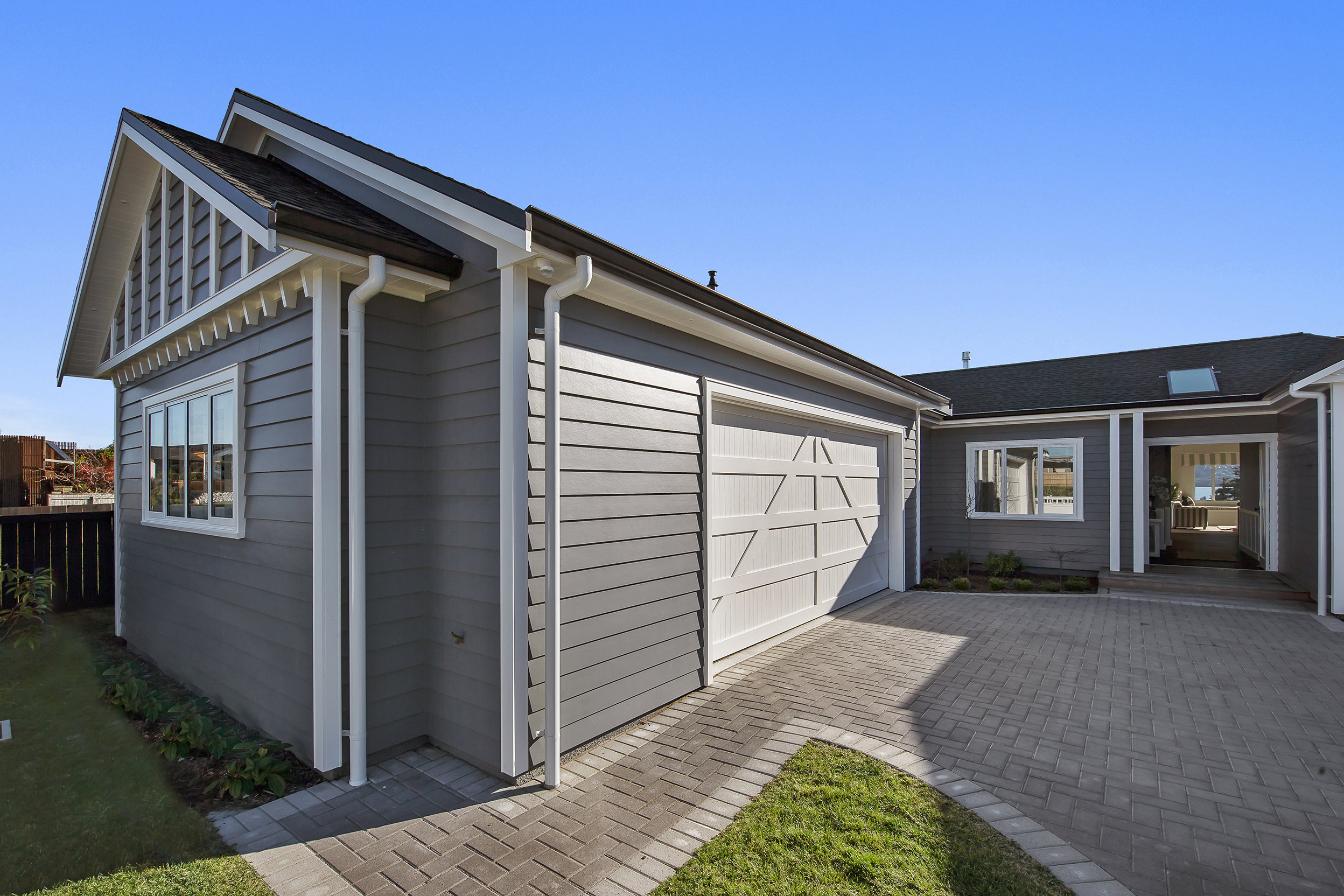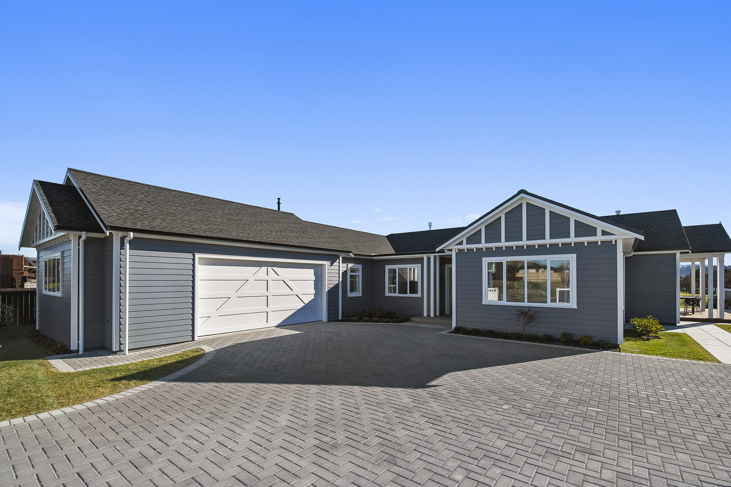 The epitome of elegant, laidback lakeside living, this timeless family home rests on the water’s edge in Wharewaka Point. The four-bedroom, three-bathroom residence opens beautifully to the outdoors, making the most of its stunning location. Inside, all manner of modern convenience awaits, from the contemporary entertainer’s kitchen to the well-appointed bathrooms including master ensuite. A chic palette of whites and greys creates a relaxed atmosphere throughout, enhanced by loads of natural light. Dark wood floors are a grounding force. Built in an established residential subdivision, the home offers privacy while remaining connected to views and alfresco living. The 303sqm layout forms two core wings, with outdoor living options to both the east and west of the open-plan space. Pillarless corner sliders make indoor-outdoor entertaining a breeze. Weatherboard cladding with gable detailing, an asphalt shingle roof, and barn-style garage and front doors all lend themselves to the traditional homely feel of this warm and inviting abode.
