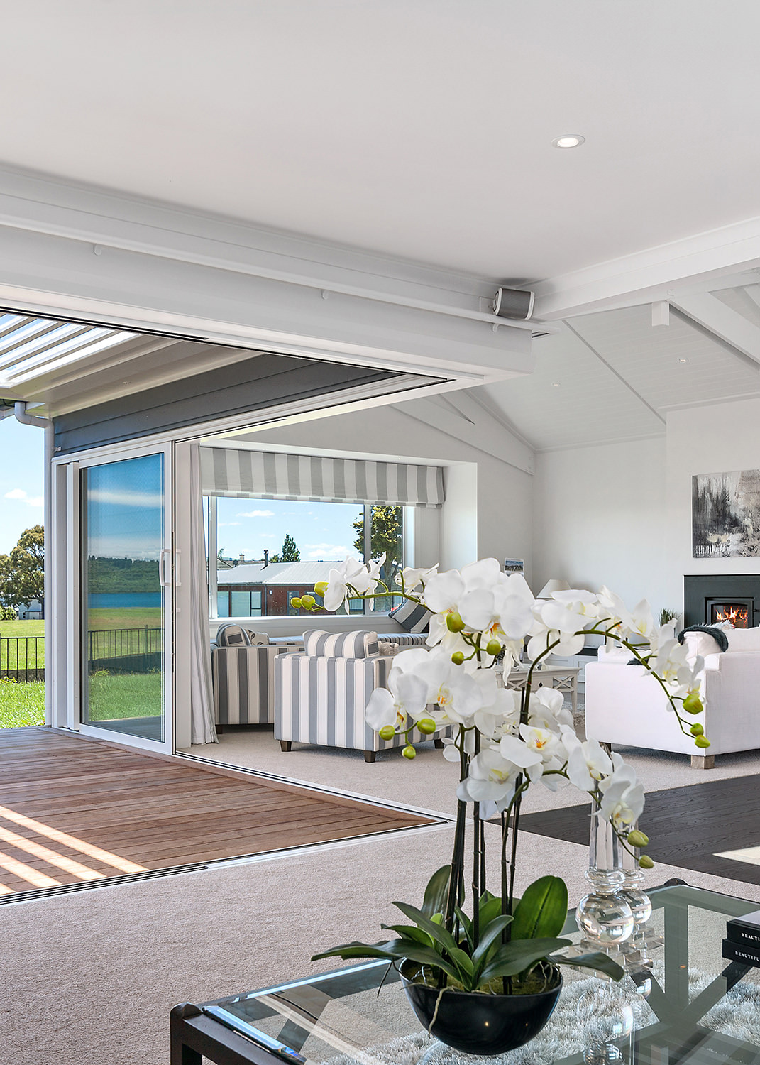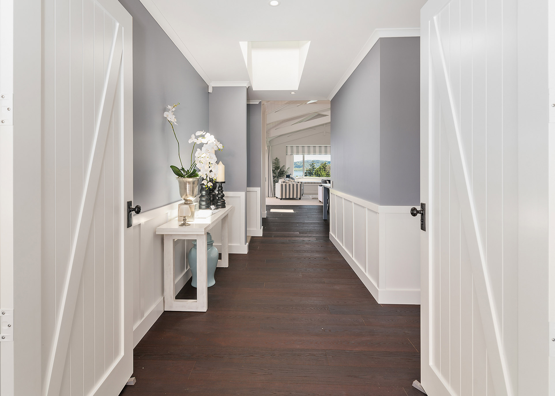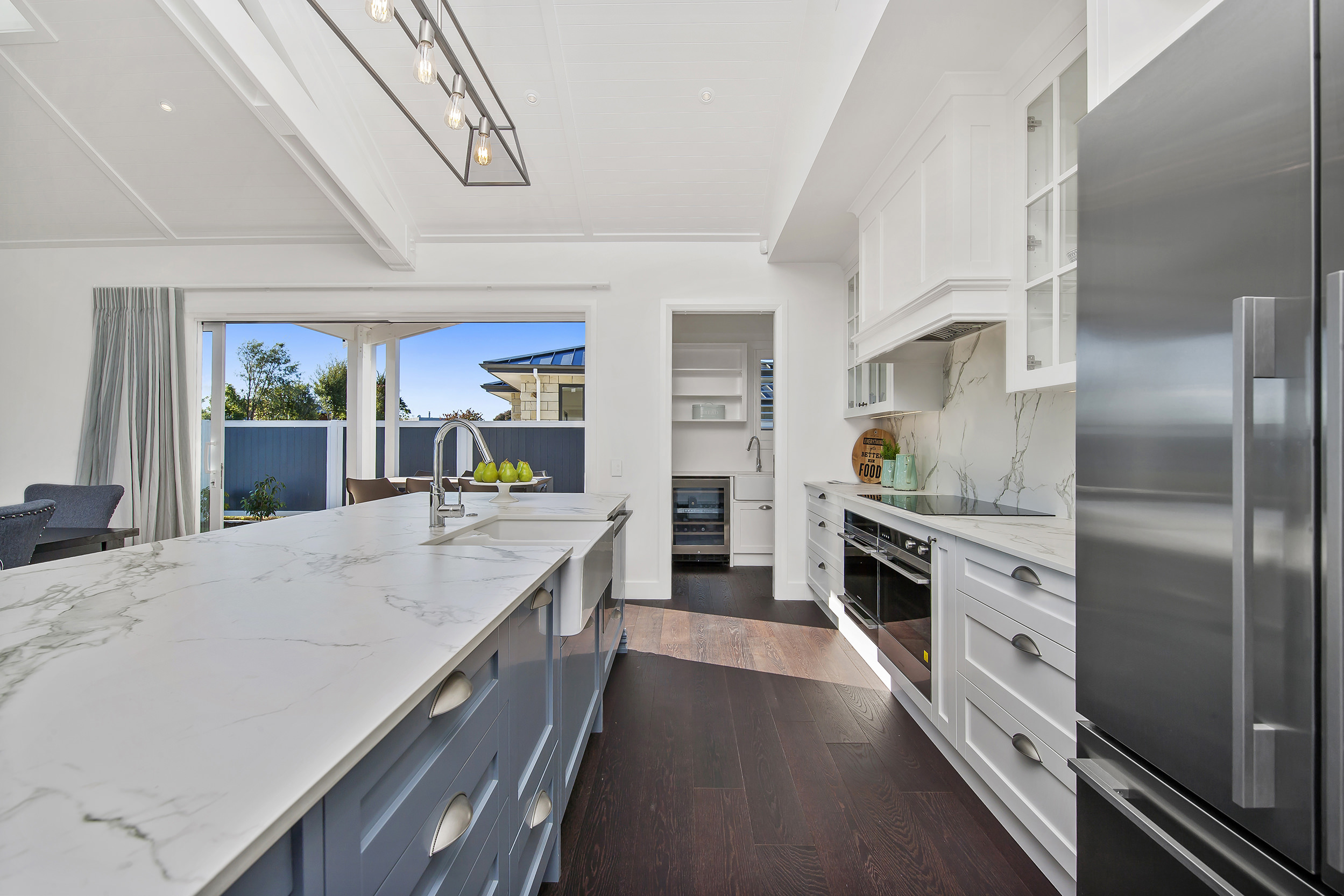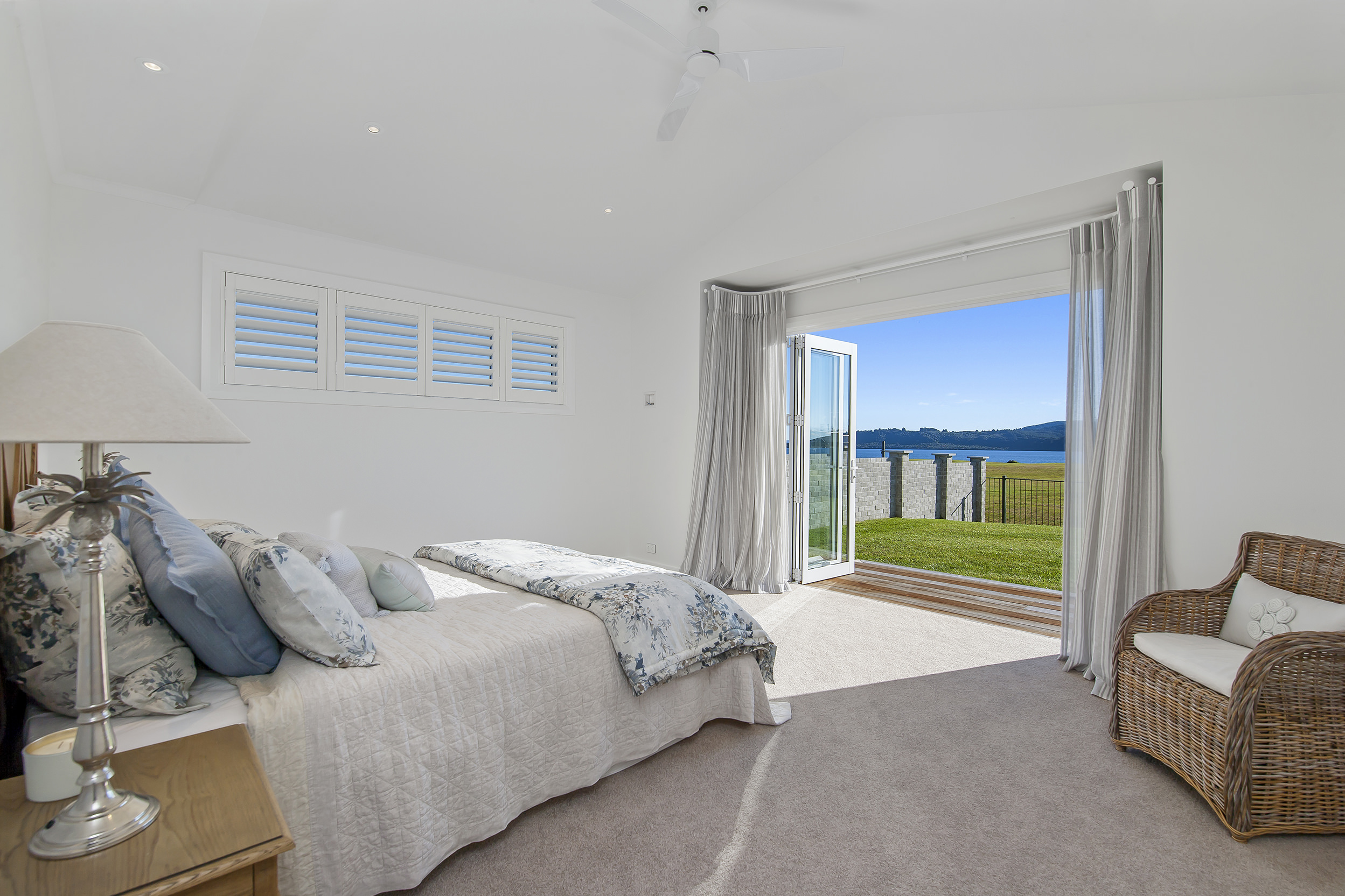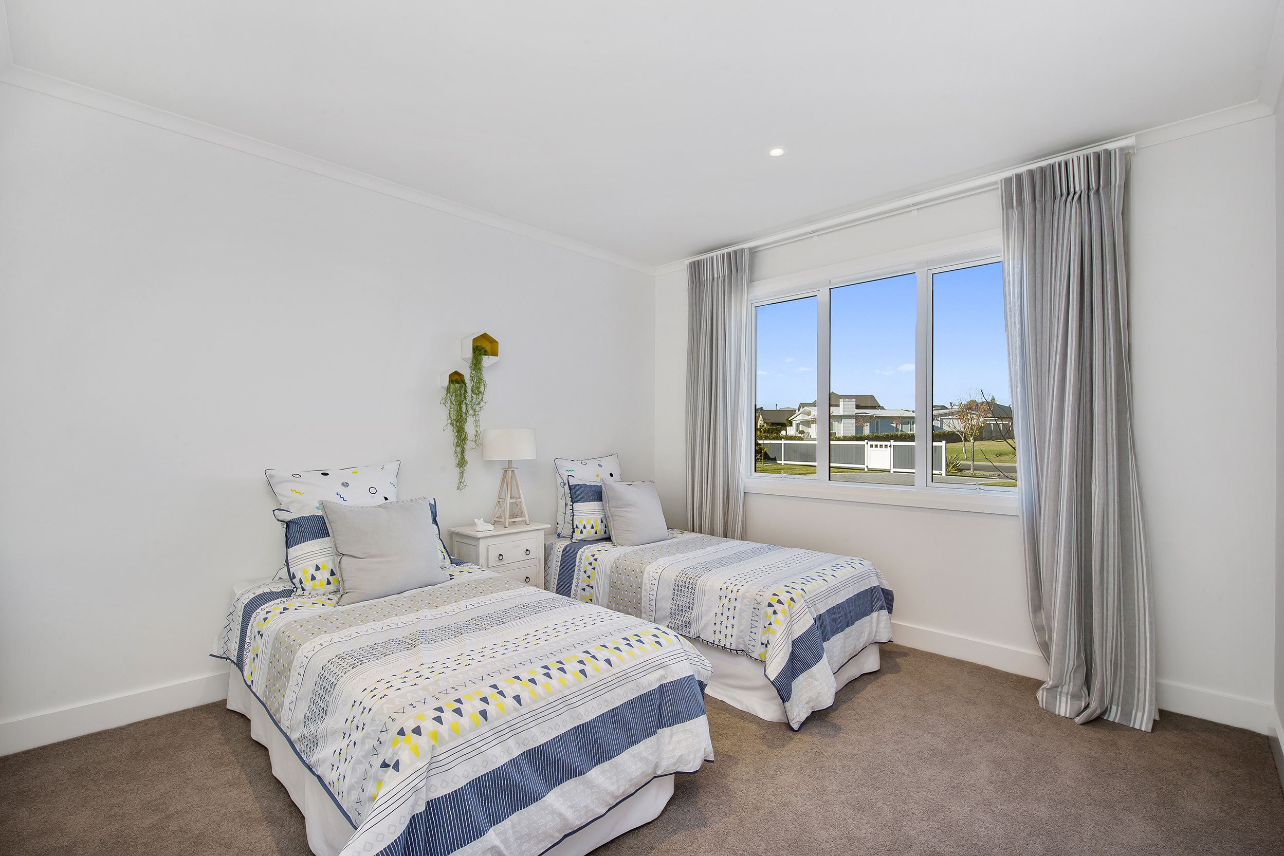 The epitome of elegant, laidback lakeside living, this timeless family home rests on the water’s edge in Wharewaka Point. The four-bedroom, three-bathroom residence opens beautifully to the outdoors, making the most of its stunning location. Inside, all manner of modern convenience awaits, from the contemporary entertainer’s kitchen to the well-appointed bathrooms including master ensuite. A chic palette of whites and greys creates a relaxed atmosphere throughout, enhanced by loads of natural light. Dark wood floors are a grounding force. Built in an established residential subdivision, the home offers privacy while remaining connected to views and alfresco living. The 303sqm layout forms two core wings, with outdoor living options to both the east and west of the open-plan space. Pillarless corner sliders make indoor-outdoor entertaining a breeze. Weatherboard cladding with gable detailing, an asphalt shingle roof, and barn-style garage and front doors all lend themselves to the traditional homely feel of this warm and inviting abode.