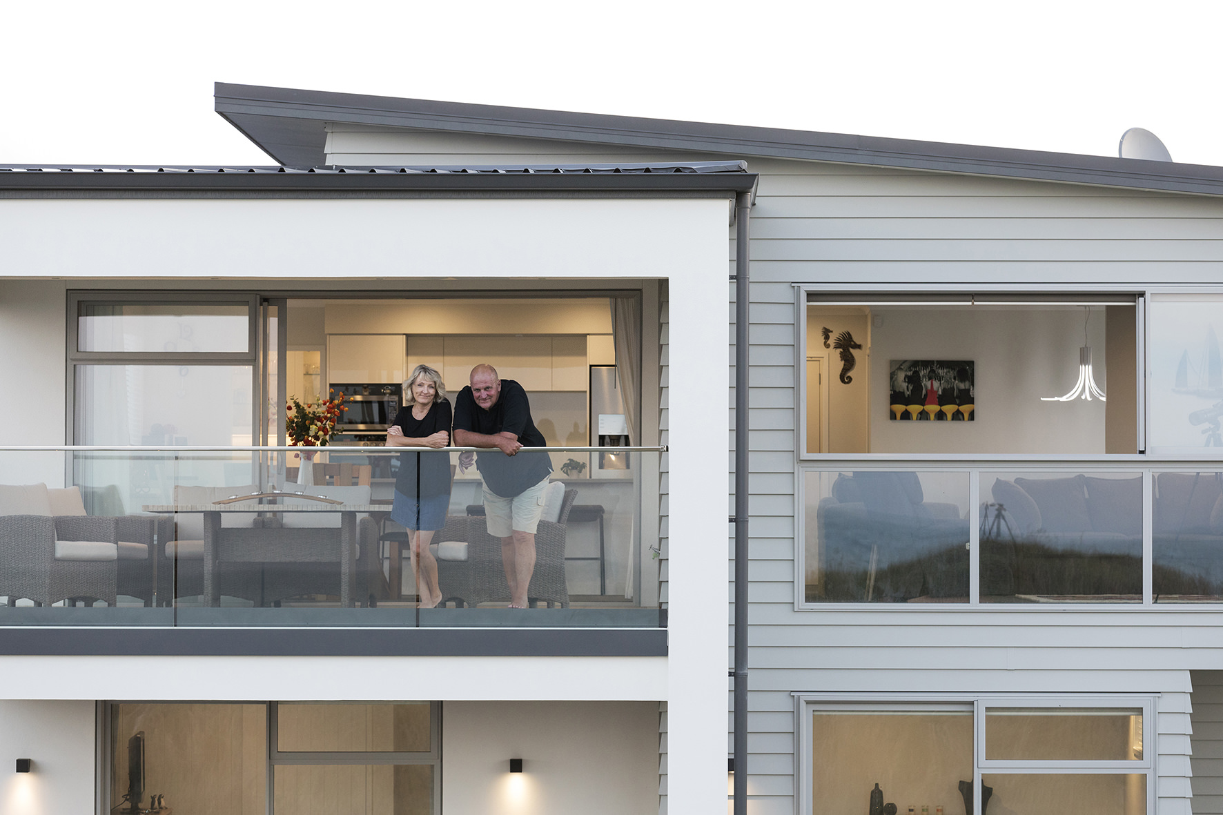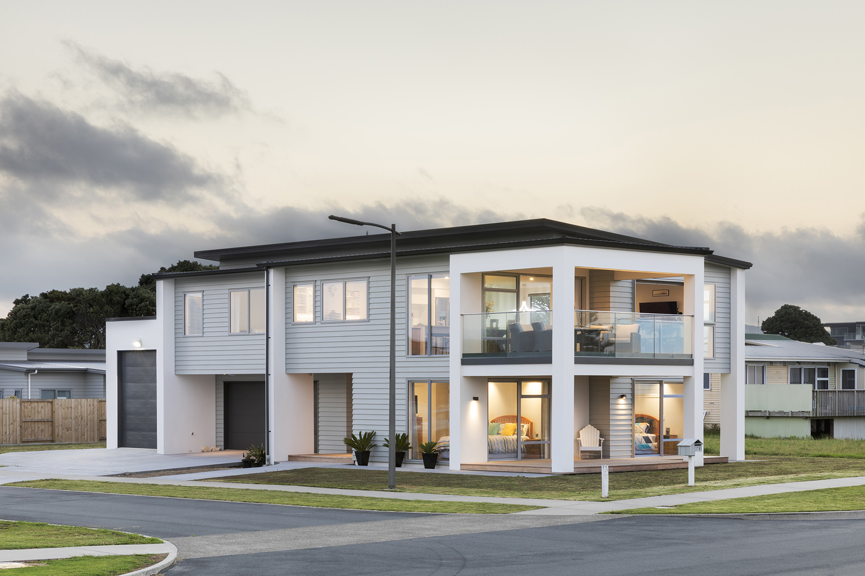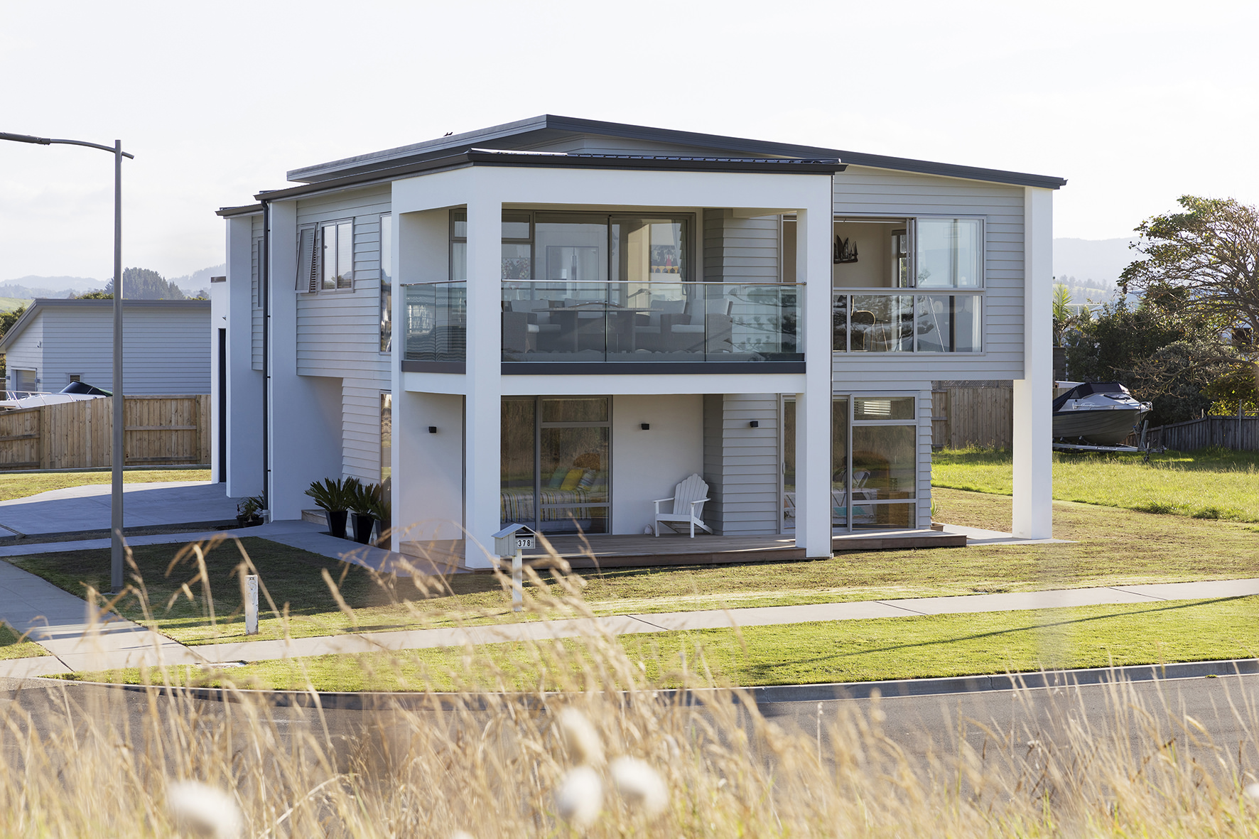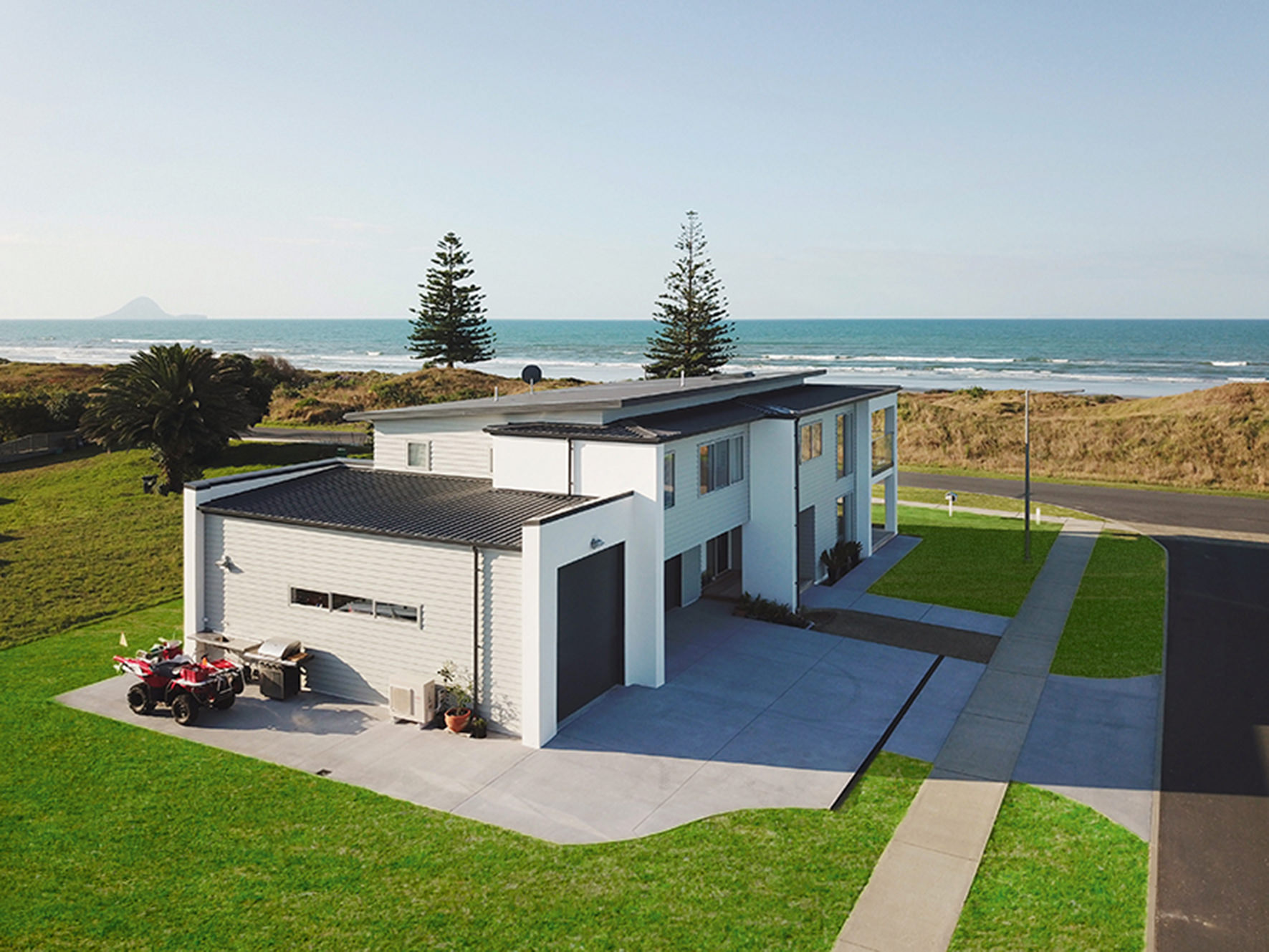 Sitting directly opposite Ohope’s dune beachfront, this two-level residence is designed to fully appreciate the ocean view. Glazing is a key factor in the 278sqm home, notably in the picture window in the lounge, with its striking half-wall slider design. Careful placement throughout ensures every room captures natural light and views wherever possible. Even windows in the scullery and master wardrobe make a huge difference. Three bedrooms and two bathrooms cater for guests and family, but essentially this is a home for two. Upstairs has an apartment-style ambience. Open-plan design maximises space, light, scenery and the sun’s path. The scullery makes for sleek entertaining. Small details complete the big picture, notably an outside tap on the balcony upstairs, an LED octopus-styled pendant in the stairwell, and designer window dressings. With a garage with high internal stud for the boat, double garaging for vehicles and a lift, this home showcases inspiring forethought and functionality.