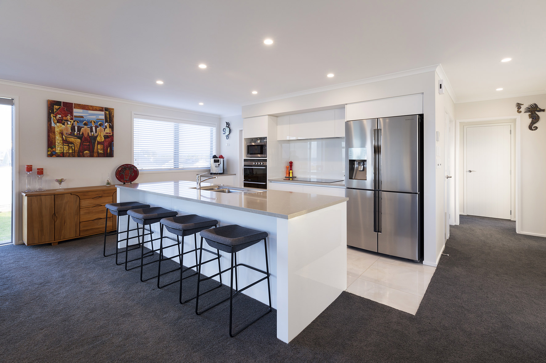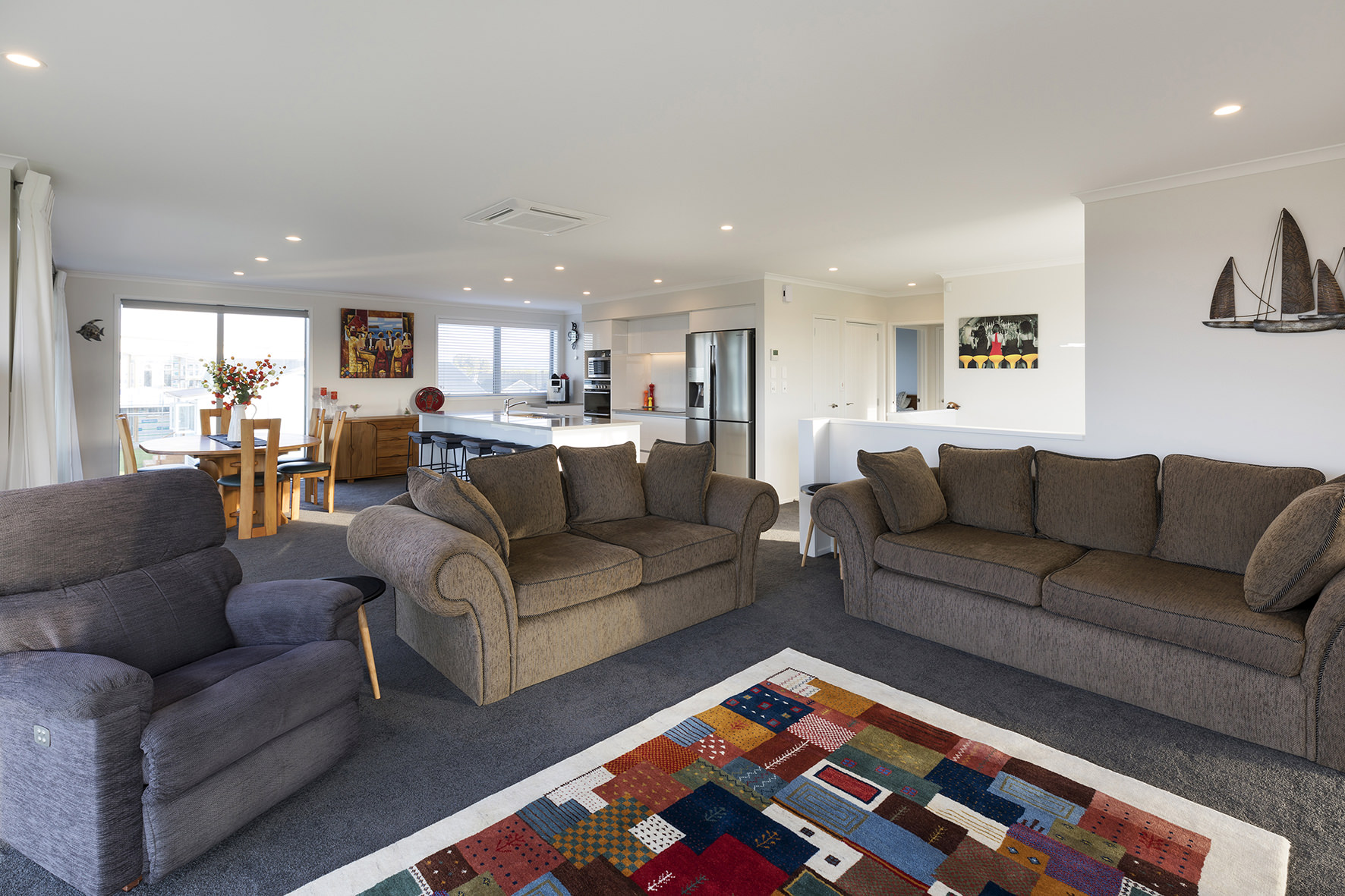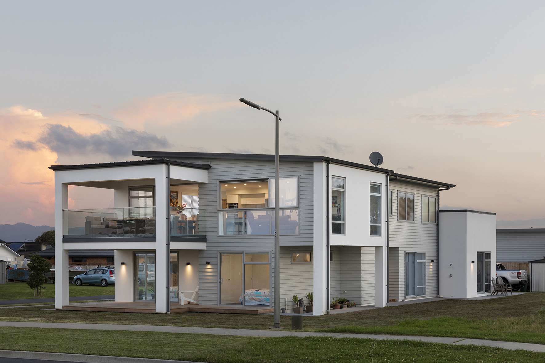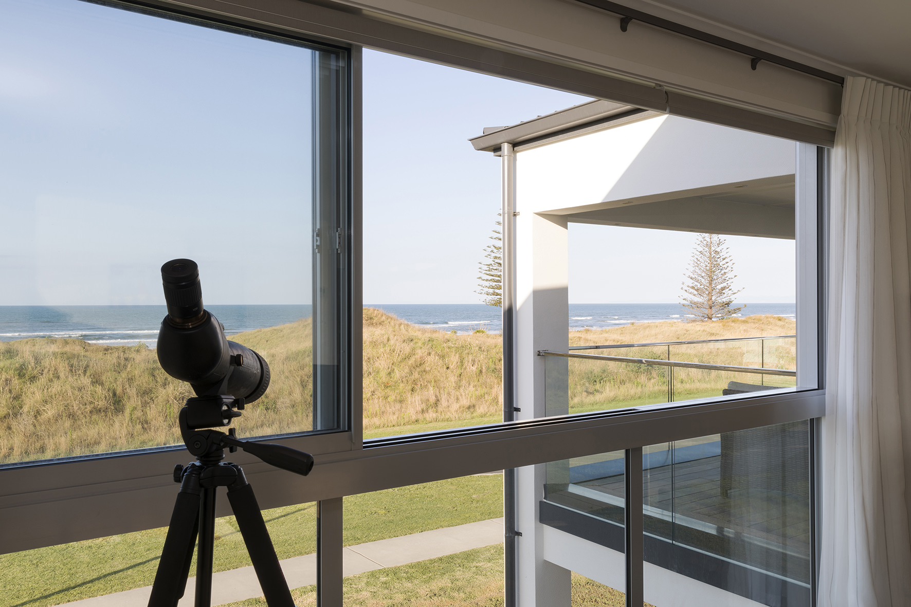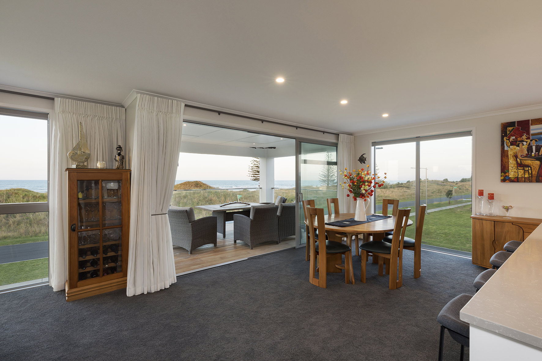 Sitting directly opposite Ohope’s dune beachfront, this two-level residence is designed to fully appreciate the ocean view. Glazing is a key factor in the 278sqm home, notably in the picture window in the lounge, with its striking half-wall slider design. Careful placement throughout ensures every room captures natural light and views wherever possible. Even windows in the scullery and master wardrobe make a huge difference. Three bedrooms and two bathrooms cater for guests and family, but essentially this is a home for two. Upstairs has an apartment-style ambience. Open-plan design maximises space, light, scenery and the sun’s path. The scullery makes for sleek entertaining. Small details complete the big picture, notably an outside tap on the balcony upstairs, an LED octopus-styled pendant in the stairwell, and designer window dressings. With a garage with high internal stud for the boat, double garaging for vehicles and a lift, this home showcases inspiring forethought and functionality.