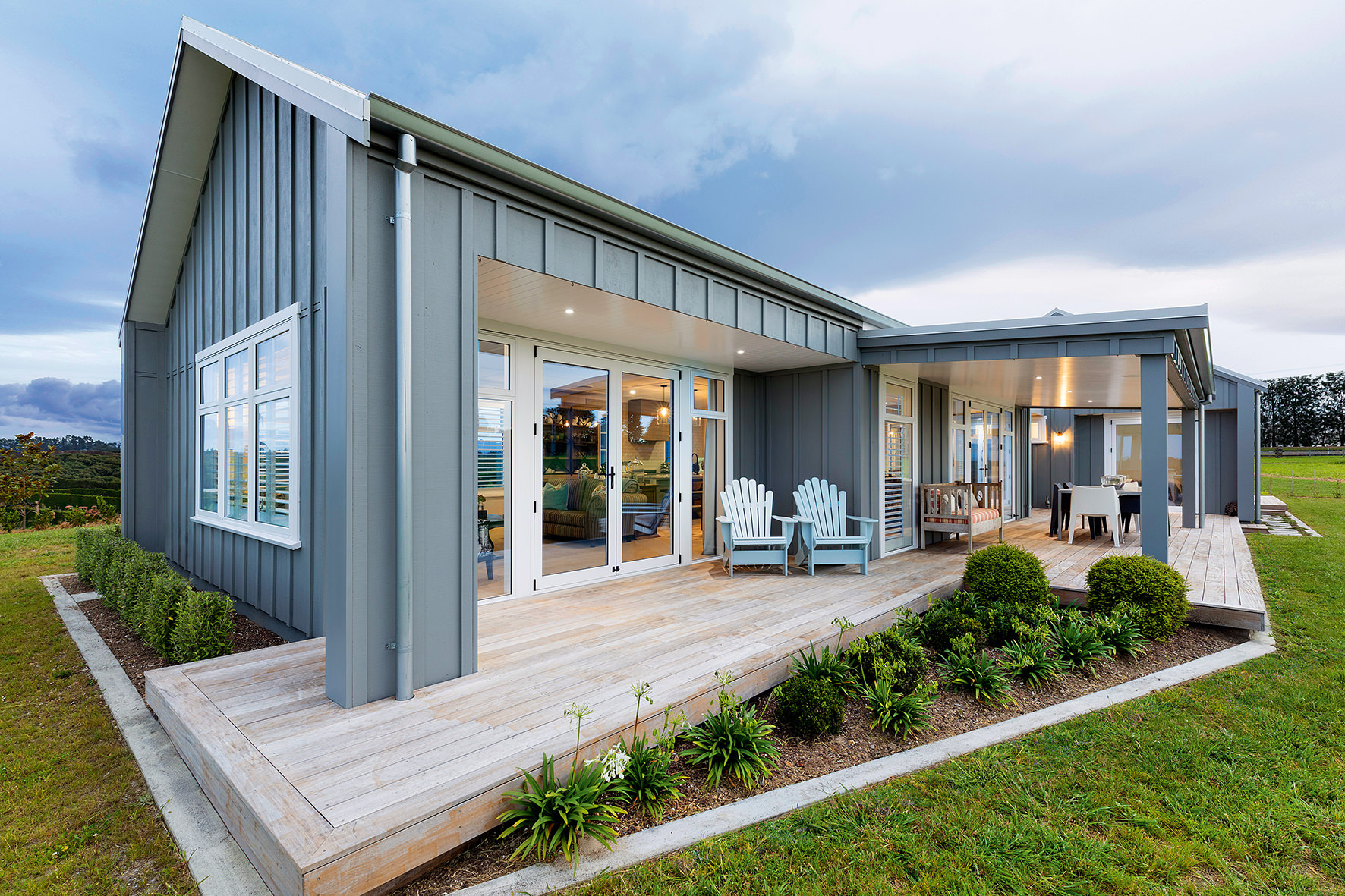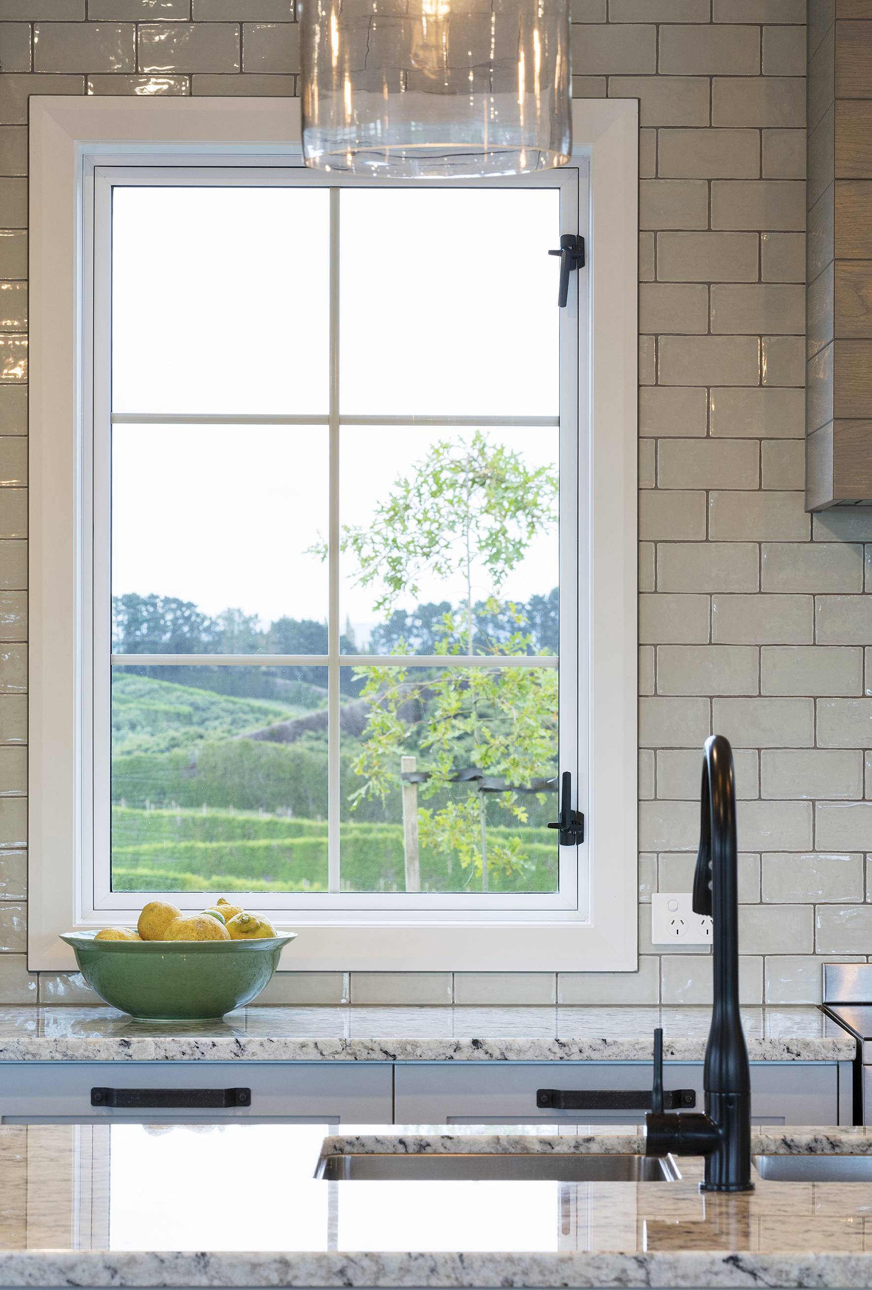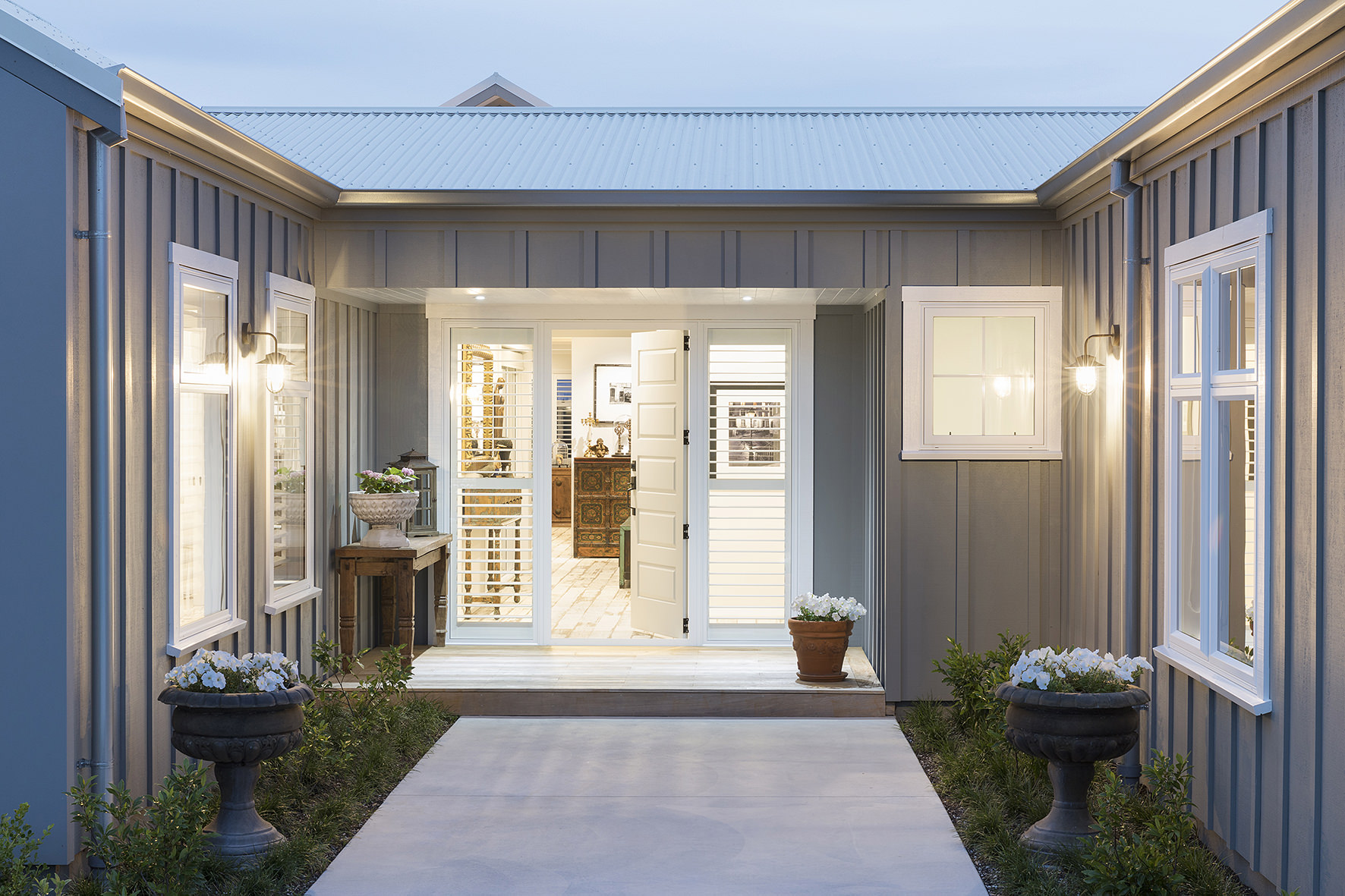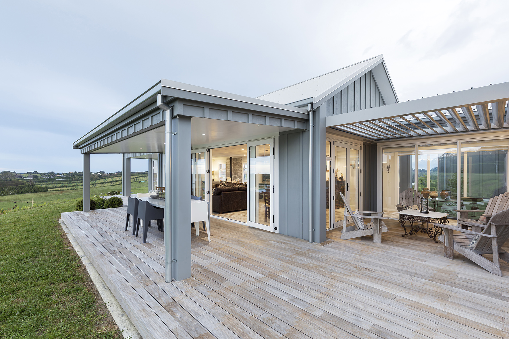 Built for an interior designer, this spacious Katikati home was destined to break rules. Transcending eras and continents, the end product fuses elements from the past with today’s craftsmanship. Inspired by a classic Kiwi schoolhouse and a favourite vineyard, the house comprises three living pods, each with a gable roof. Inside, four bedrooms, two bathrooms and two living areas serve modern life. Band-sawn board-and-batten is painted rather than stained. Practicality called for aluminium joinery, boxed with rough-sawn frames and sills; nail holes deliberately indented to add character. Galvanised spouting continues the traditional theme. The interior showcases the owners’ love of travel and innate sense of colour, texture and styling. Notable features include flat batten ceilings in the family pod, Italian tiled flooring that mimics distressed timber planking, hand-washed French linen drapes, heritage tapware in the powder room, and Soho tiling that replicates old New York brickwork around the gas fire. An innovative approach, executed with aplomb.