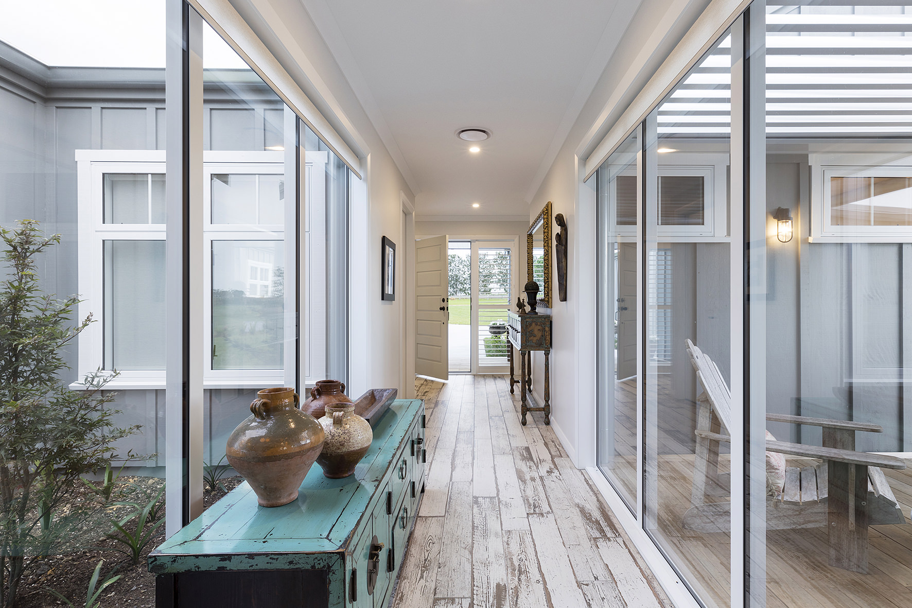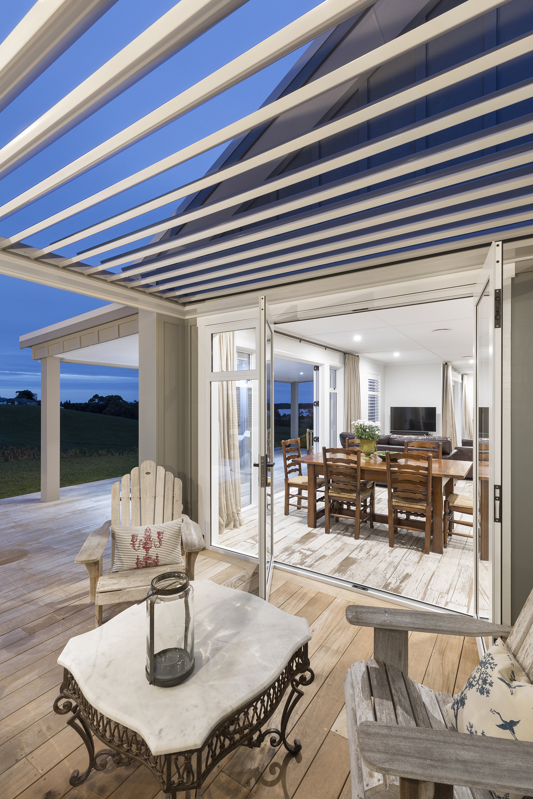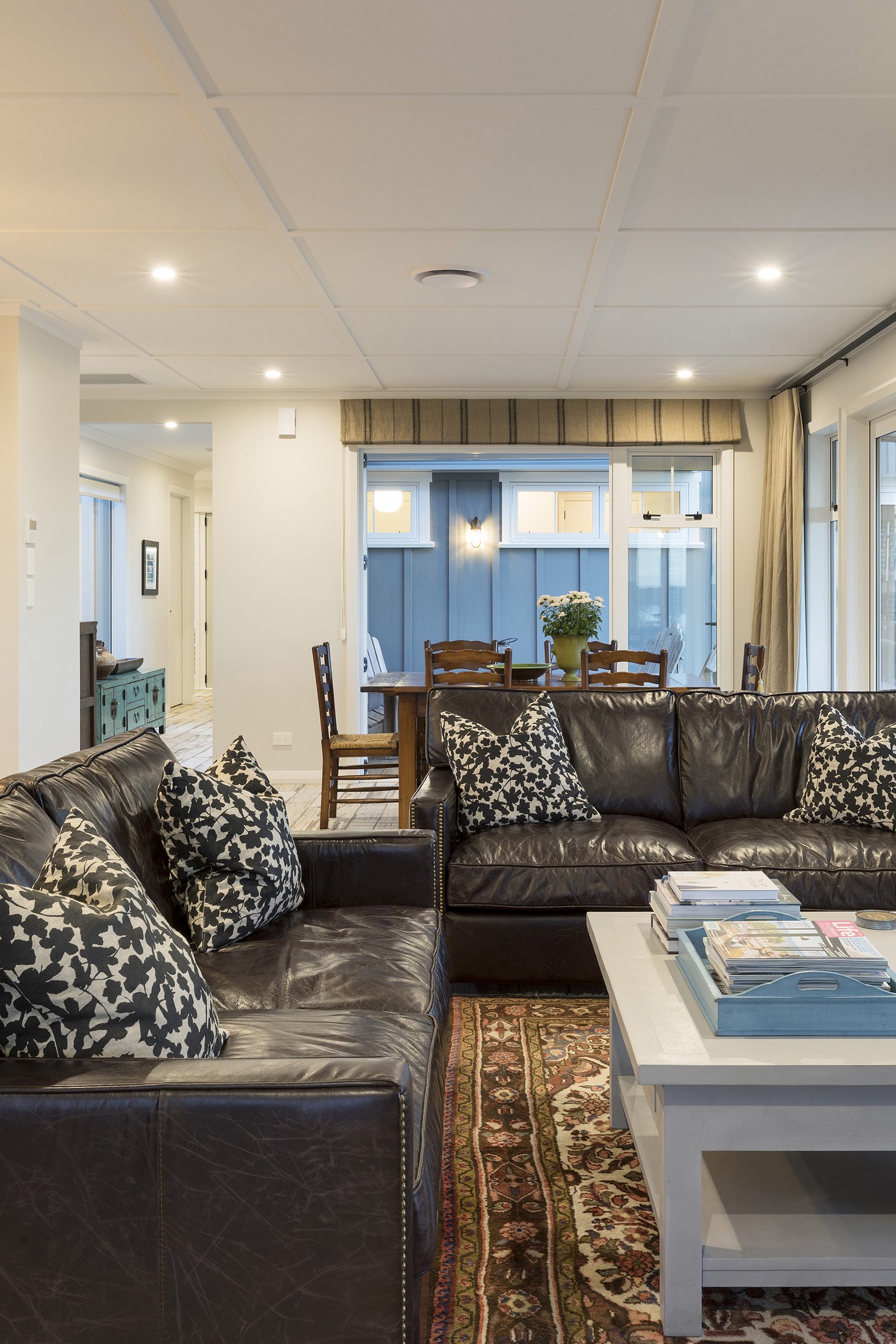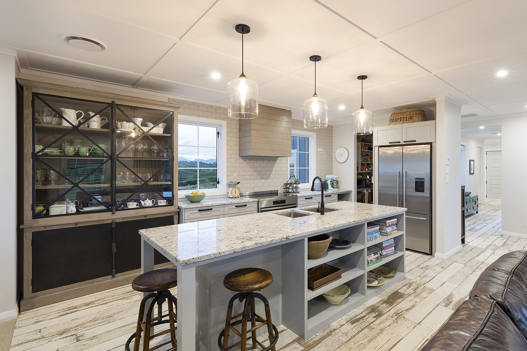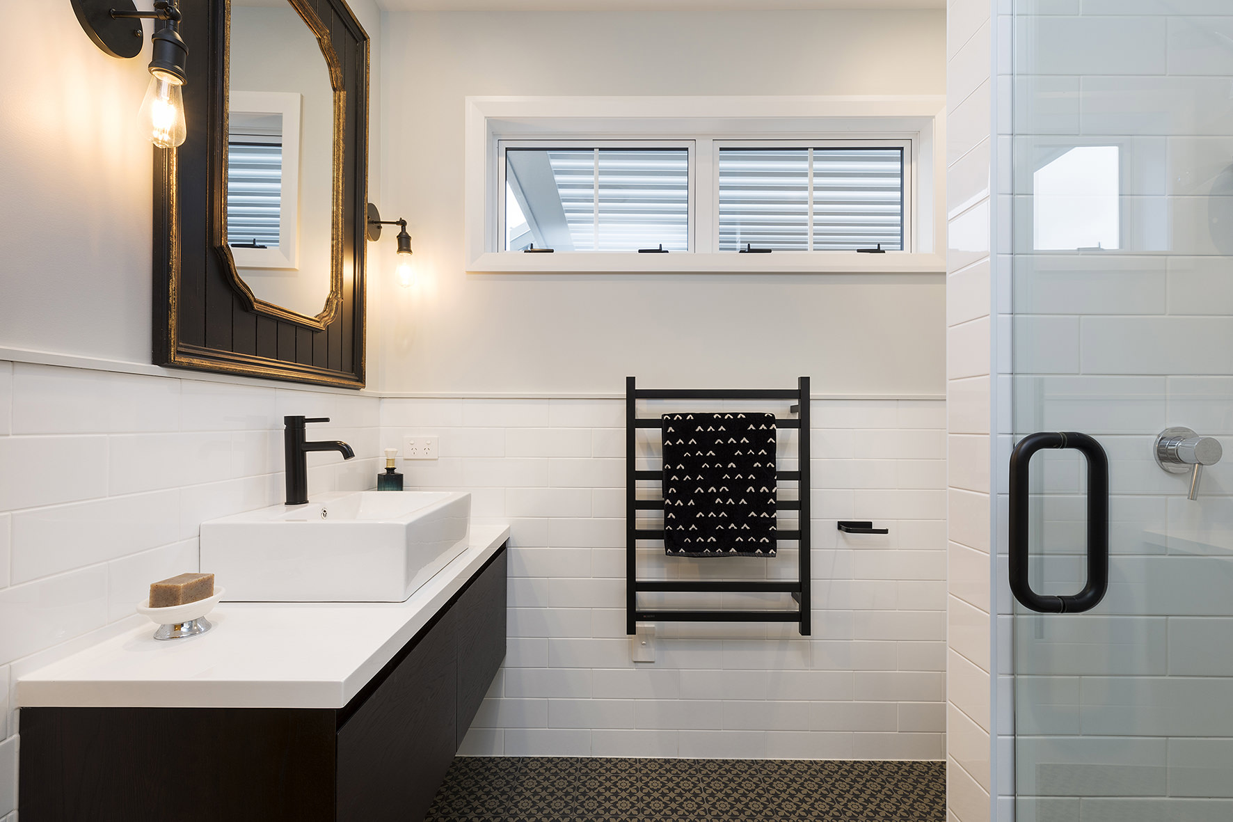 Built for an interior designer, this spacious Katikati home was destined to break rules. Transcending eras and continents, the end product fuses elements from the past with today’s craftsmanship. Inspired by a classic Kiwi schoolhouse and a favourite vineyard, the house comprises three living pods, each with a gable roof. Inside, four bedrooms, two bathrooms and two living areas serve modern life. Band-sawn board-and-batten is painted rather than stained. Practicality called for aluminium joinery, boxed with rough-sawn frames and sills; nail holes deliberately indented to add character. Galvanised spouting continues the traditional theme. The interior showcases the owners’ love of travel and innate sense of colour, texture and styling. Notable features include flat batten ceilings in the family pod, Italian tiled flooring that mimics distressed timber planking, hand-washed French linen drapes, heritage tapware in the powder room, and Soho tiling that replicates old New York brickwork around the gas fire. An innovative approach, executed with aplomb.