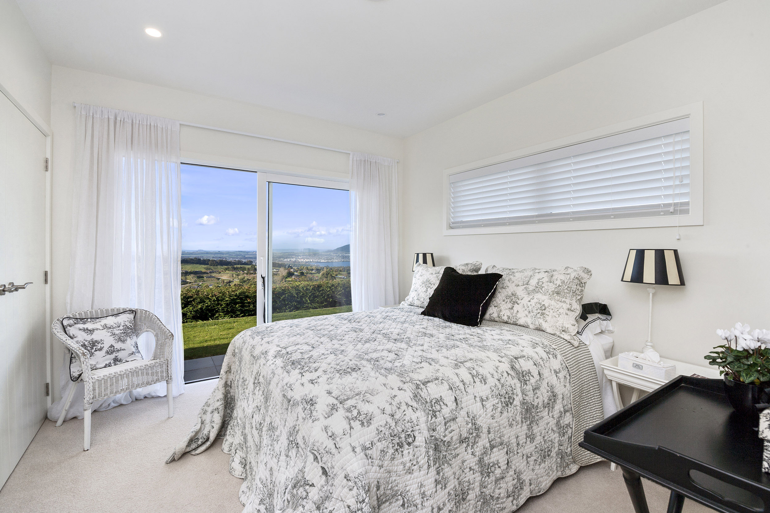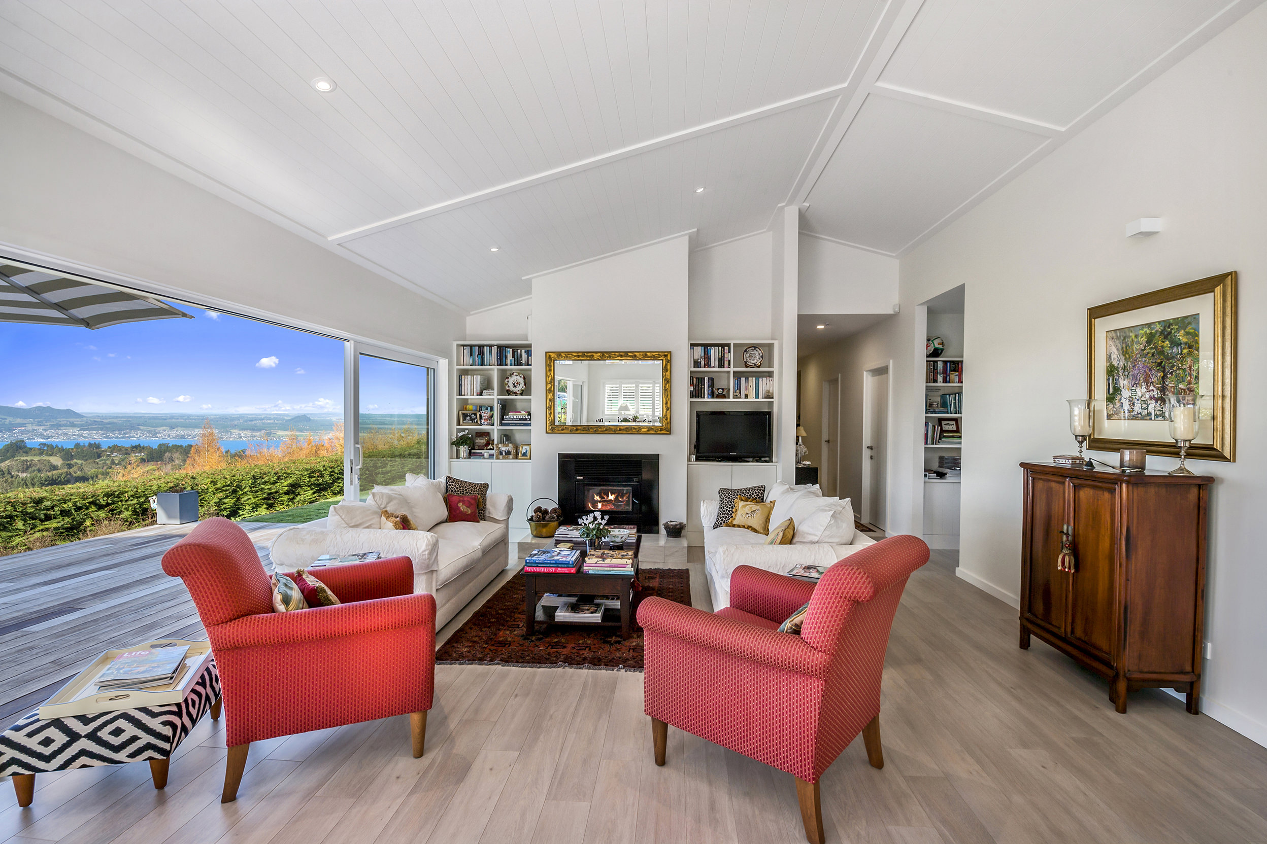 Expertly positioned on a tricky, narrow site, this Acacia Bay escape soaks up sweeping views as far as the eye can see. Enjoy the outlook to Lake Taupo and Mt Tauhara from the spacious open-plan living area and its large adjoining deck. Glass slider doors foster indoor-outdoor flow and an intimate connection with nature. Quality construction and beautifully crafted spaces can be found around every corner. Laminate wood flooring, grooved ceilings with battens and extra-large skirtings and architraves give the home a classic feel, made with the benefit of modern materials. Open interiors create a feeling of light and airy luxury. Upgraded insulation and good solar gain help the home stay warm and keep running costs low. Designed for retirees, there’s plenty of room to accommodate visiting family and friends with a generous three-bedroom layout, including master with ensuite. The sleeping quarters open to the outdoors. An understated contemporary take on a classic, this is a home where you can truly enjoy the golden years.