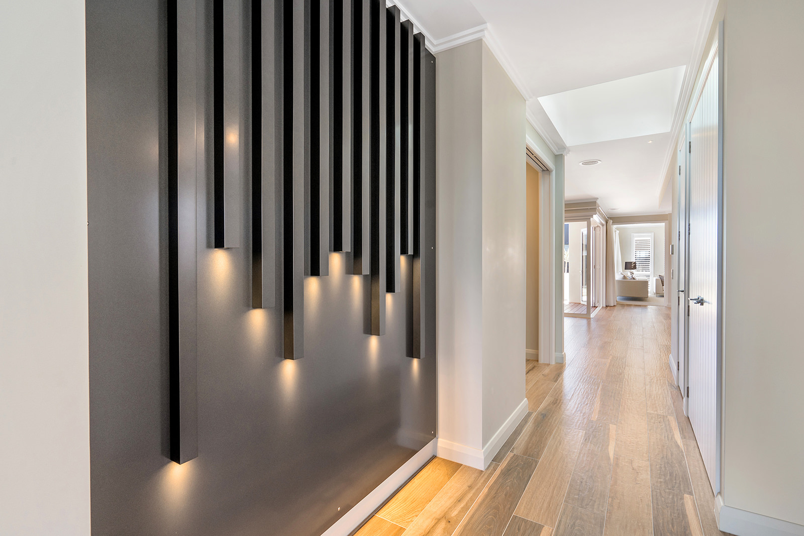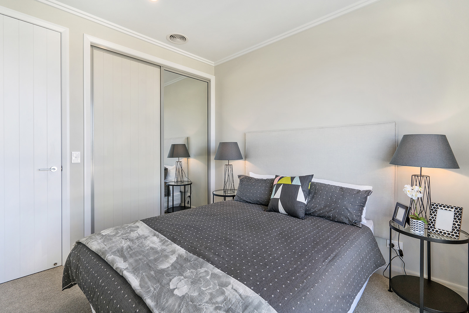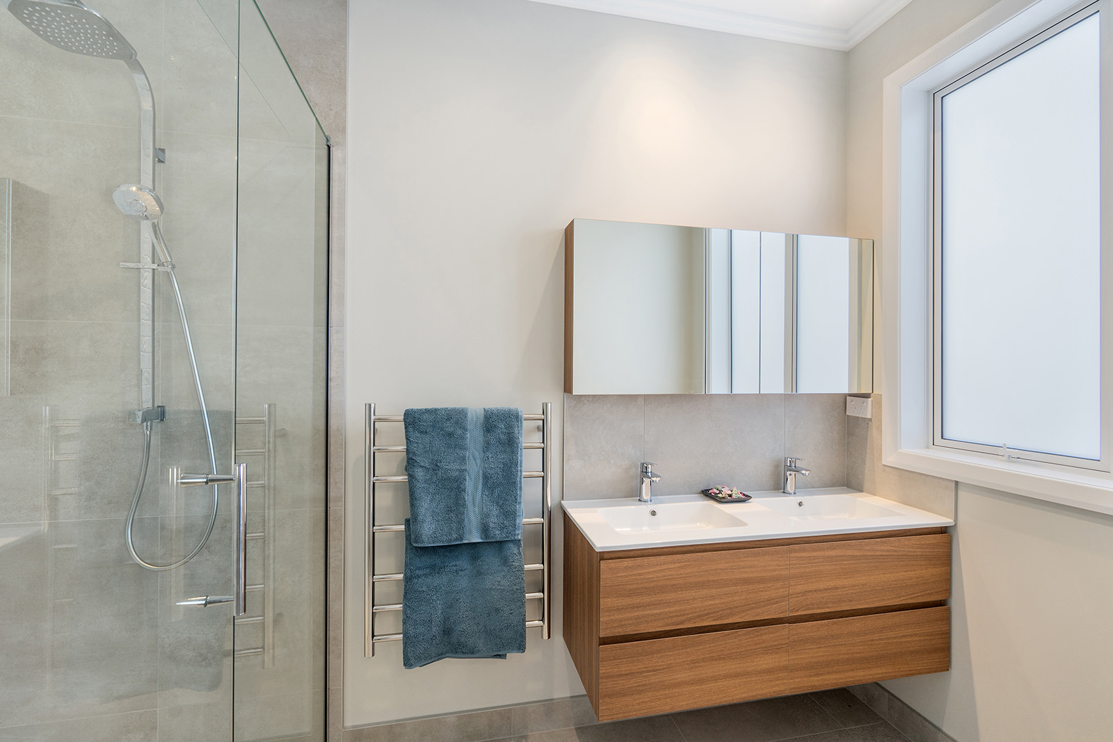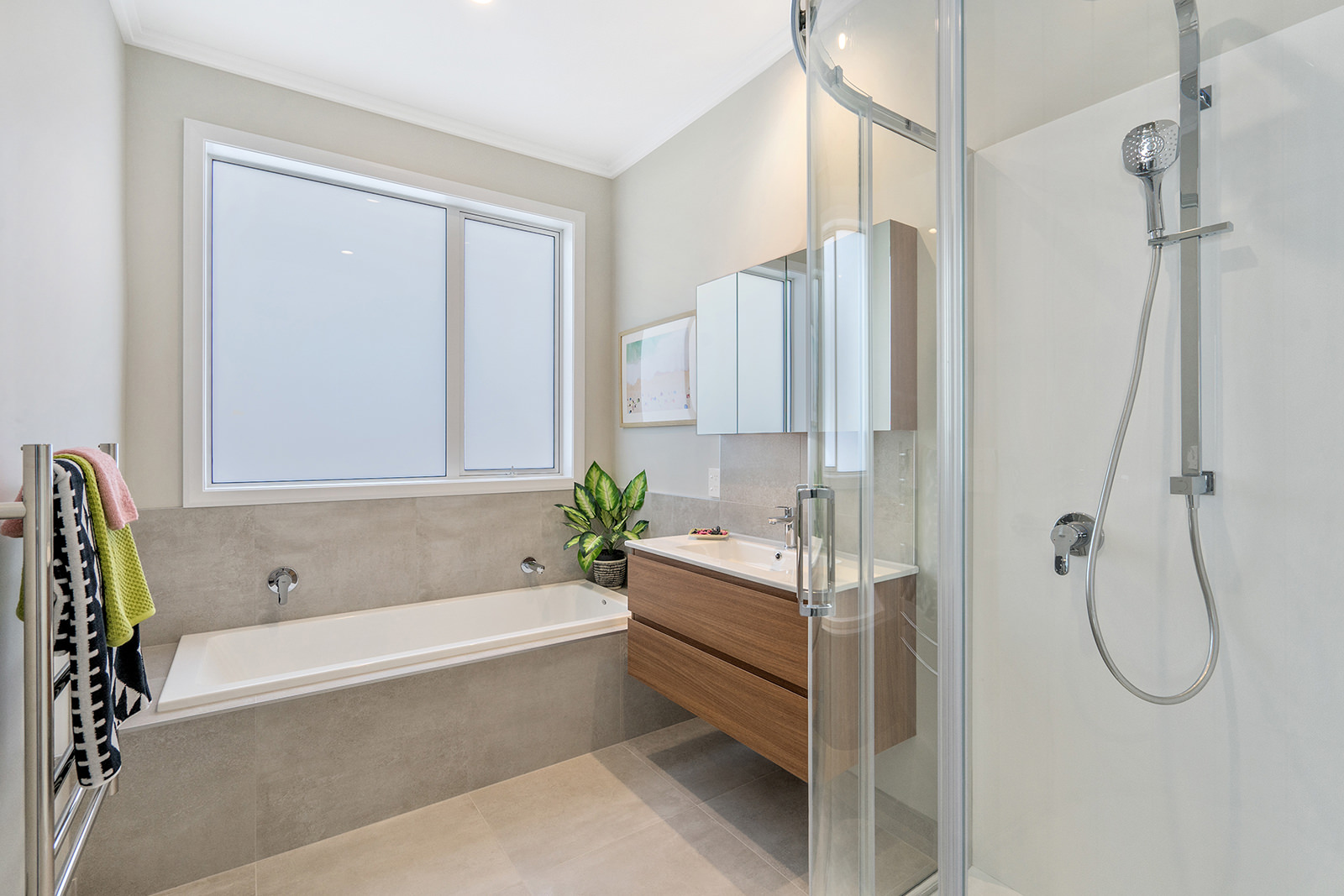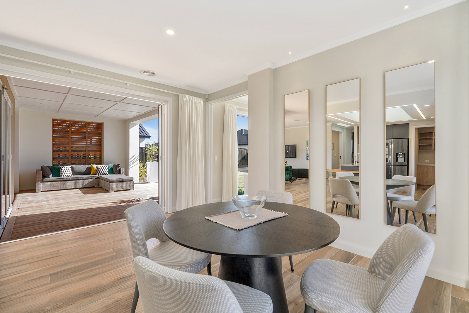 L is for living in this four-bedroom show home with large alfresco area just south of Christchurch. The hub is centred around the gourmet kitchen which connects the family room to dining and out to a sheltered space through two bifold doors, which open to an entire corner. Three solar skylights take pride of place in the kitchen and the shaft is framed around with LED recess track lights. The walk-in pantry is large enough to cater for all comers, so there’s no need to rush out when unexpected guests pop by. A computer alcove is located close to the kitchen so you can help kids doing homework. The lounge has a large in-built wall cabinet that slides open to a reveal a collection of precious objects. Three bedrooms are located in a separate wing of the home, with the fourth bedroom or study conveniently off the passage way. This is a functional home, which balances family living and technology with clever ways to make the most of the sun and environment.